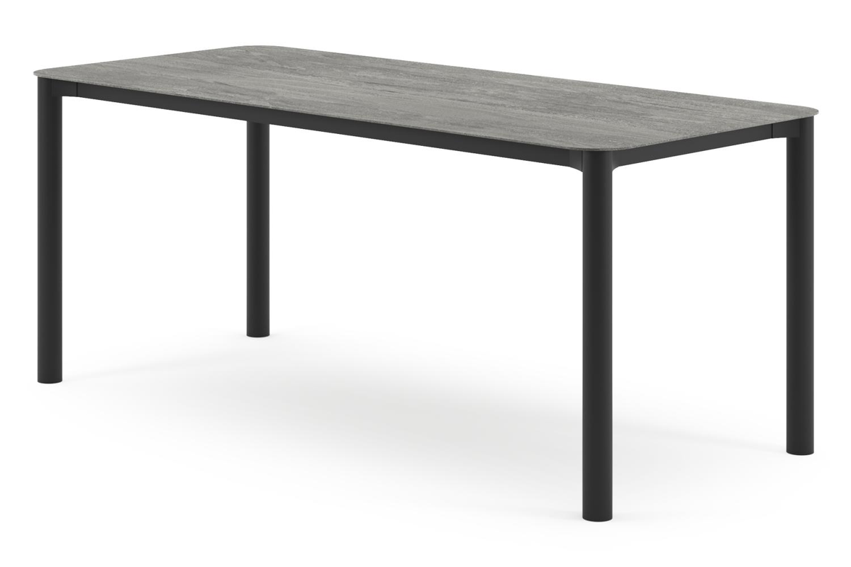 Orso tuintafel rechthoekig afgerond in zwart aluminium en volkeramiek Aspen Grey - L 200 x B 80 x H 74.5 cm | Exterioo