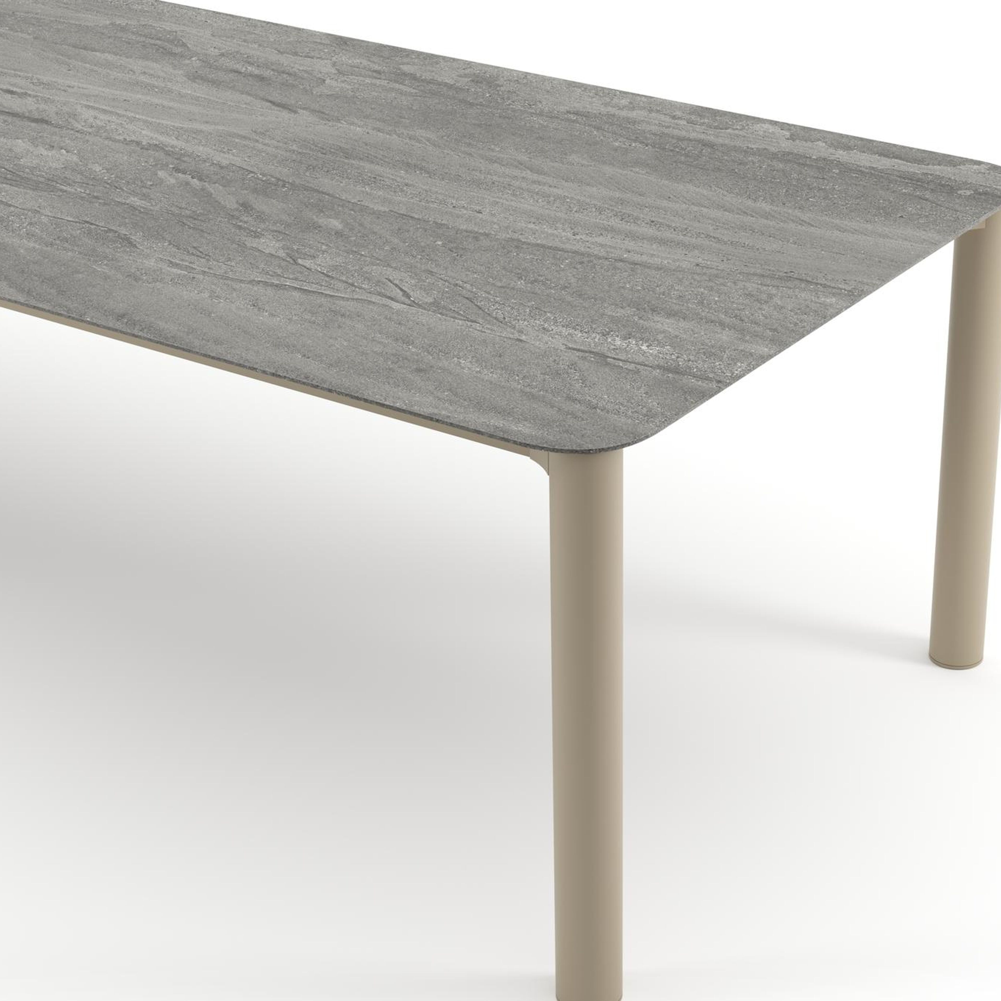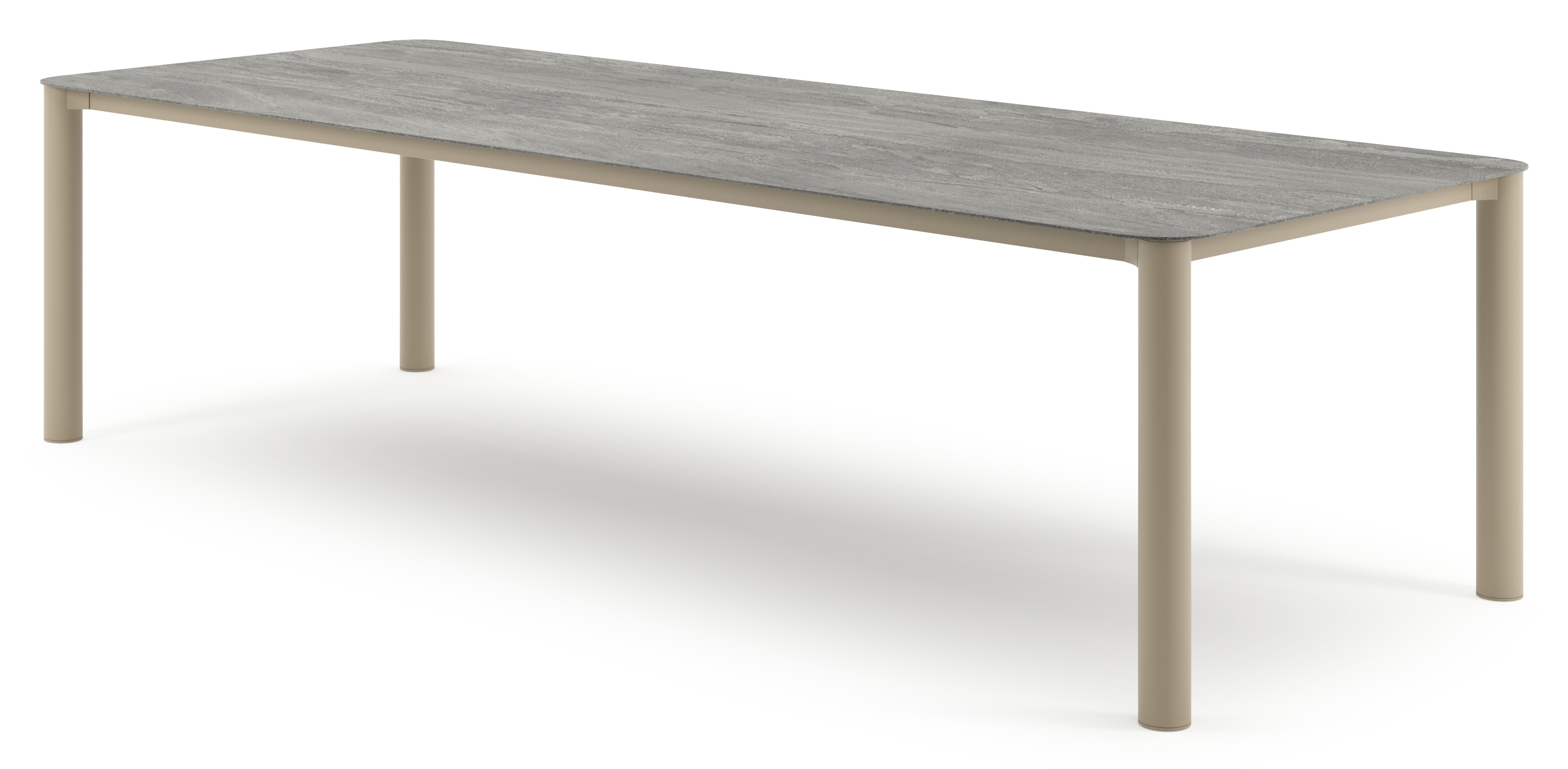 Orso tuintafel rechthoekig afgerond in beige aluminium en volkeramiek Aspen Grey - L 290 x B 110 x H 74.5 cm | Exterioo tuinmeubelen