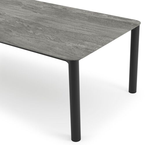 Orso tuintafel rechthoekig afgerond in zwart aluminium en volkeramiek aspen grey - L 290 x B 110 x H 74.5 cm | Exterioo