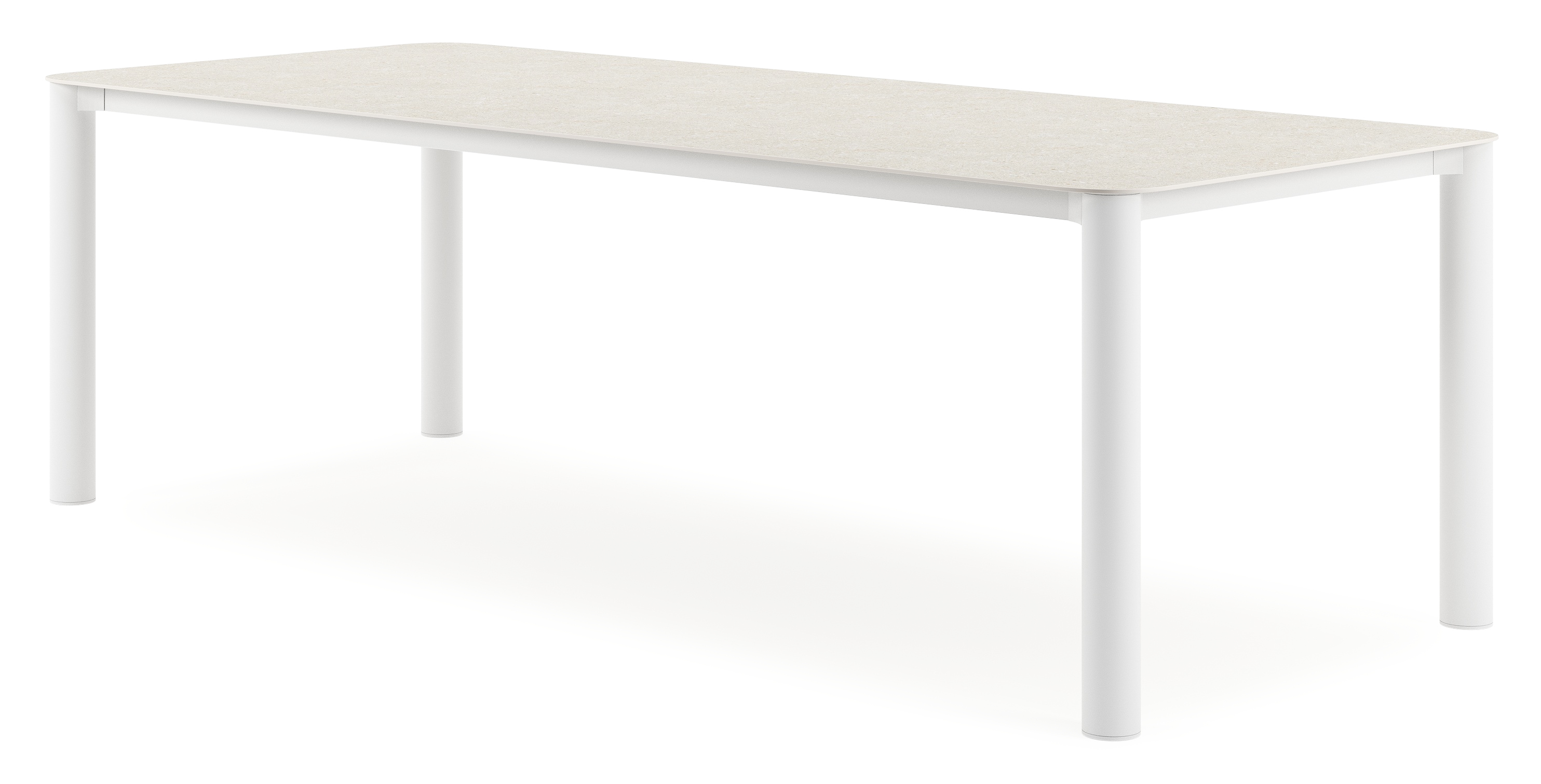 De Orso tuintafel, is een ware blikvanger voor je buitenruimte. De ronde poten en het afgerond rechthoekig tafelblad, waarbij de zijden subtiel over de poten zweeft, geeft de tafel een hedendaags natuurlijk design.