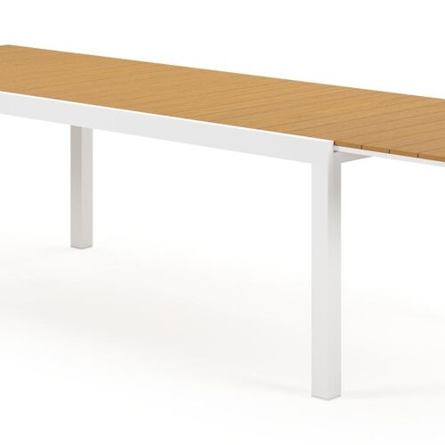 Een tafelblad uit polywood heeft de look van hout, maar is eigenlijk kunststof. Je geniet van de charmante uitstraling van hout, maar het barst of scheurt niet en behoudt jarenlang zijn unieke bruine houtlook. Opgelet: polywood is een synthetisch materiaal dat niet resistent is tegen hitte. Warmte - denk aan zonlicht dat door glazen schijnt - kan het materiaal beschadigen. Gebruik dus altijd een onderzetter of dienblad wanneer je glaswerk op je meubel plaatst.