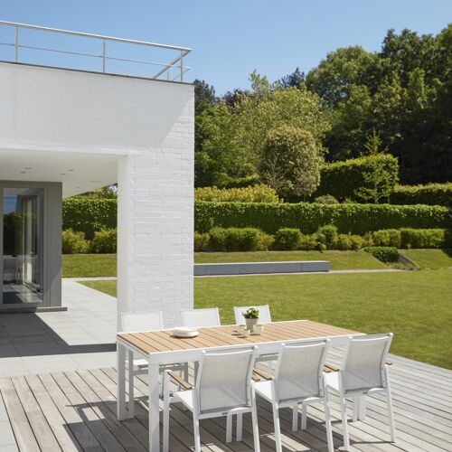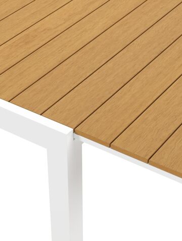 Een tafelblad uit polywood heeft de look van hout, maar is eigenlijk kunststof. Je geniet van de charmante uitstraling van hout, maar het barst of scheurt niet en behoudt jarenlang zijn unieke bruine houtlook. Opgelet: polywood is een synthetisch materiaal dat niet resistent is tegen hitte. Warmte - denk aan zonlicht dat door glazen schijnt - kan het materiaal beschadigen. Gebruik dus altijd een onderzetter of dienblad wanneer je glaswerk op je meubel plaatst.Beleef geweldige buitenmomenten met de Oviedo verlengbare tuintafel aan een scherpe prijs.