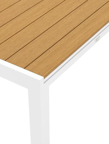 Het frame van de tafel is gemaakt uit roestvrij aluminium, een sterk, maar toch licht materiaal dat makkelijk verplaatsbaar is. Het oppervlak is glad afgewerkt waardoor het geen vuil aantrekt en onderhoudsvriendelijk is. De poedercoating zorgt voor de UV- en weerbestendigheid van je meubel.