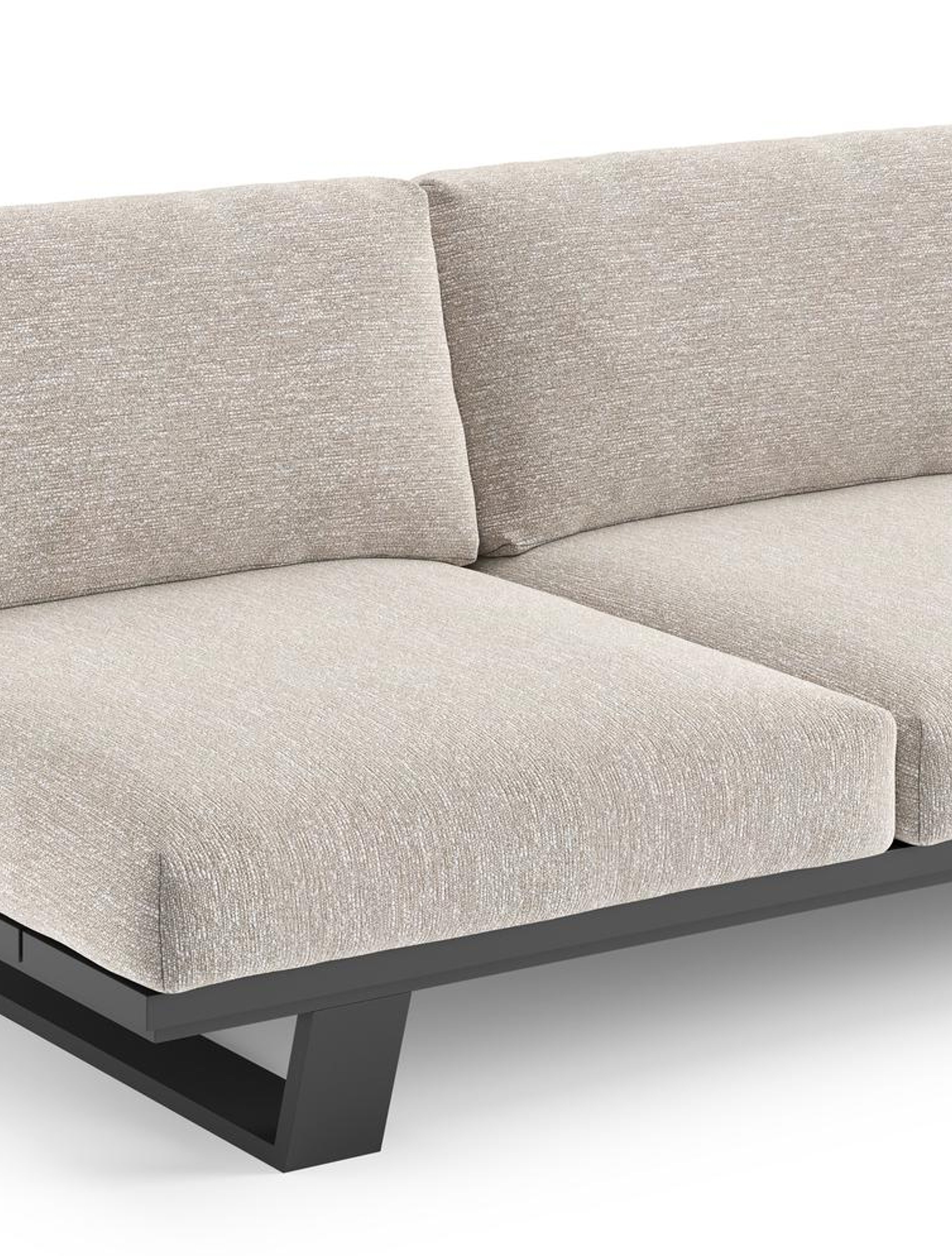 Pagino loungebank in zwart aluminium met tundra sand all weather sunbrella® luxe kussen | Exterioo tuinmeubelen