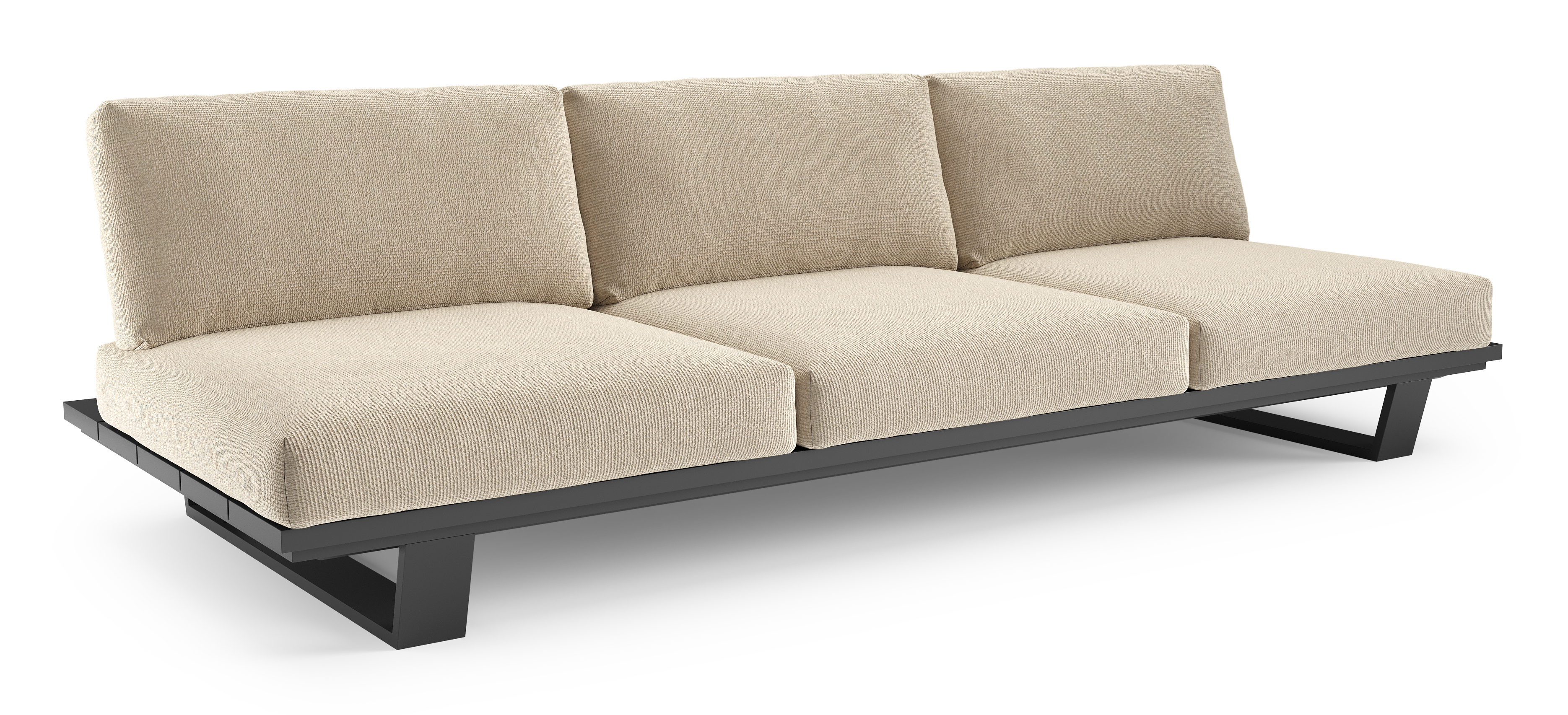 Pagino loungebank in zwart aluminium met althea chalk all weather cosytica kussen | Exterioo tuinmeubelen