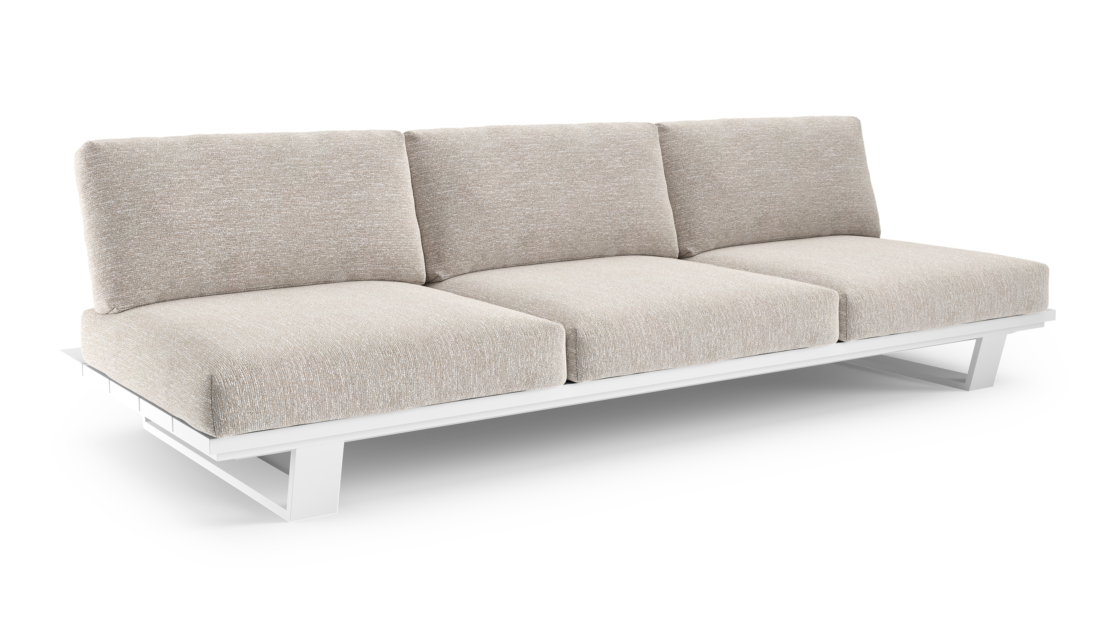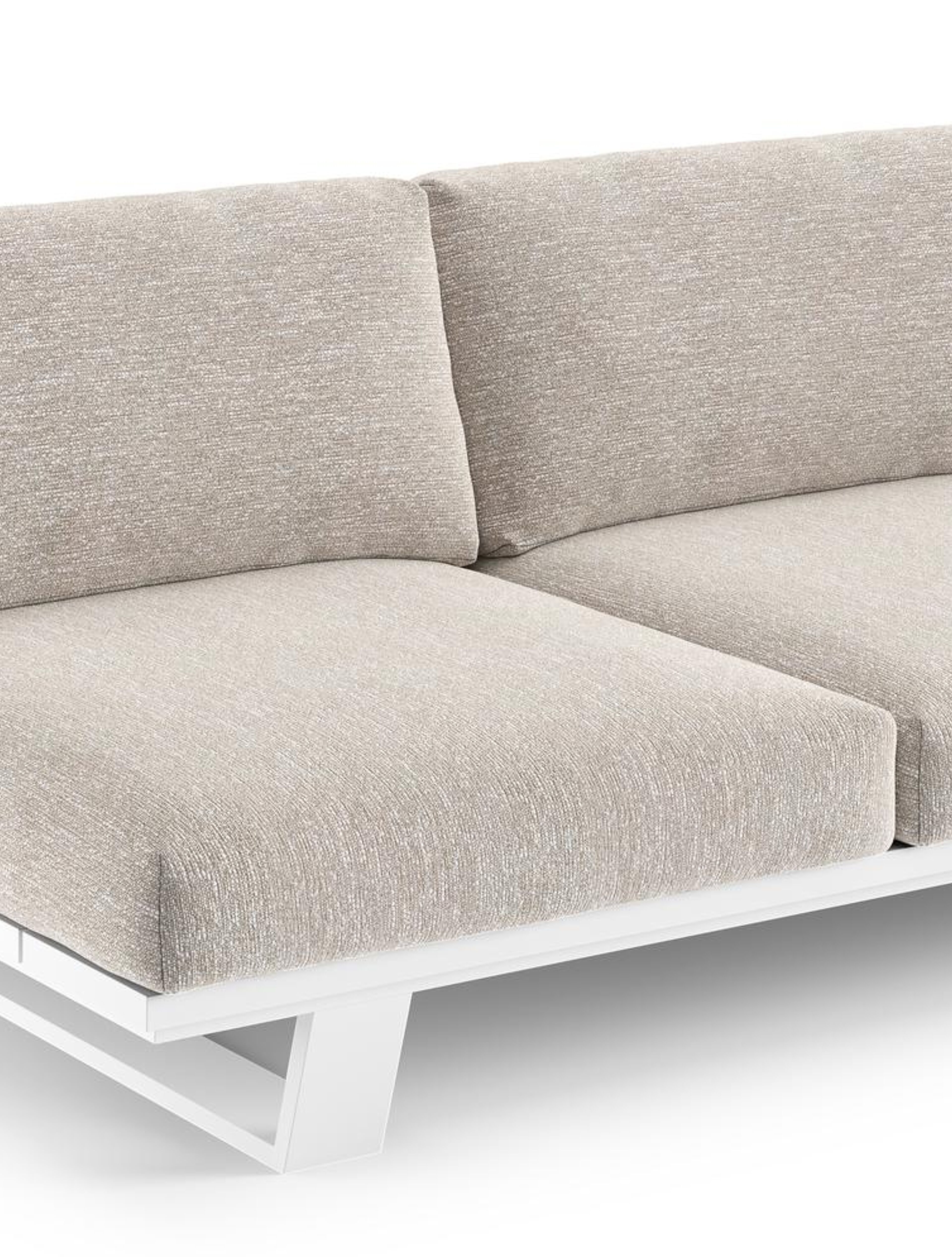 Pagino loungebank in wit aluminium met tundra sand all weather sunbrella® luxe kussen | Exterioo tuinmeubelen