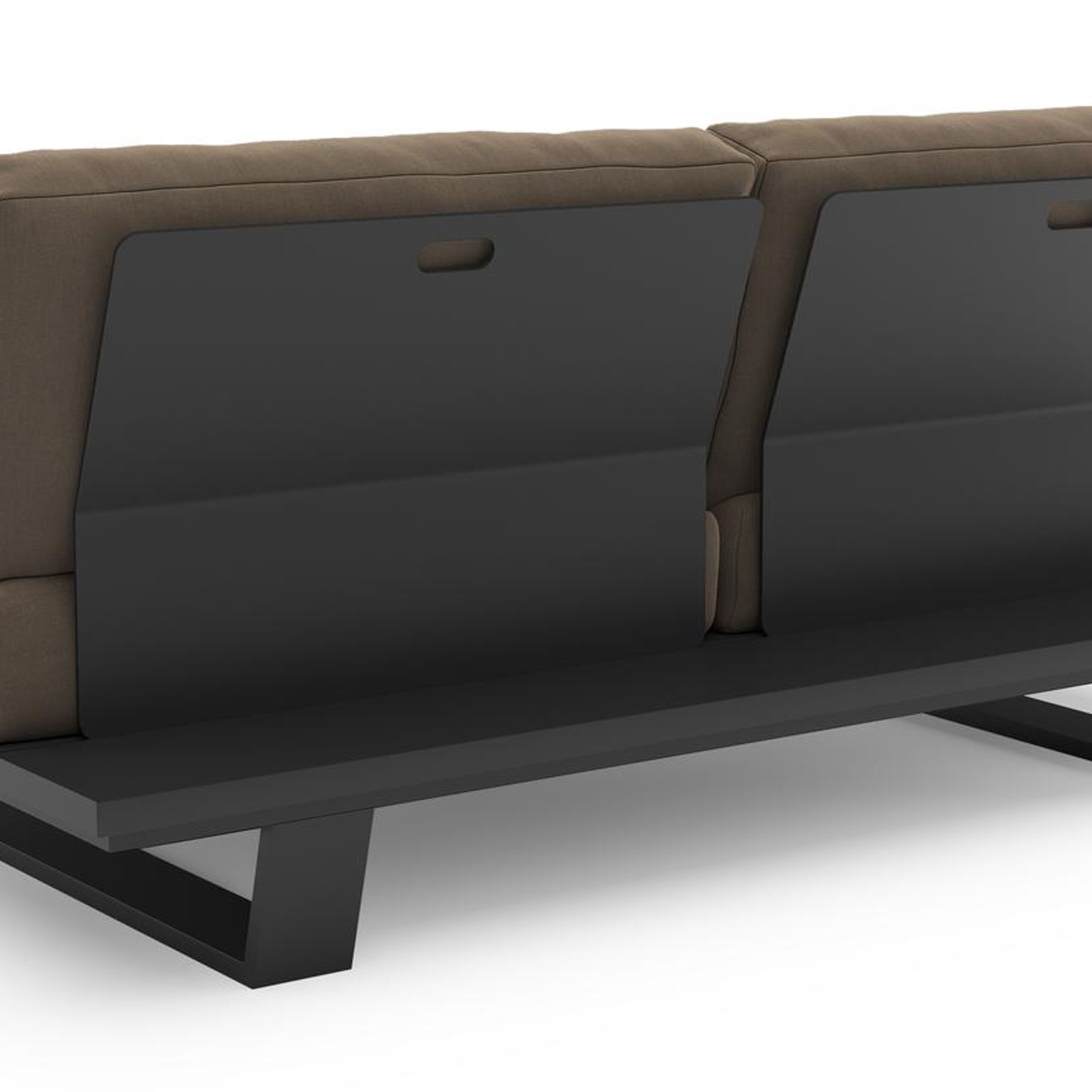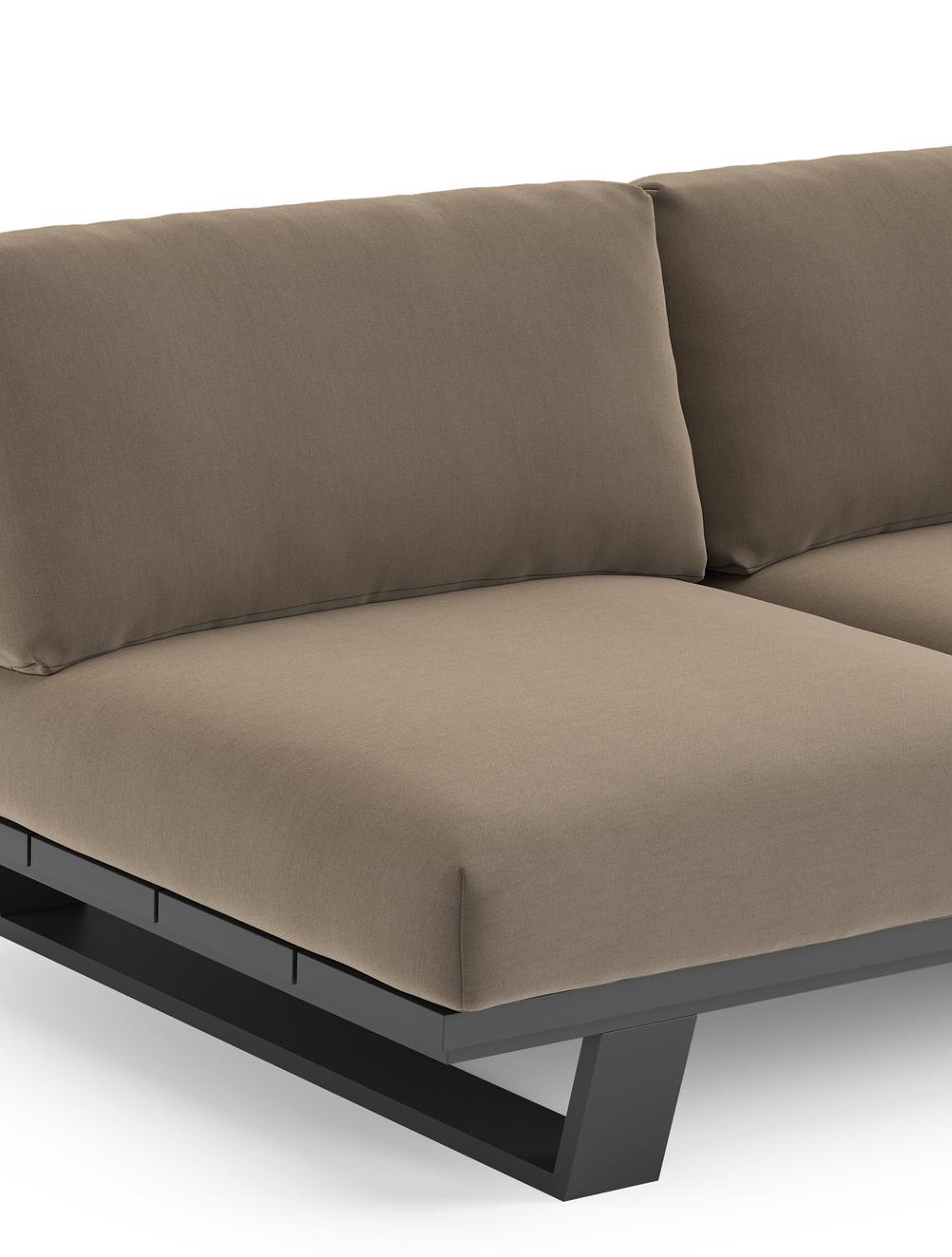 Pagino loungebank in zwart aluminium met natte heather grey all weather sunbrella® luxe kussen | Exterioo tuinmeubelen