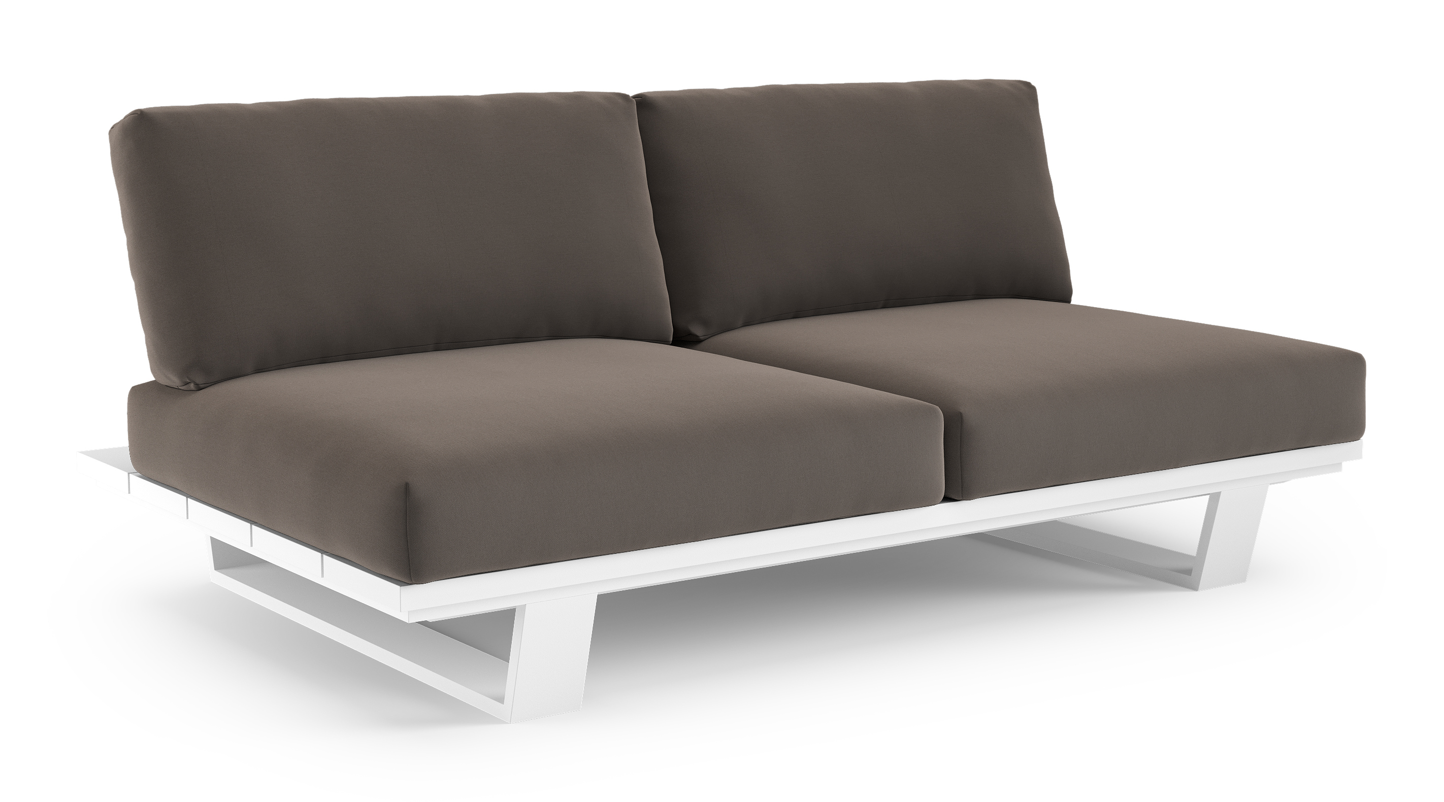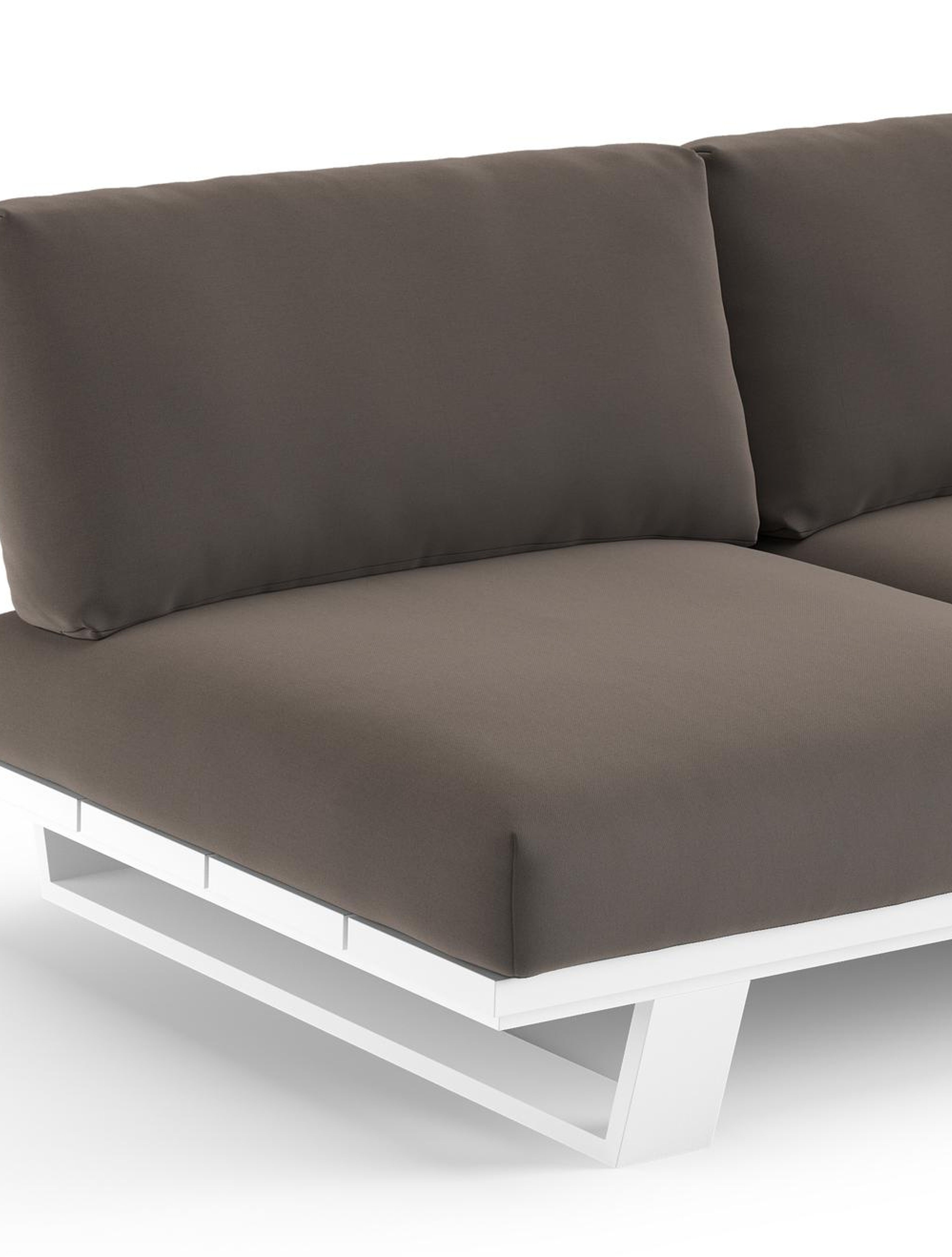 Pagino loungebank in wit aluminium met natte nature grey all weather sunbrella® luxe kussen | Exterioo tuinmeubelen