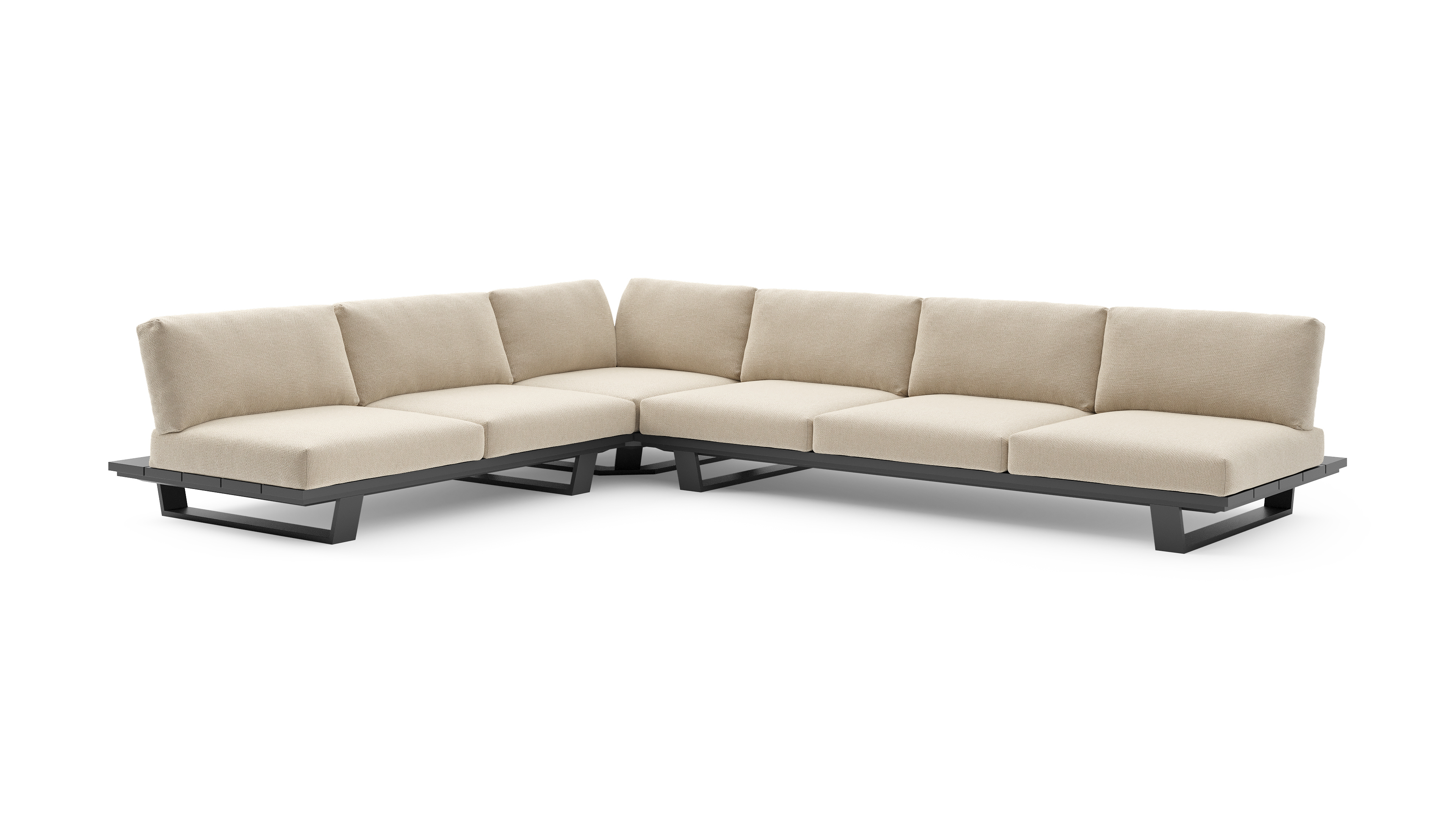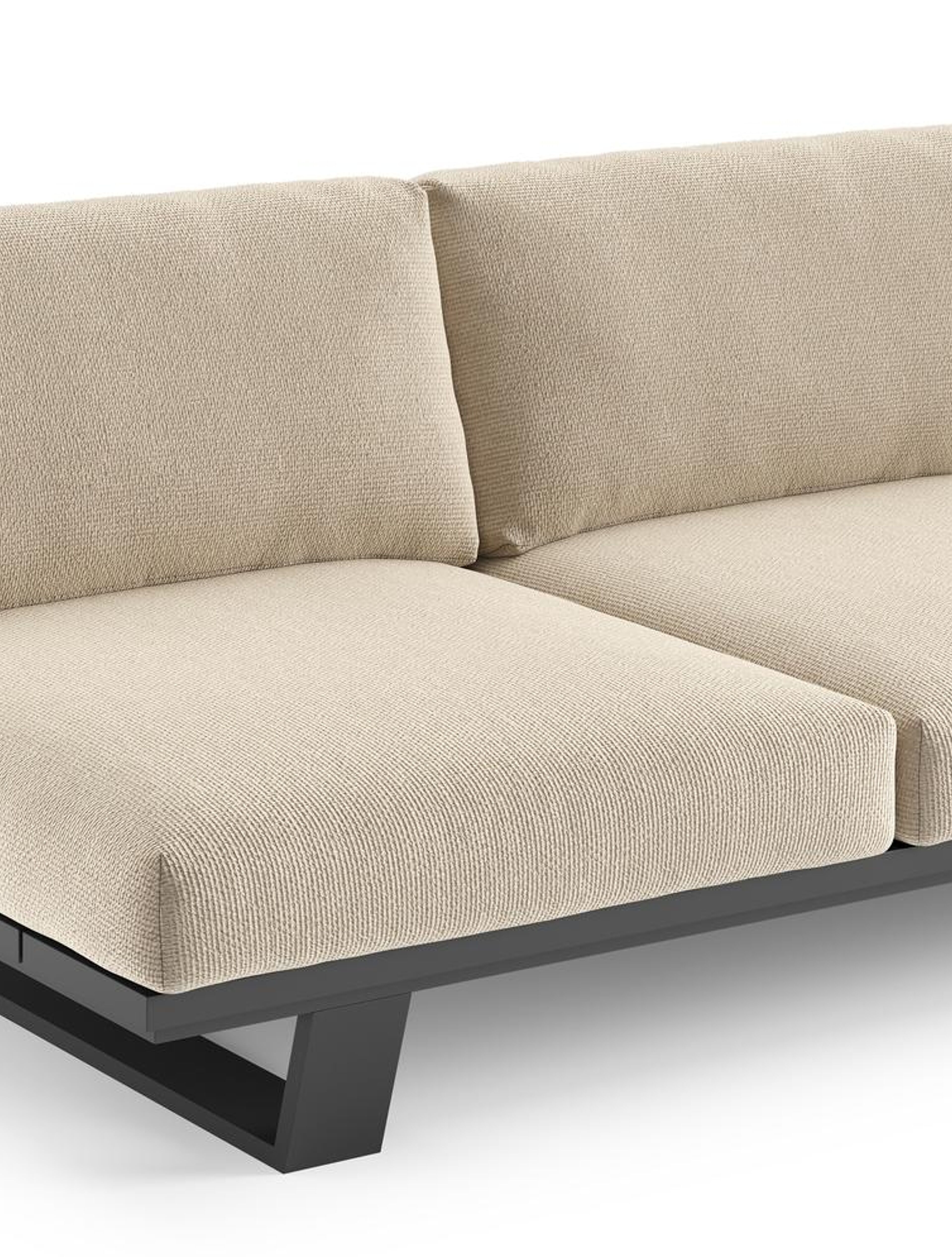 Pagino loungehoek in zwart aluminium met althea chalk all weather cosytica kussen | Exterioo tuinmeubelen