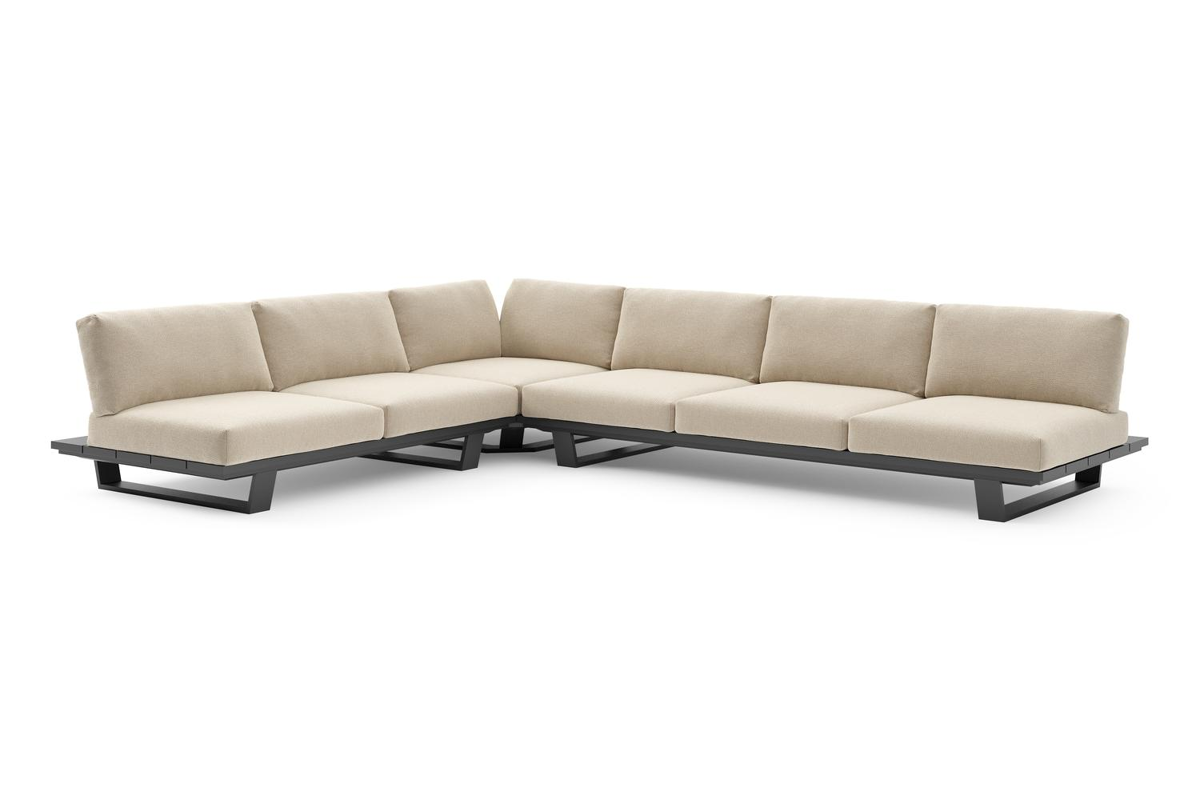 Pagino loungehoek in zwart aluminium met althea chalk all weather cosytica kussen | Exterioo