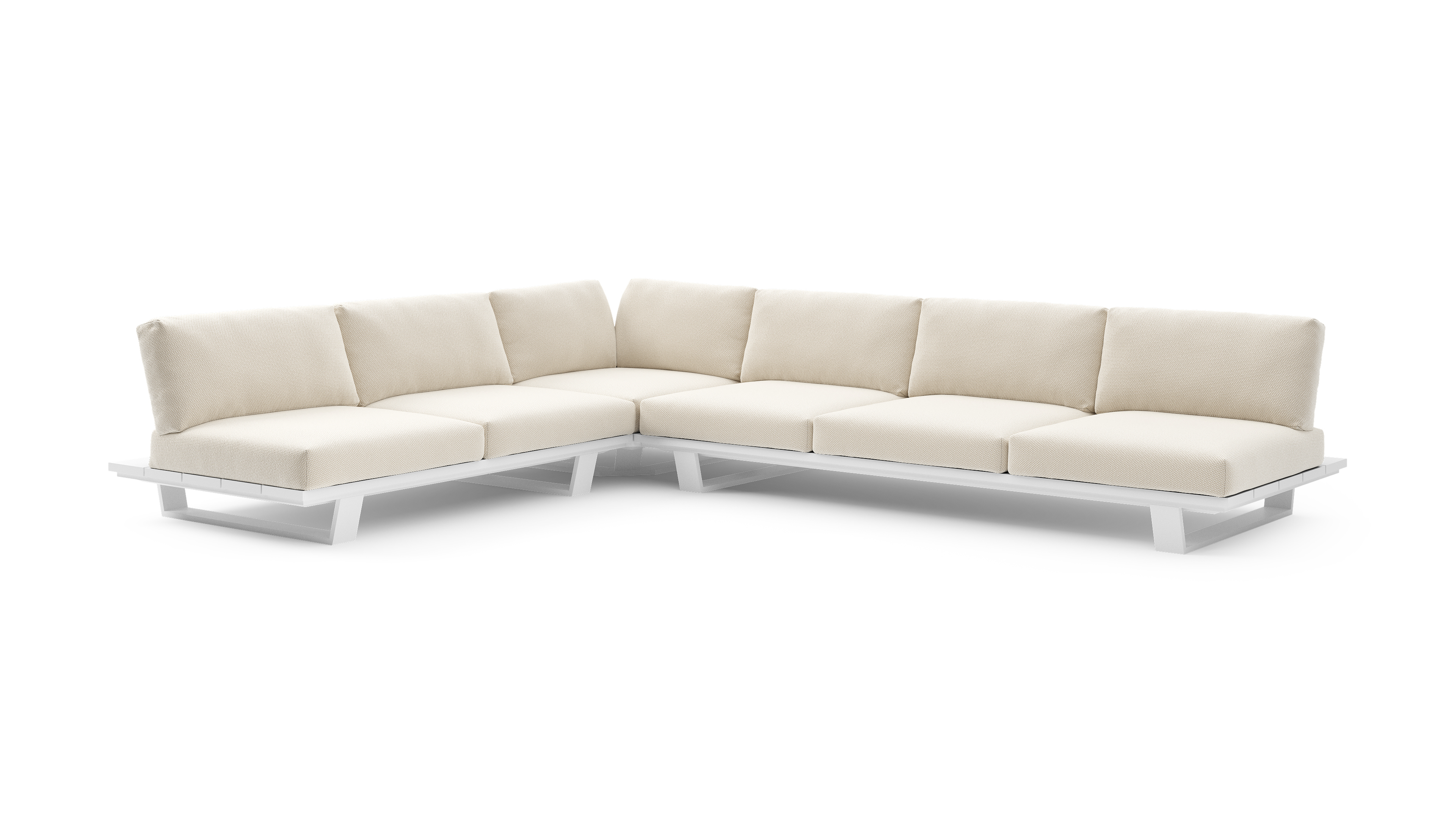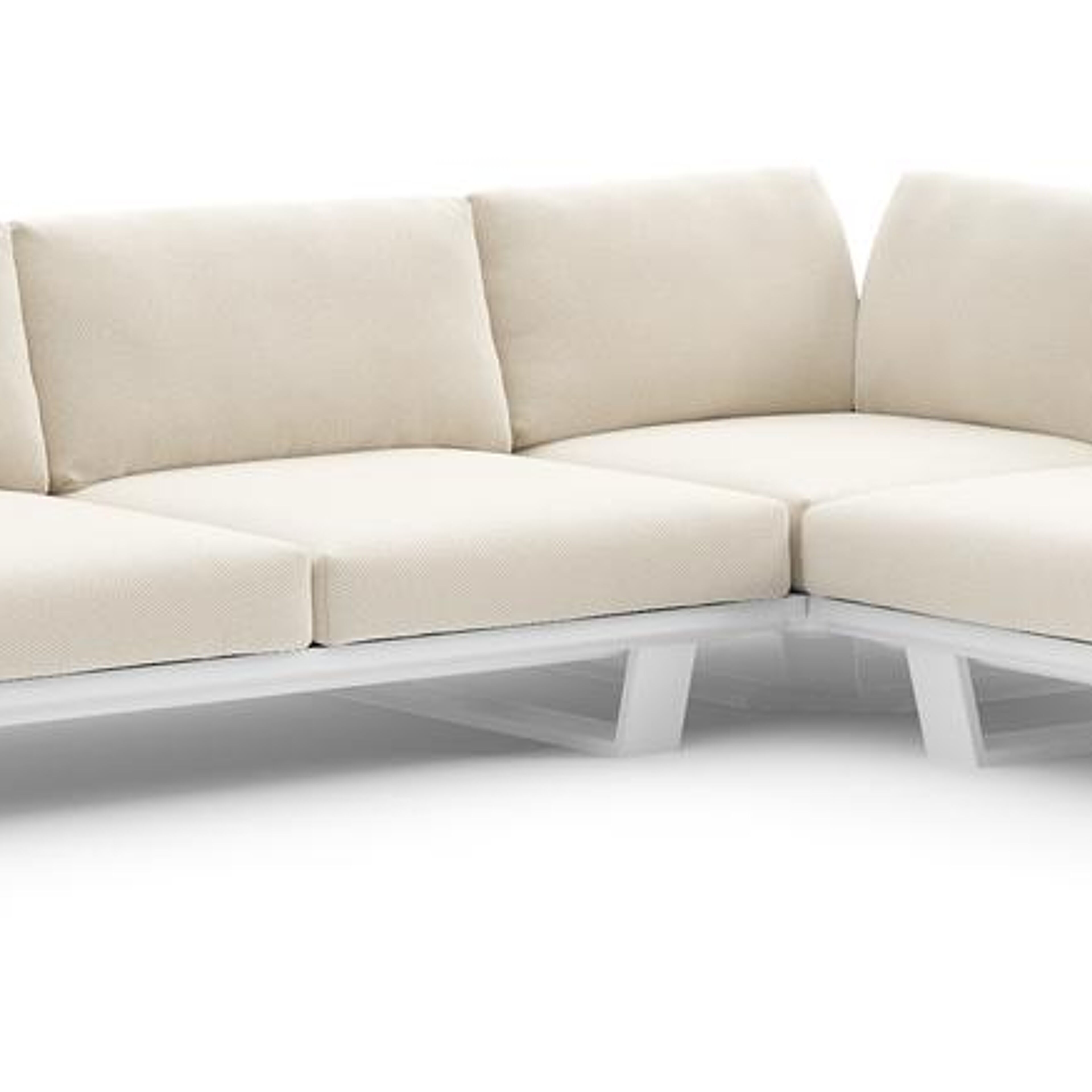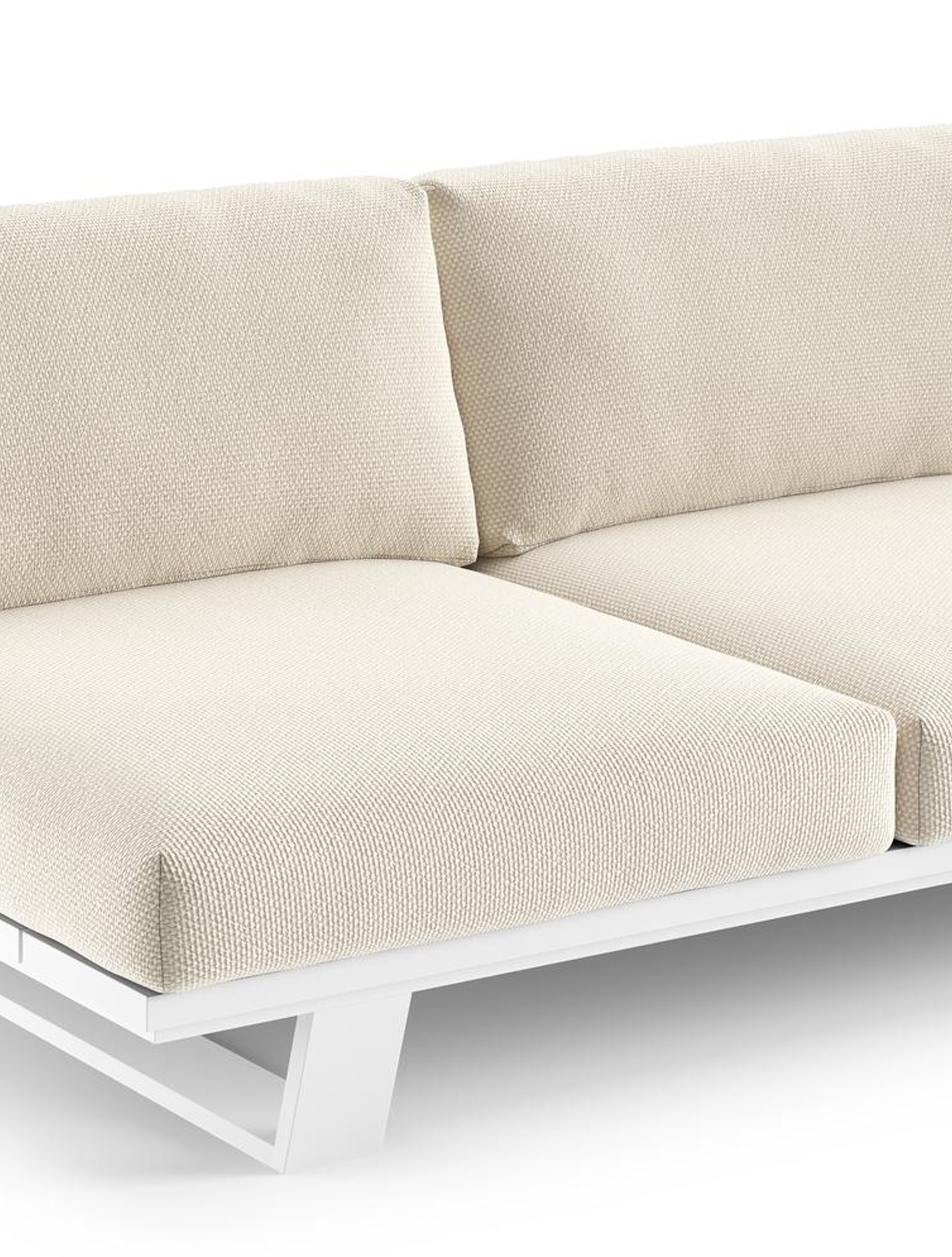 Pagino loungehoek in wit aluminium met althea off white all weather cosytica kussen | Exterioo tuinmeubelen