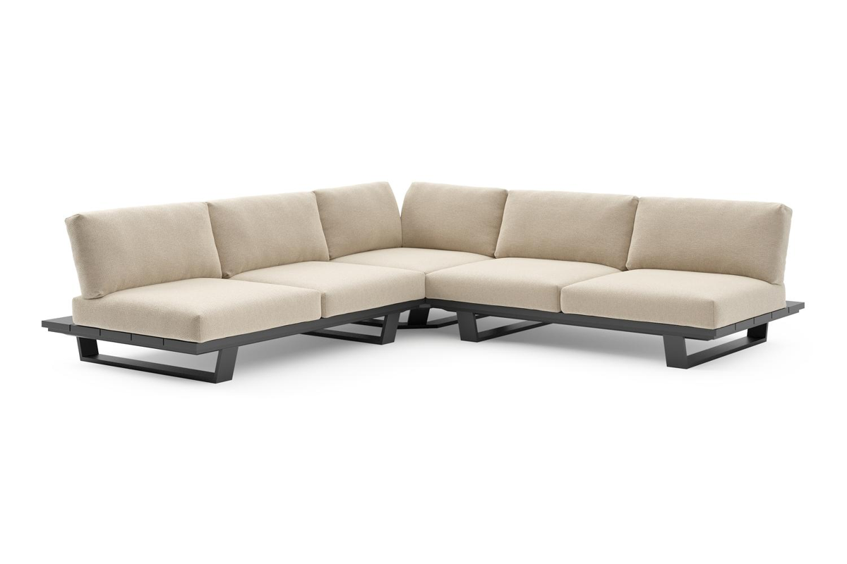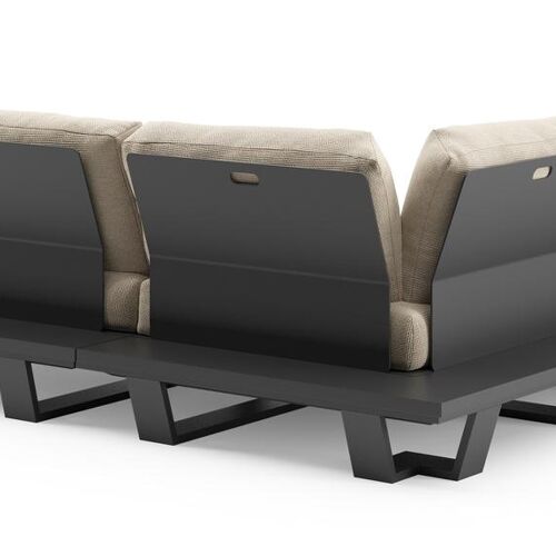 Pagino loungehoek in zwart aluminium met althea chalk all weather cosytica kussen | Exterioo