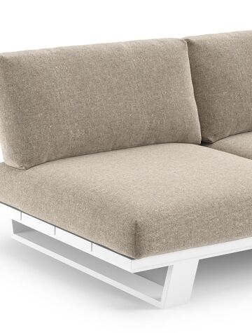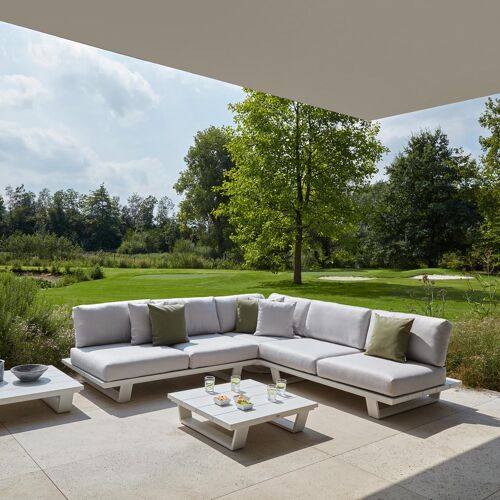 Pagino loungehoek in wit aluminium met chartres pewter all weather sunbrella® luxe kussen | Exterioo