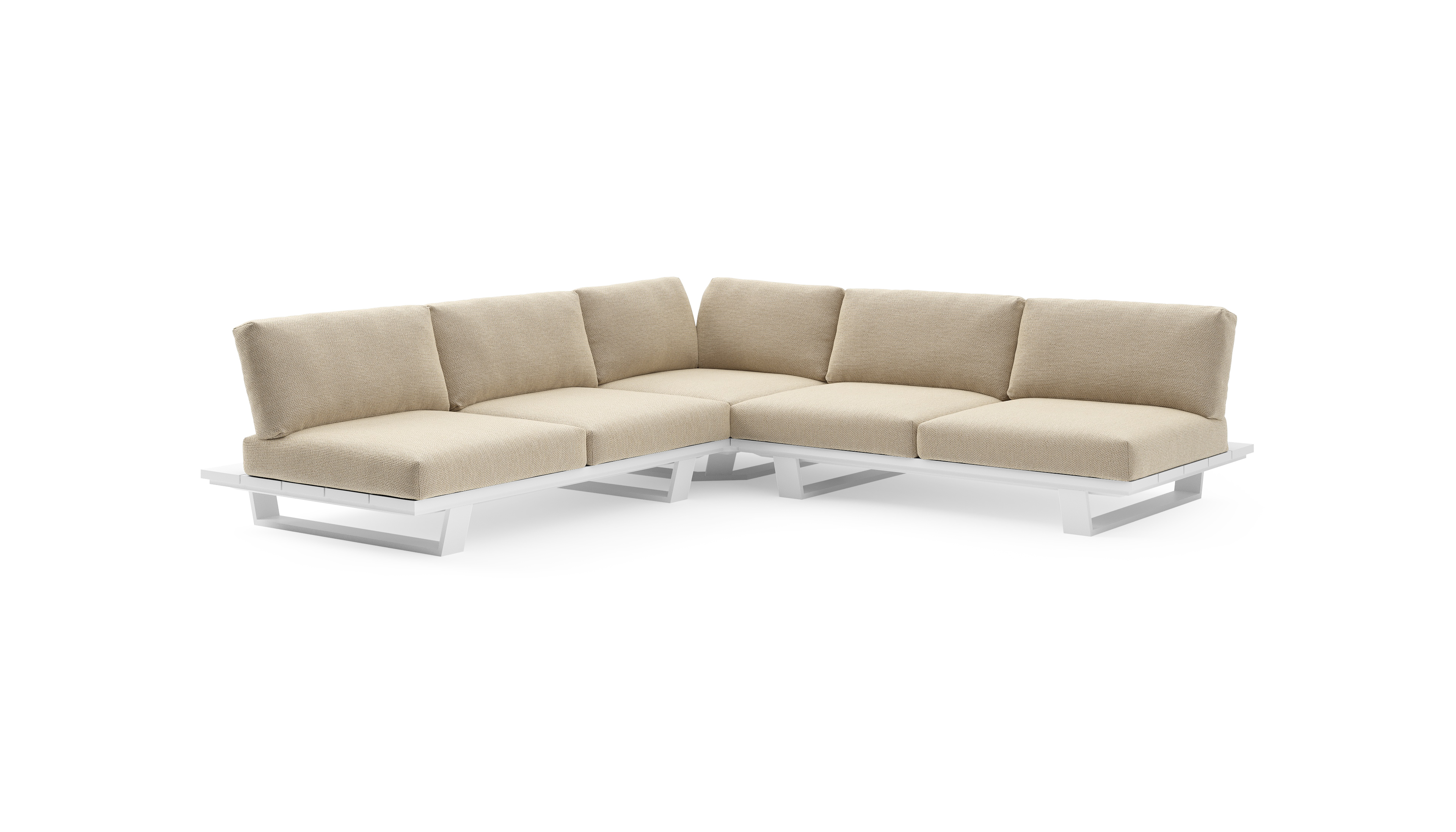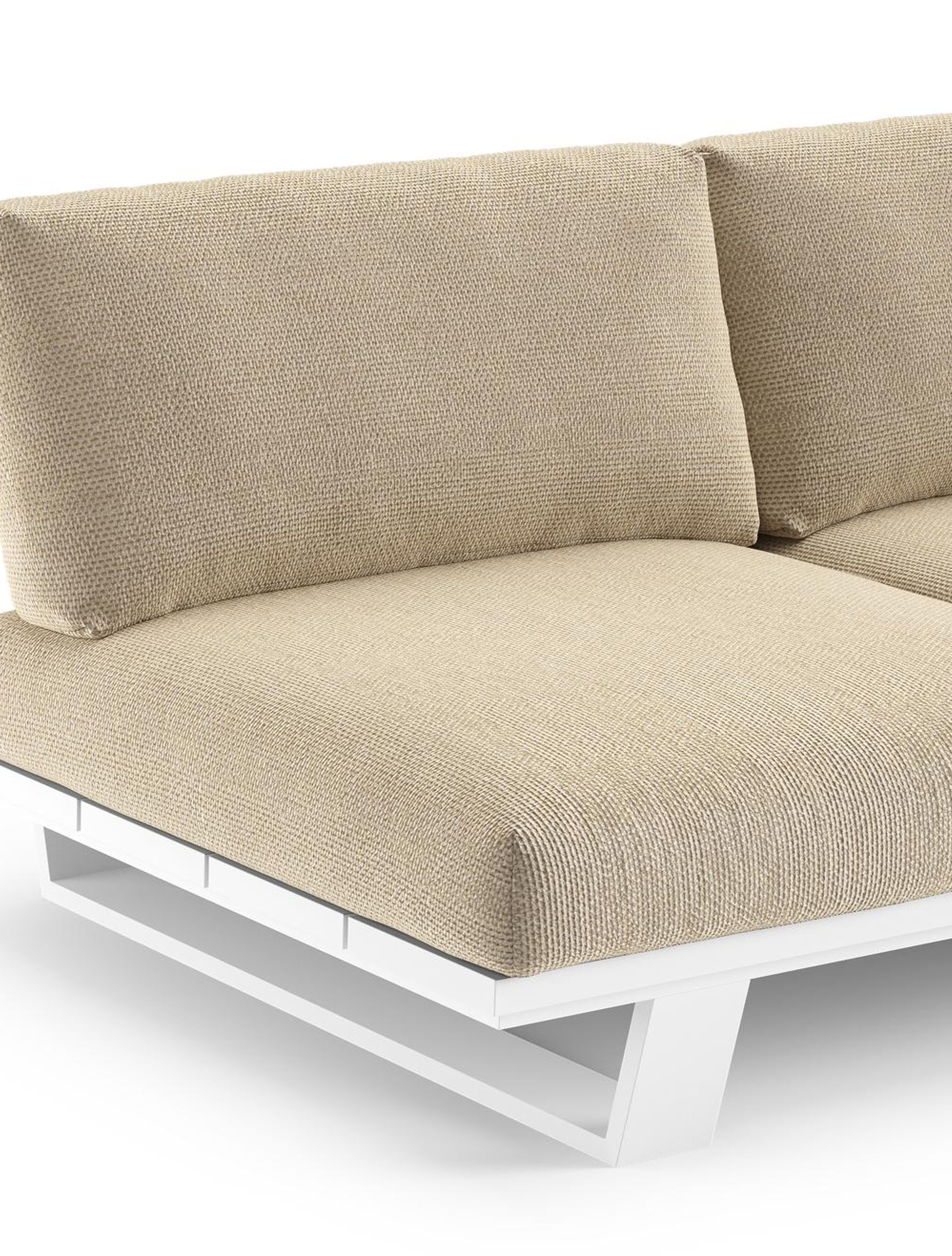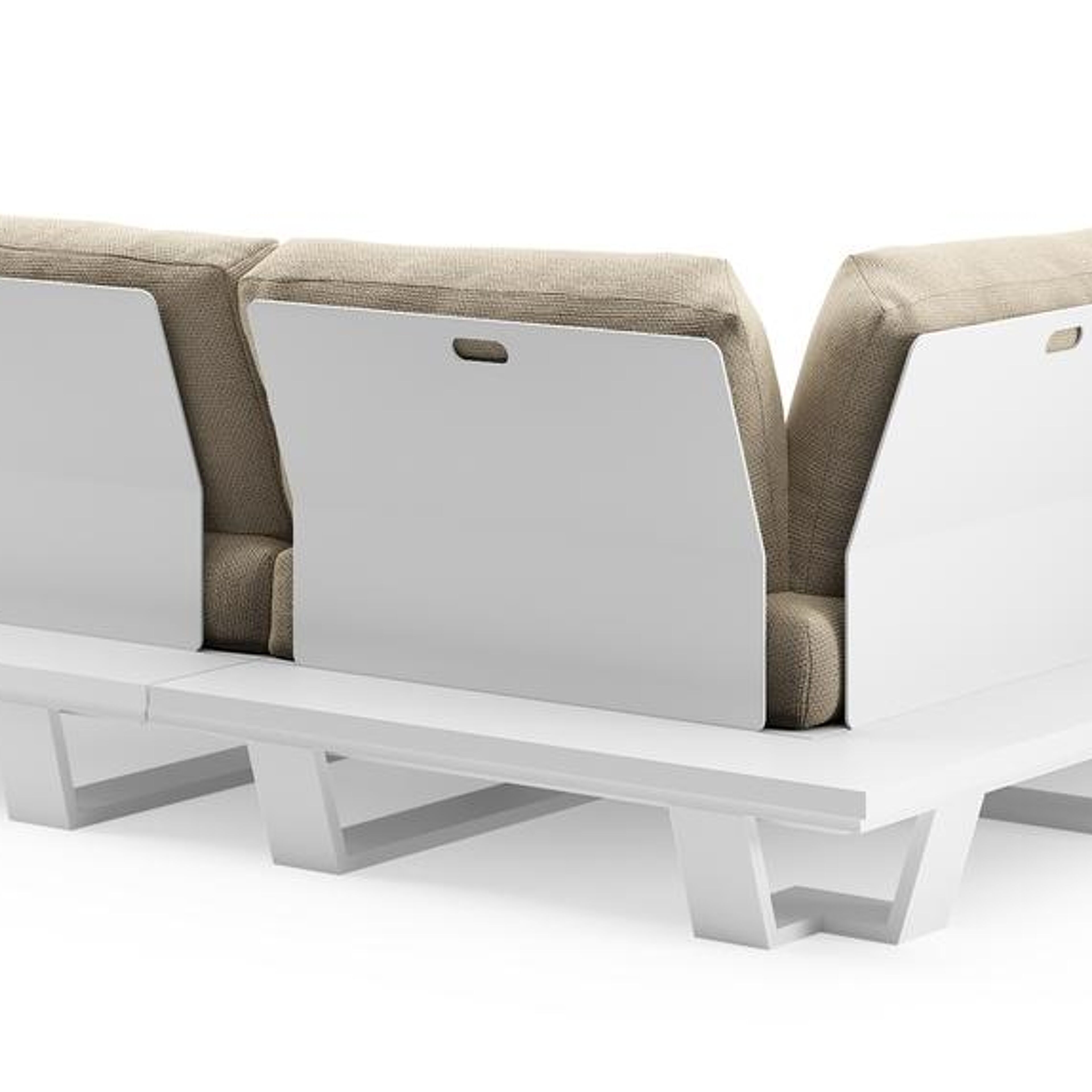 Pagino loungehoek in wit aluminium met althea camel all weather cosytica kussen | Exterioo tuinmeubelen
