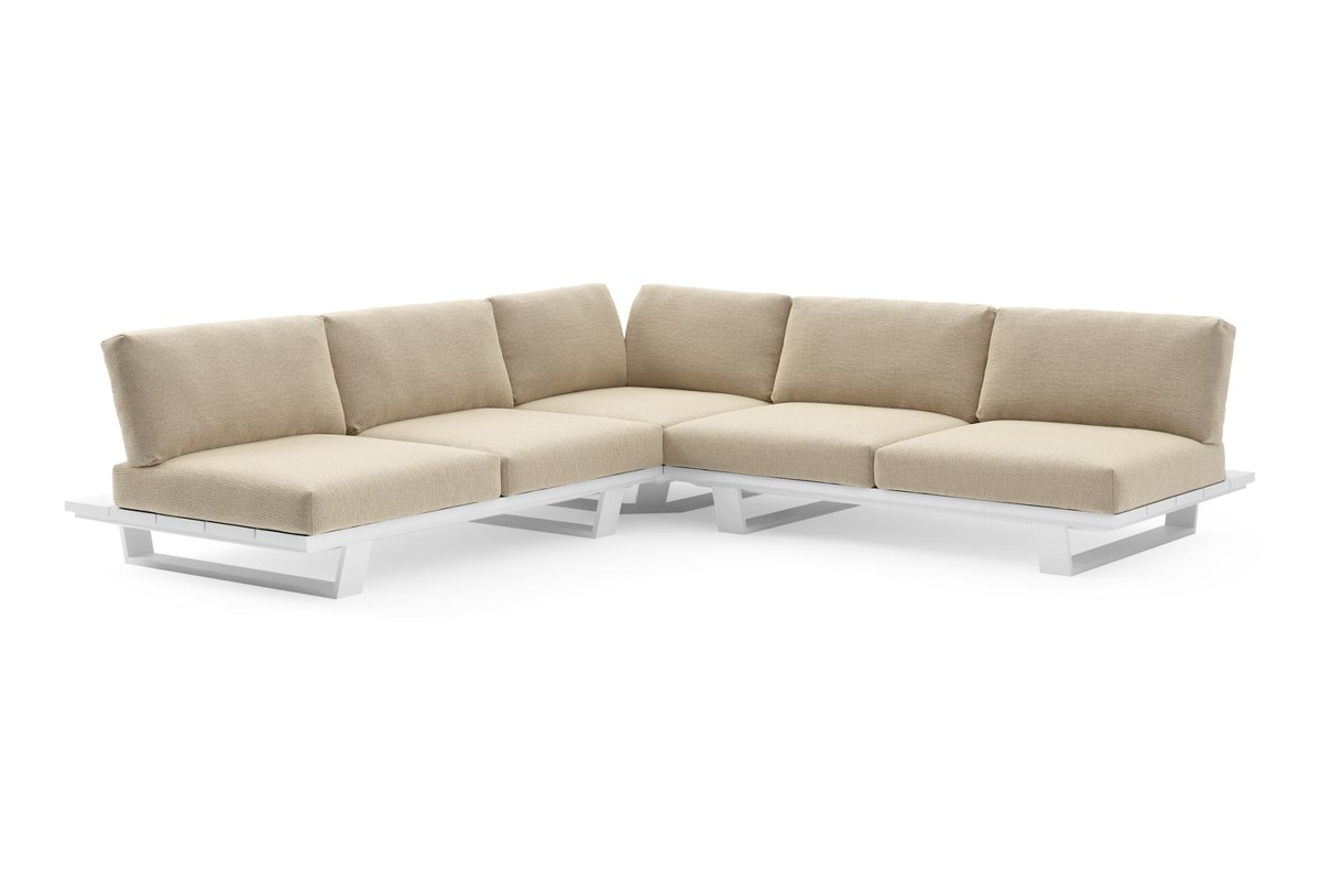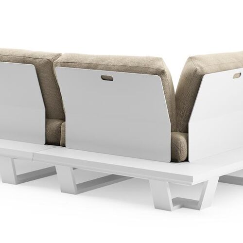 Pagino loungehoek in wit aluminium met althea camel all weather cosytica kussen | Exterioo