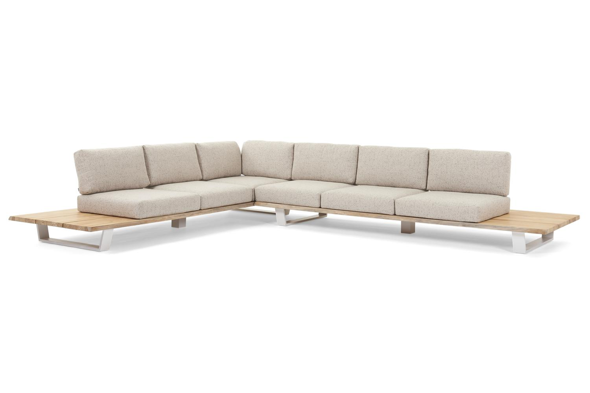 Pagino loungehoek in wit aluminium en met tweed dune sunbrella® luxe kussens | Exterioo