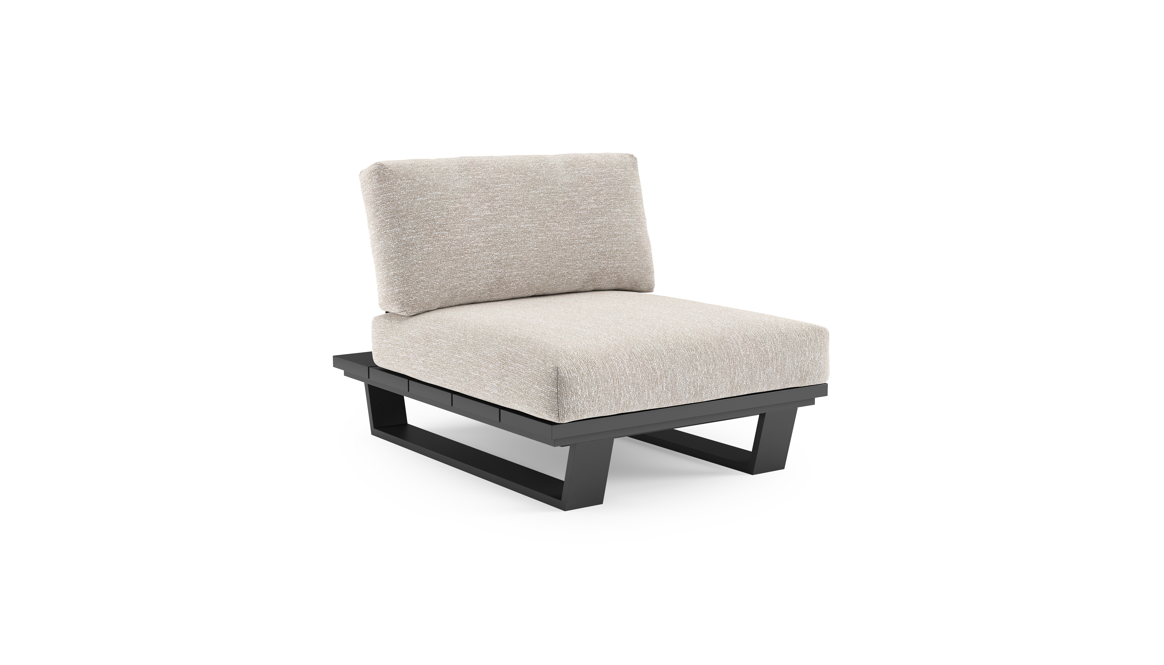 Pagino loungestoel in zwart aluminium met tundra sand all weather sunbrella® luxe kussen | Exterioo tuinmeubelen