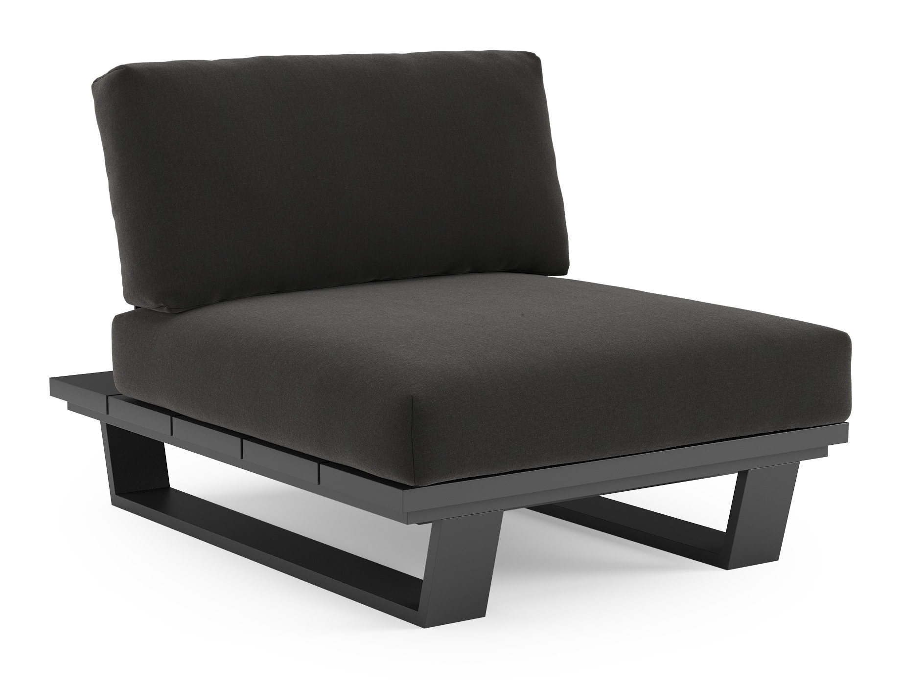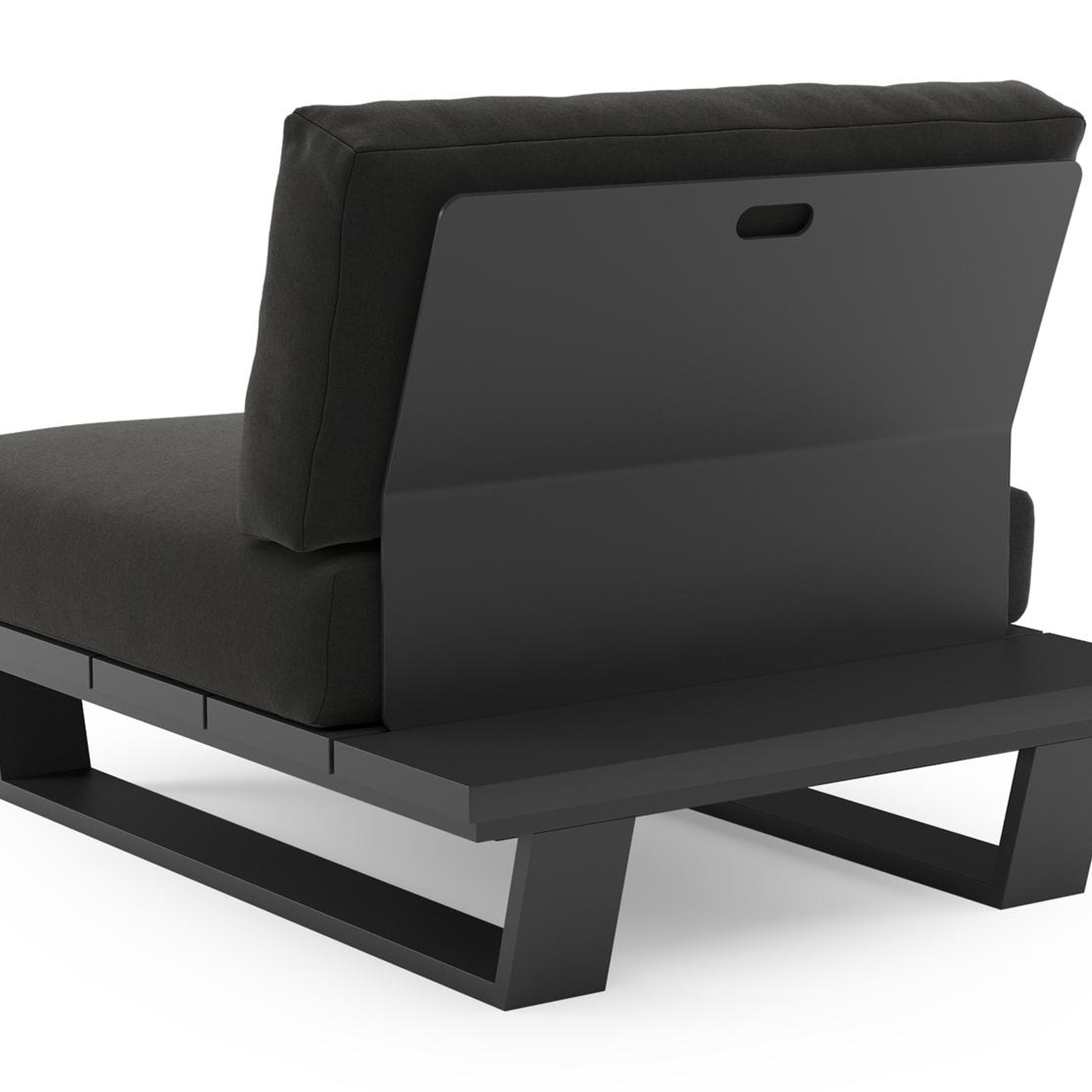 Pagino loungestoel in zwart aluminium met natte sooty all weather sunbrella® luxe kussen | Exterioo tuinmeubelen
