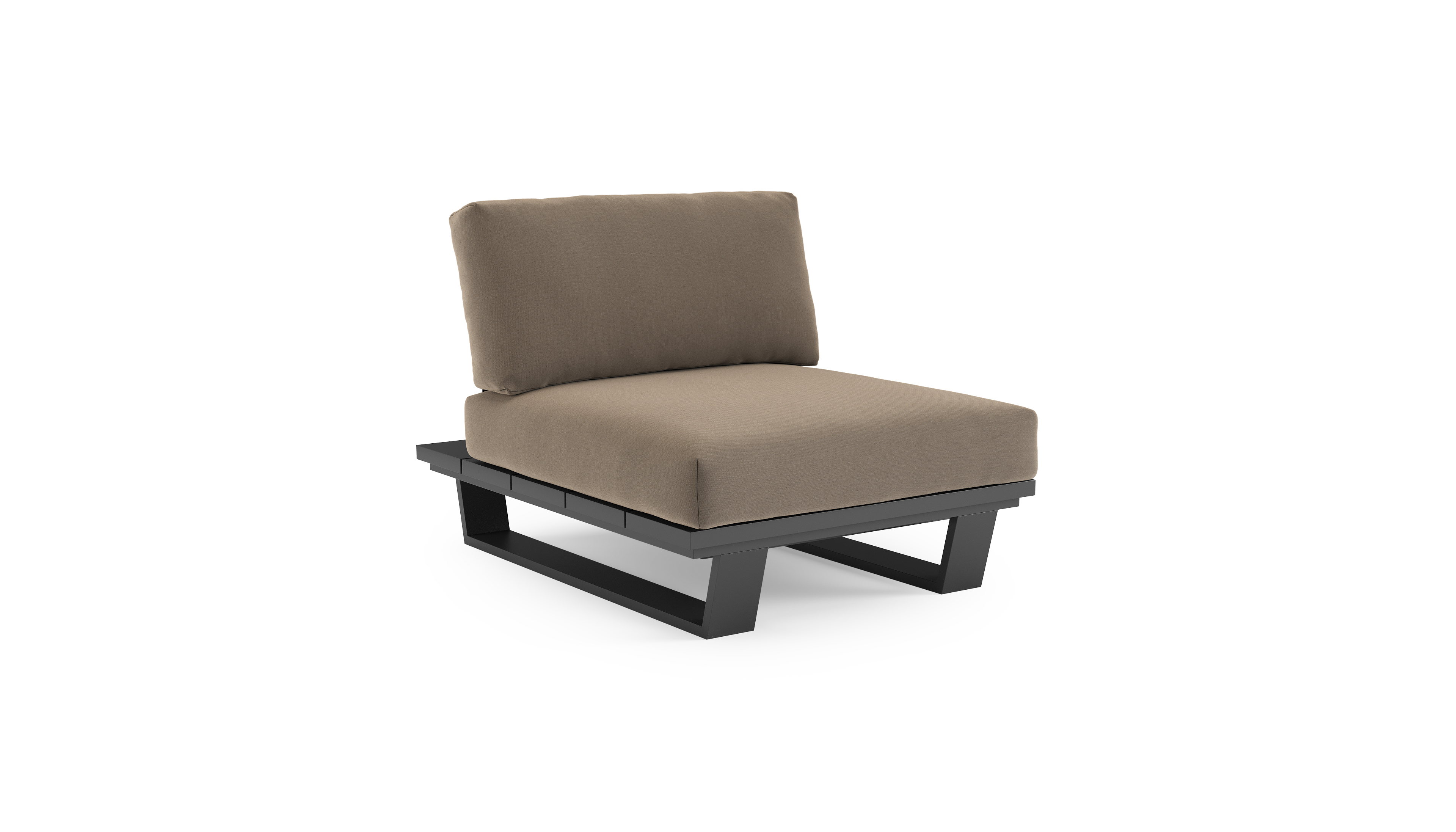 Pagino loungestoel in zwart aluminium met natte heather grey all weather sunbrella® luxe kussen | Exterioo tuinmeubelen