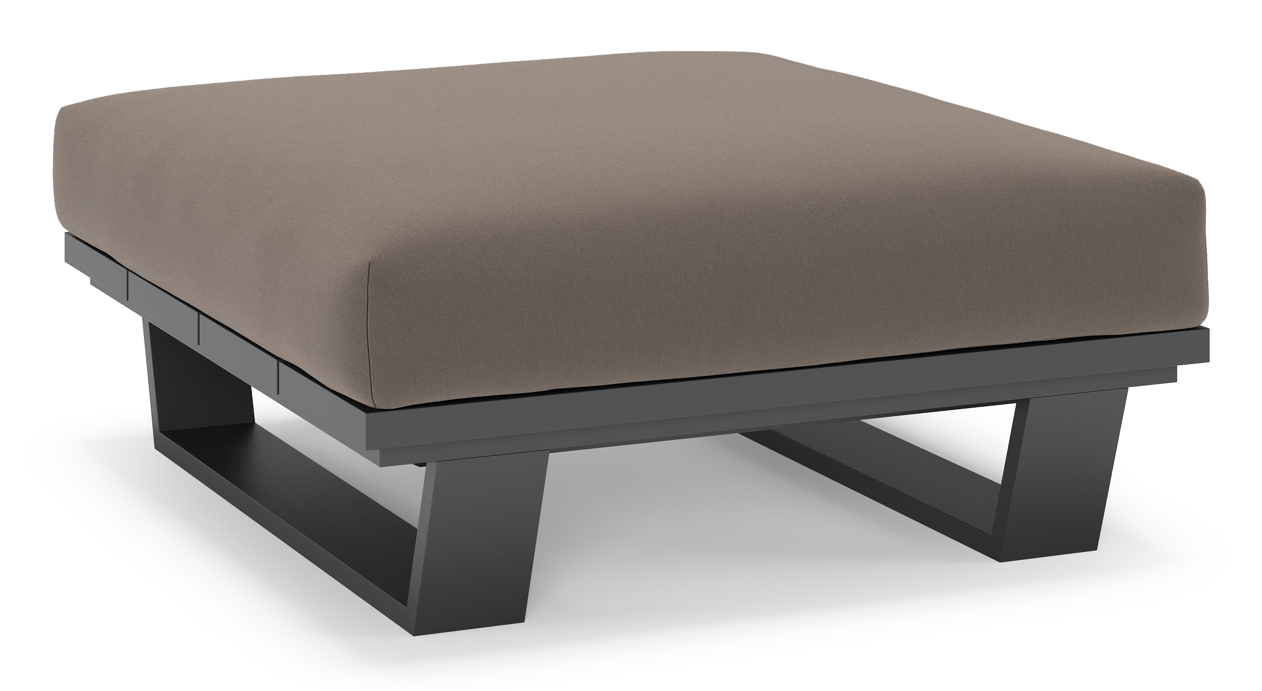 Pagino poef in zwart aluminium met natte nature grey all weather sunbrella® luxe kussen | Exterioo tuinmeubelen
