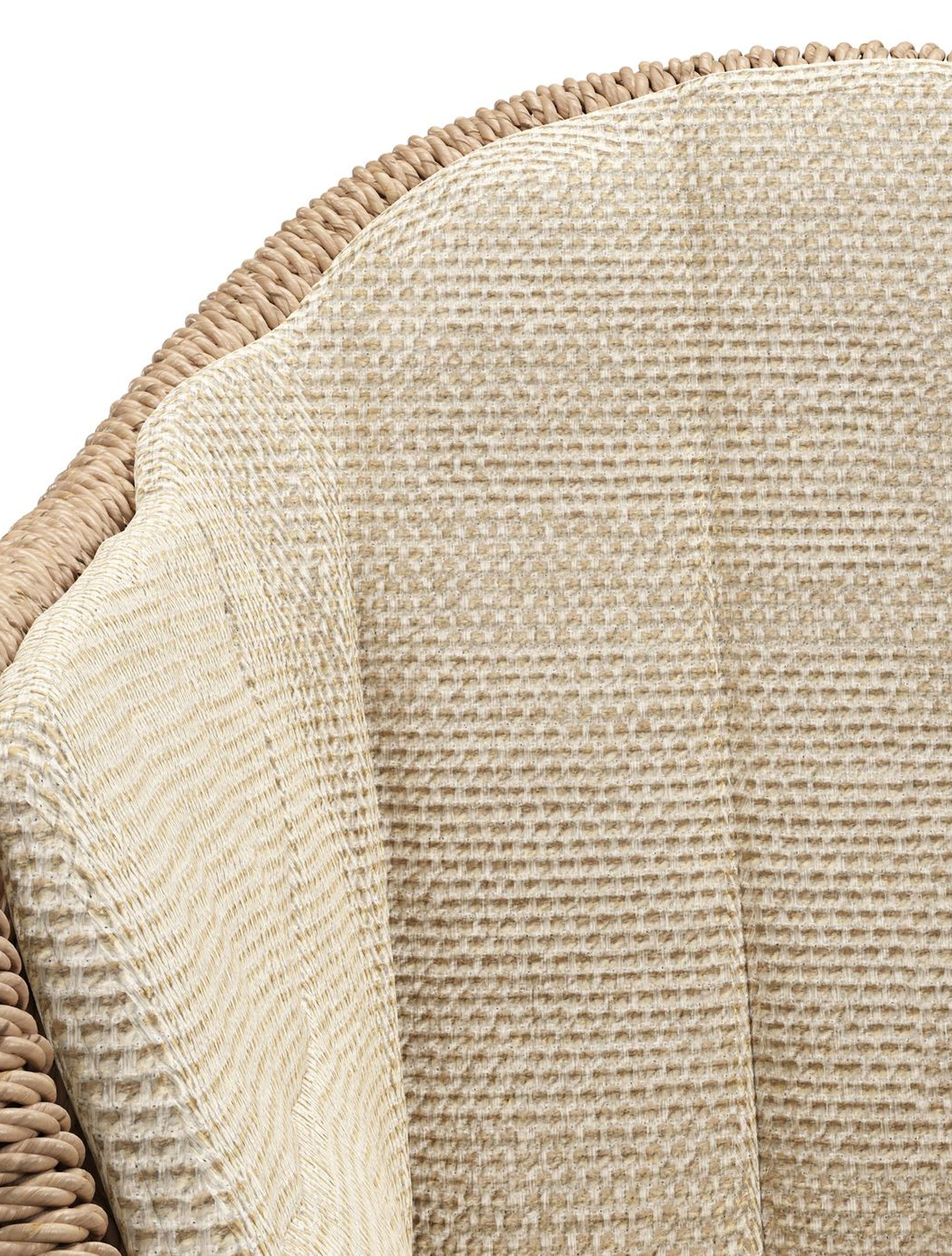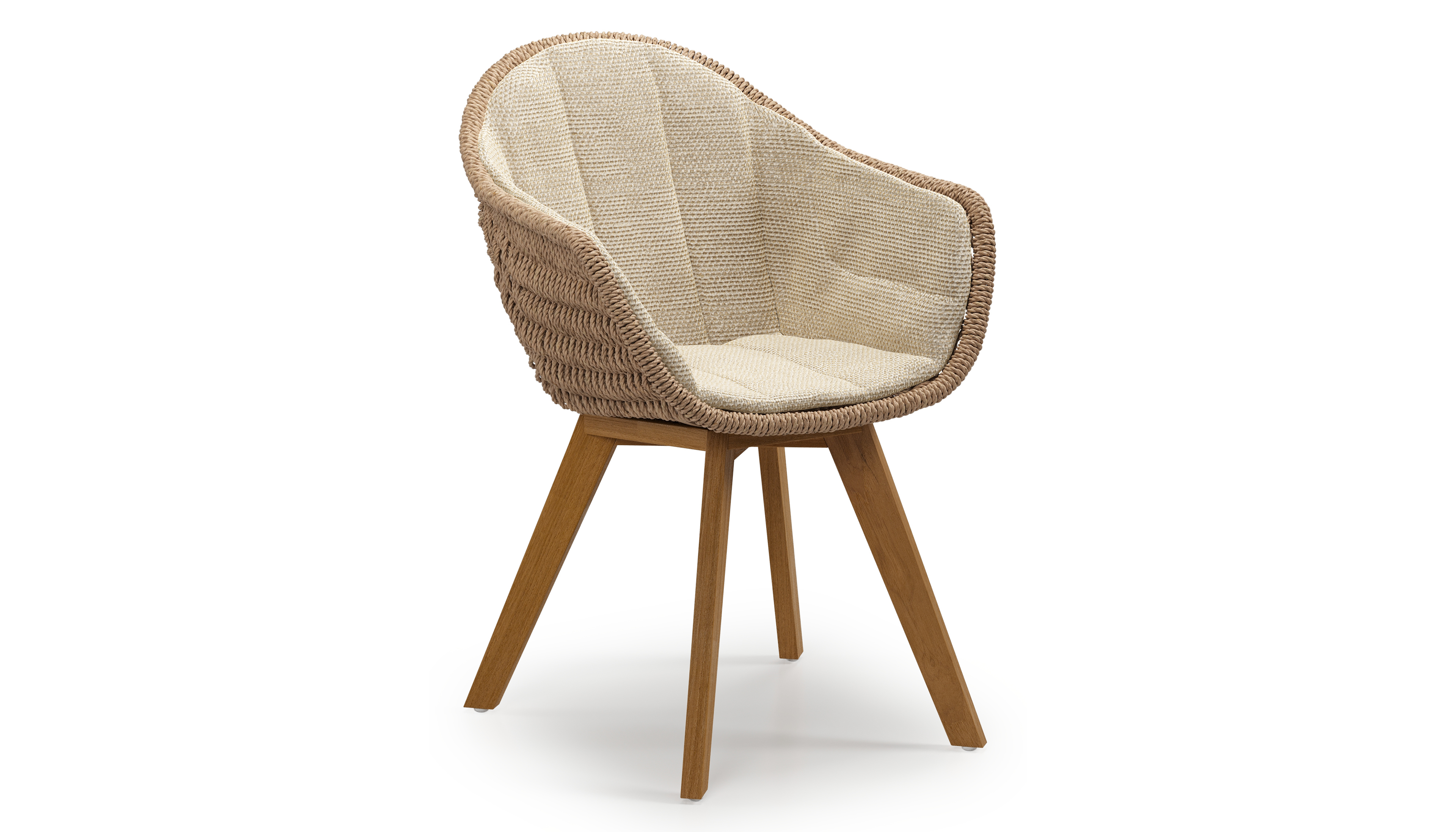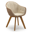 Pagino tuinstoel in teak en naturel ronde wicker met zitkussen in All Weather Cosytica Althea Camel | Exterioo tuinmeubelen