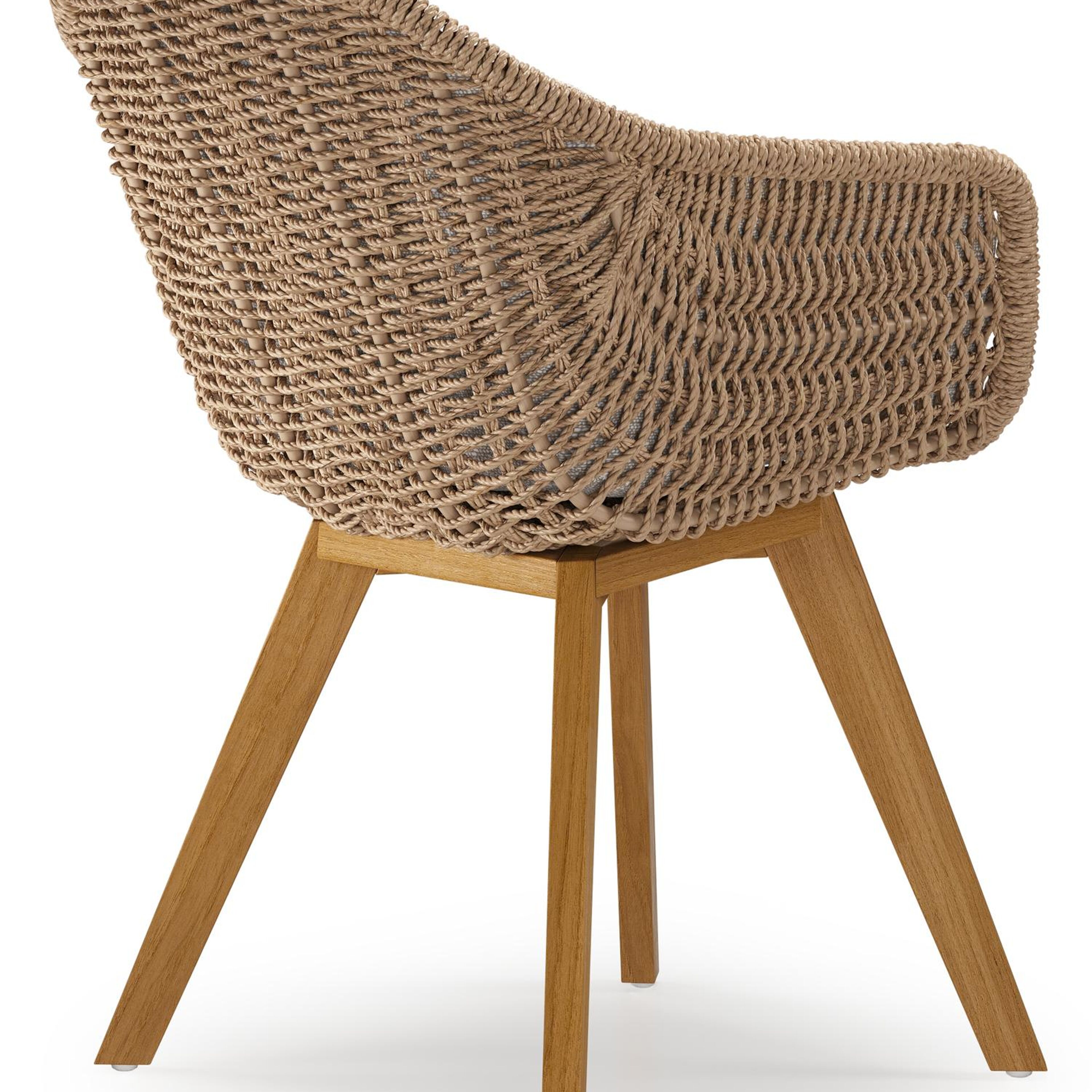 Pagino tuinstoel in teak en naturel ronde wicker met zitkussen in All Weather Sunbrella® Luxe Tundra Sand | Exterioo tuinmeubelen