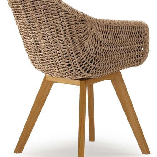 Pagino tuinstoel in teak en naturel ronde wicker met zitkussen in All Weather Sunbrella® Luxe Natte Sooty | Exterioo