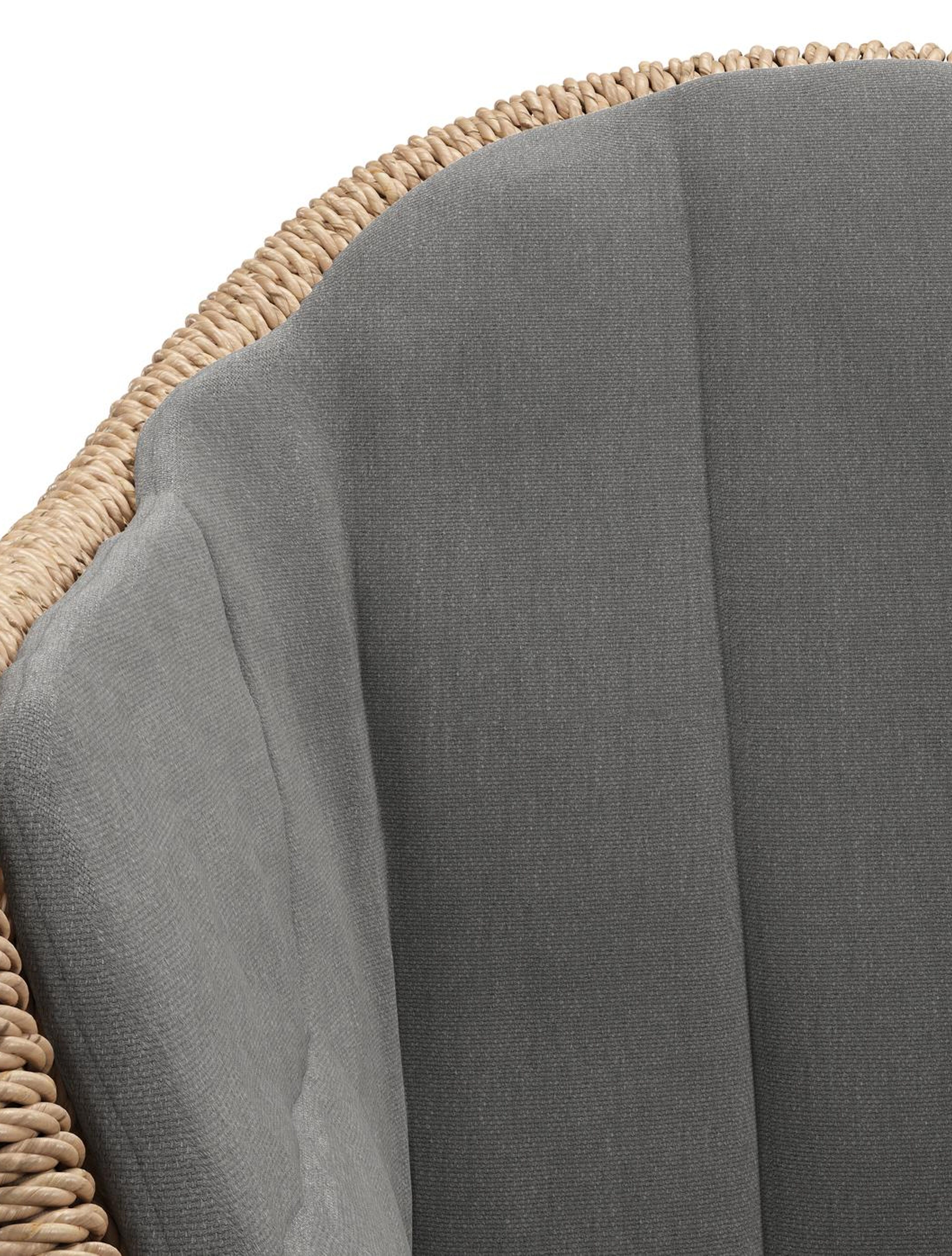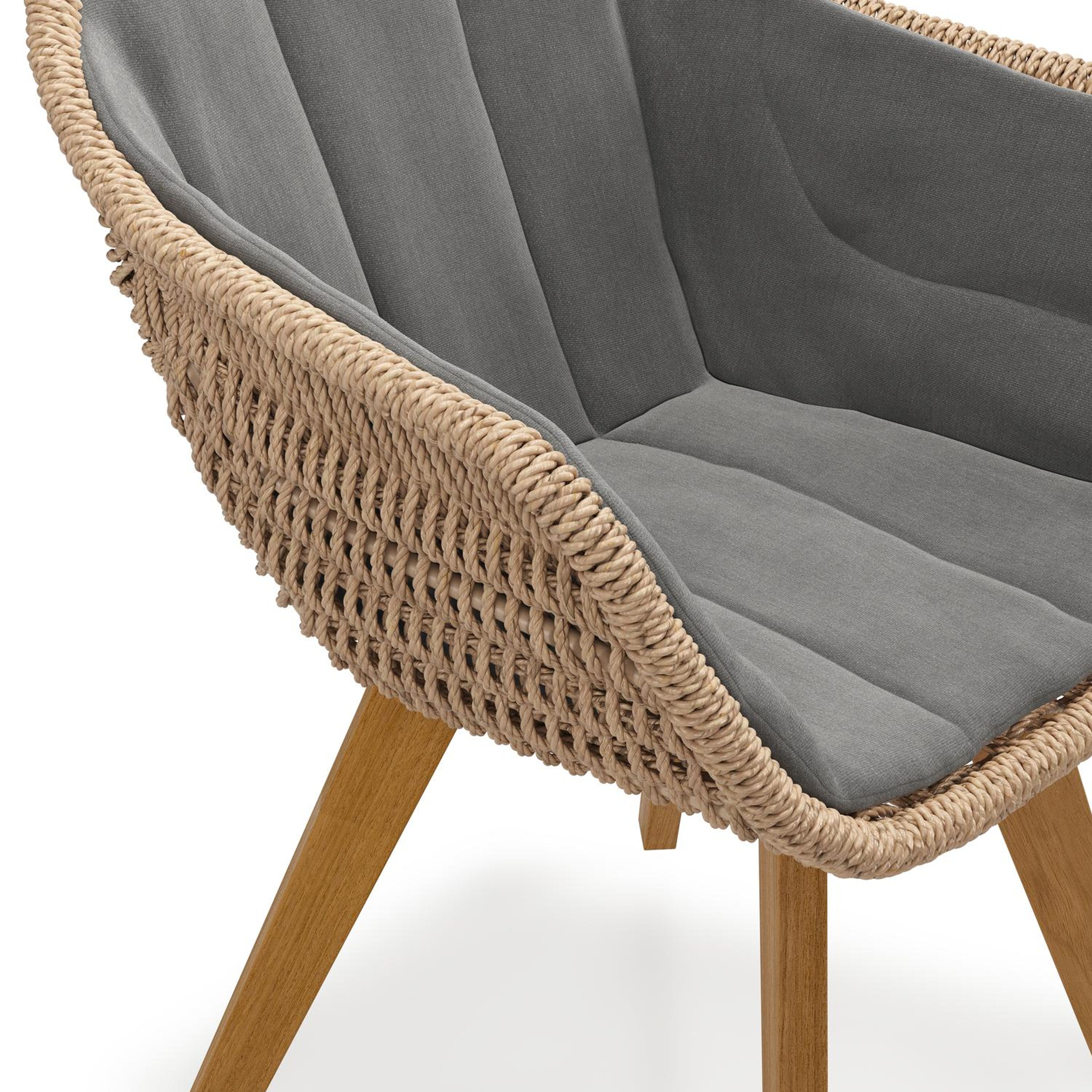 Pagino tuinstoel in teak en naturel ronde wicker met zitkussen in All Weather Sunbrella® Luxe Natte Charcoal Chine | Exterioo tuinmeubelen