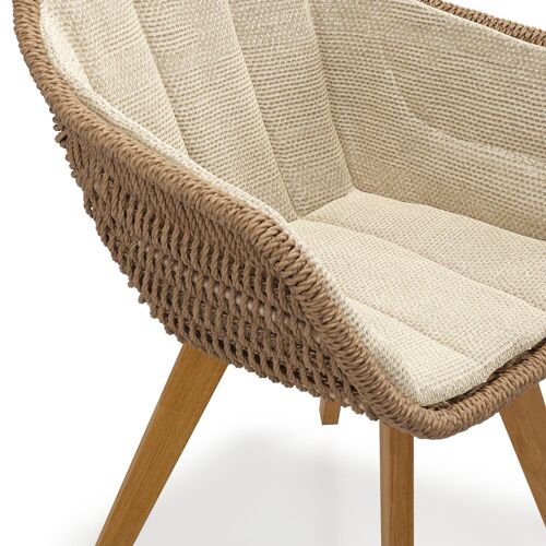 Pagino tuinstoel in teak en bruin ronde wicker met zitkussen in All Weather Cosytica Althea Camel | Exterioo