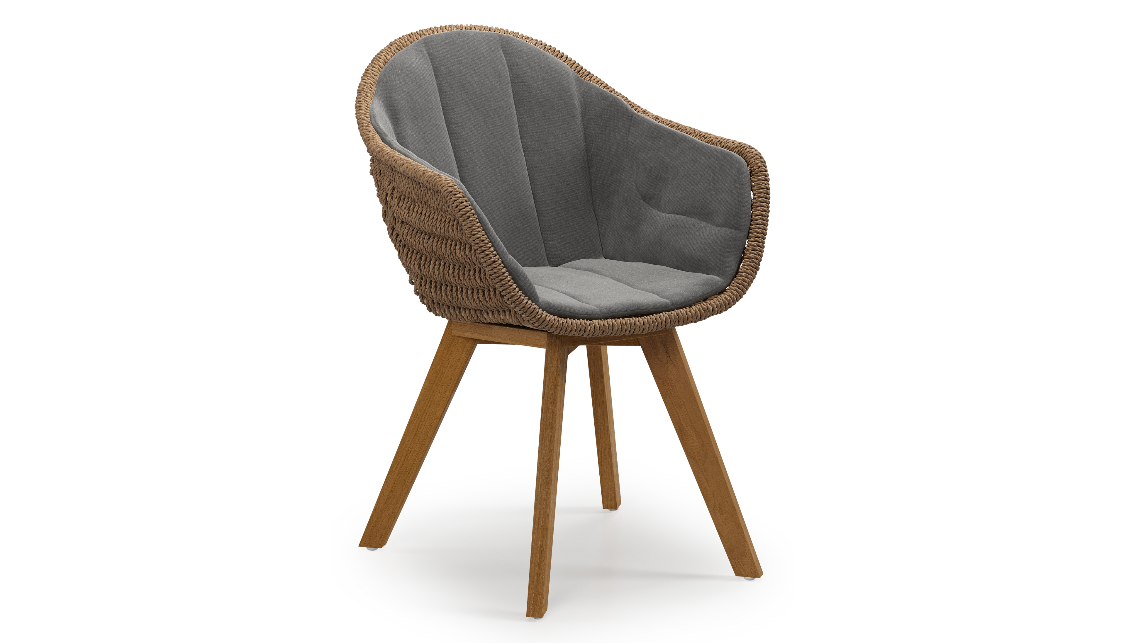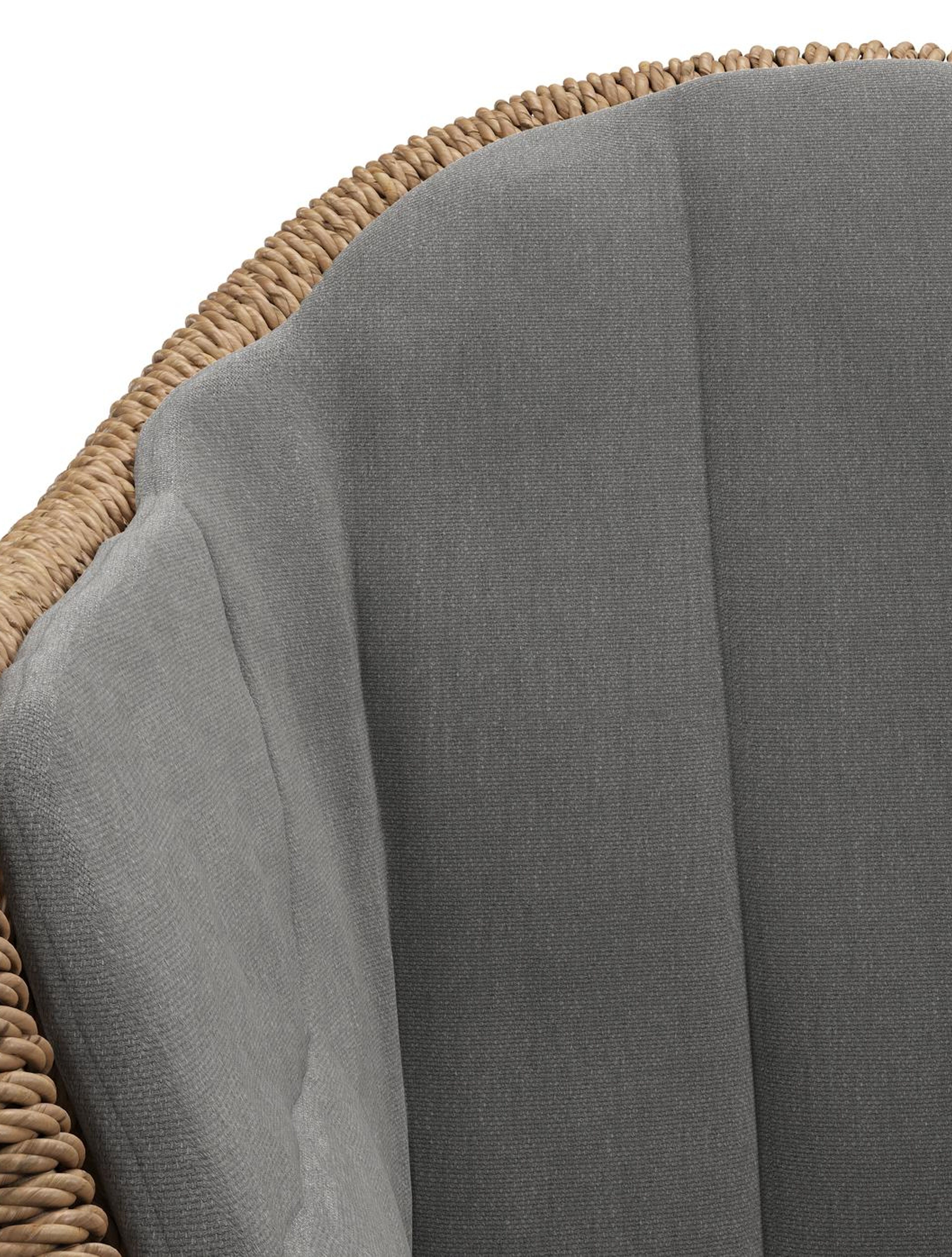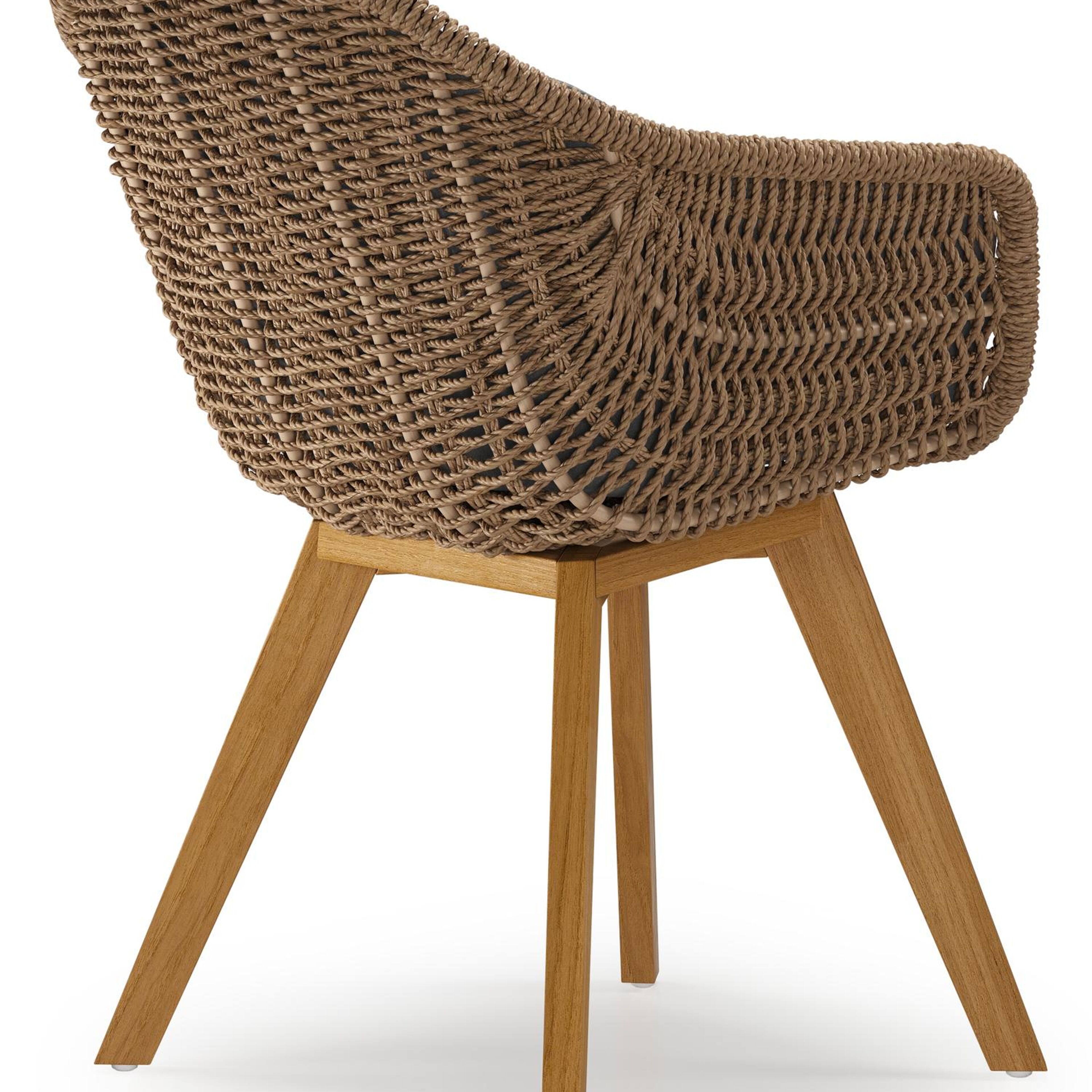 Pagino tuinstoel in teak en bruin ronde wicker met zitkussen in All Weather Sunbrella® Luxe Natte Charcoal Chine | Exterioo tuinmeubelen