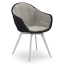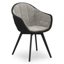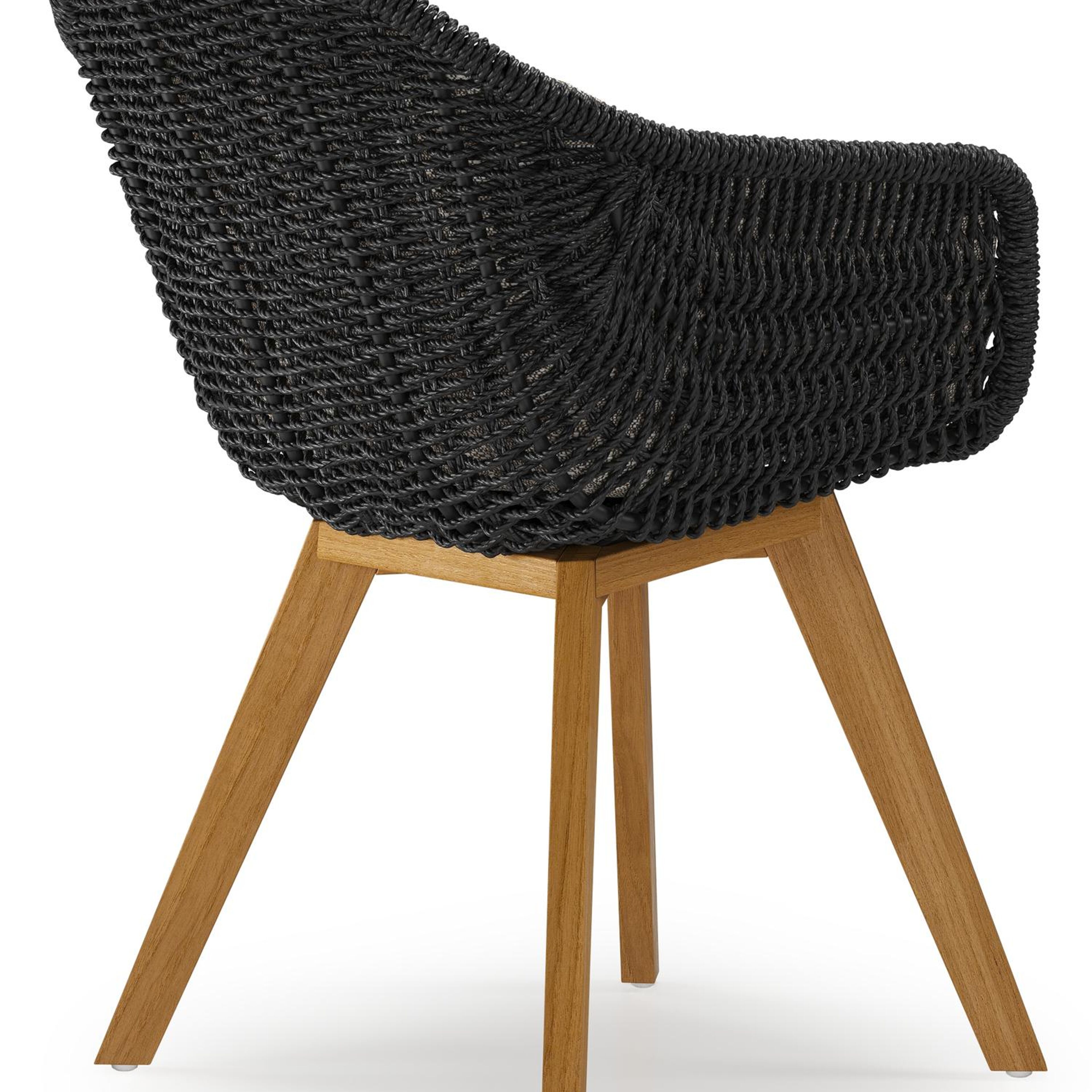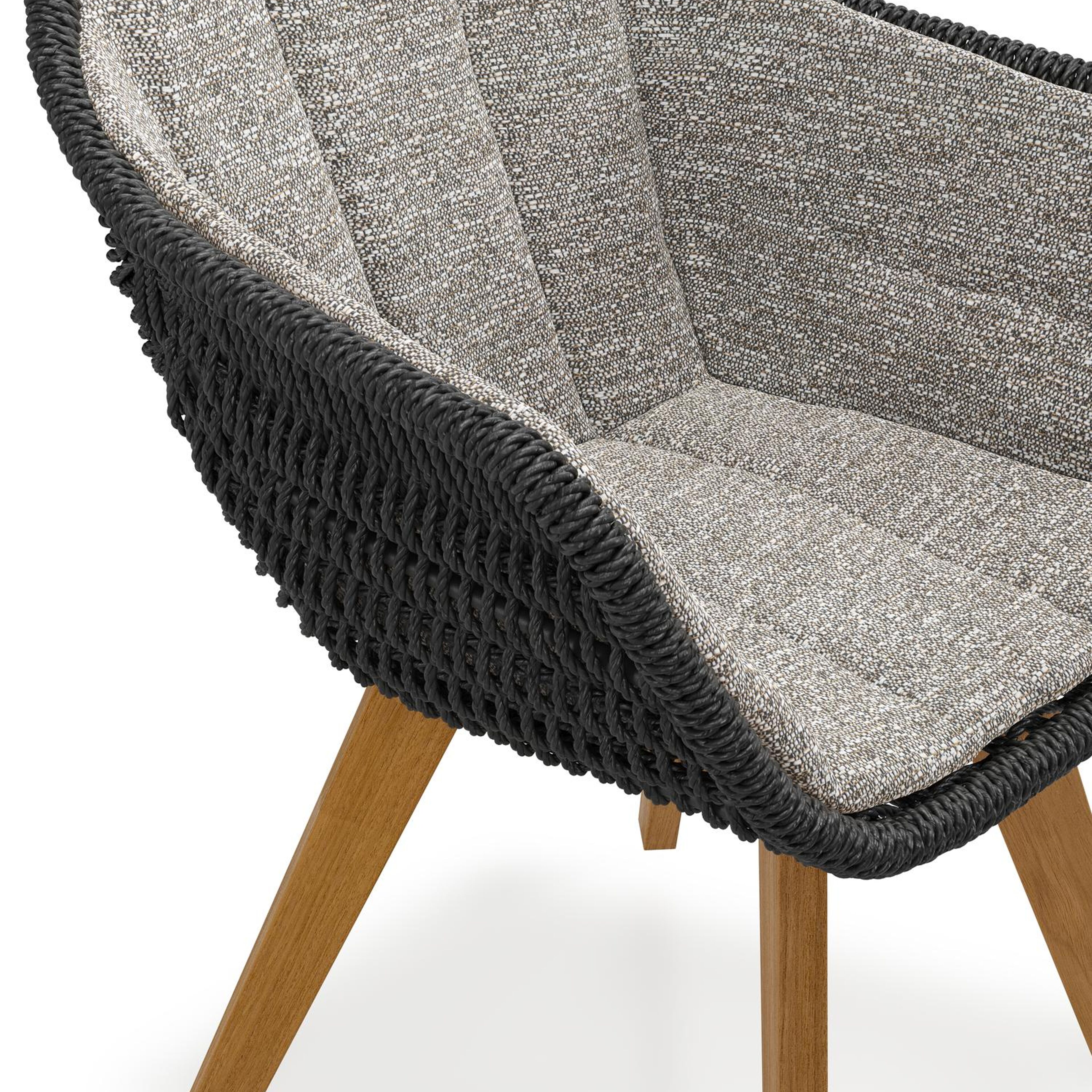 Pagino tuinstoel in teak en zwart ronde wicker met zitkussen in All Weather Sunbrella® Luxe Tundra Pepper | Exterioo tuinmeubelen