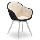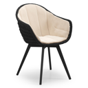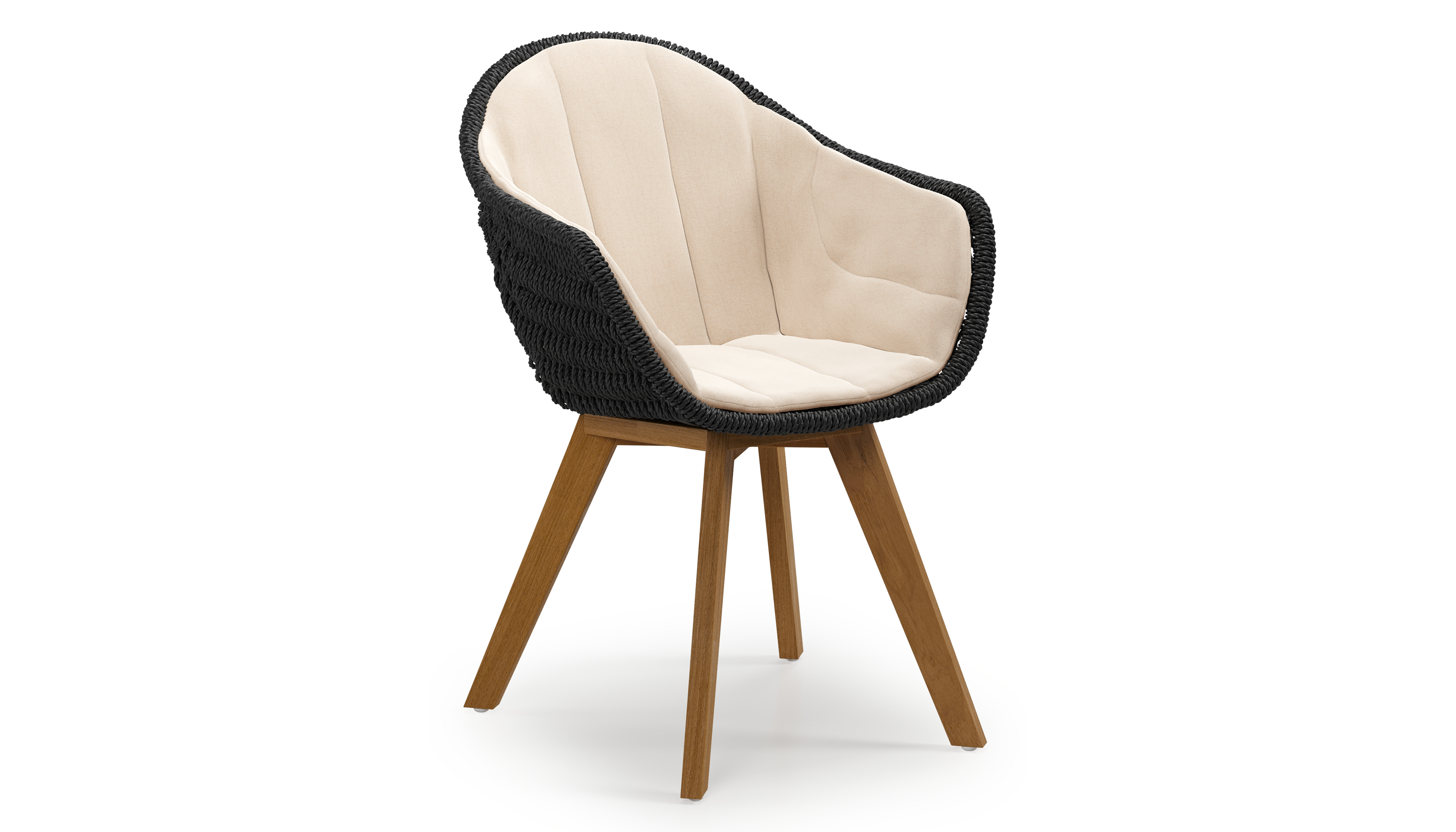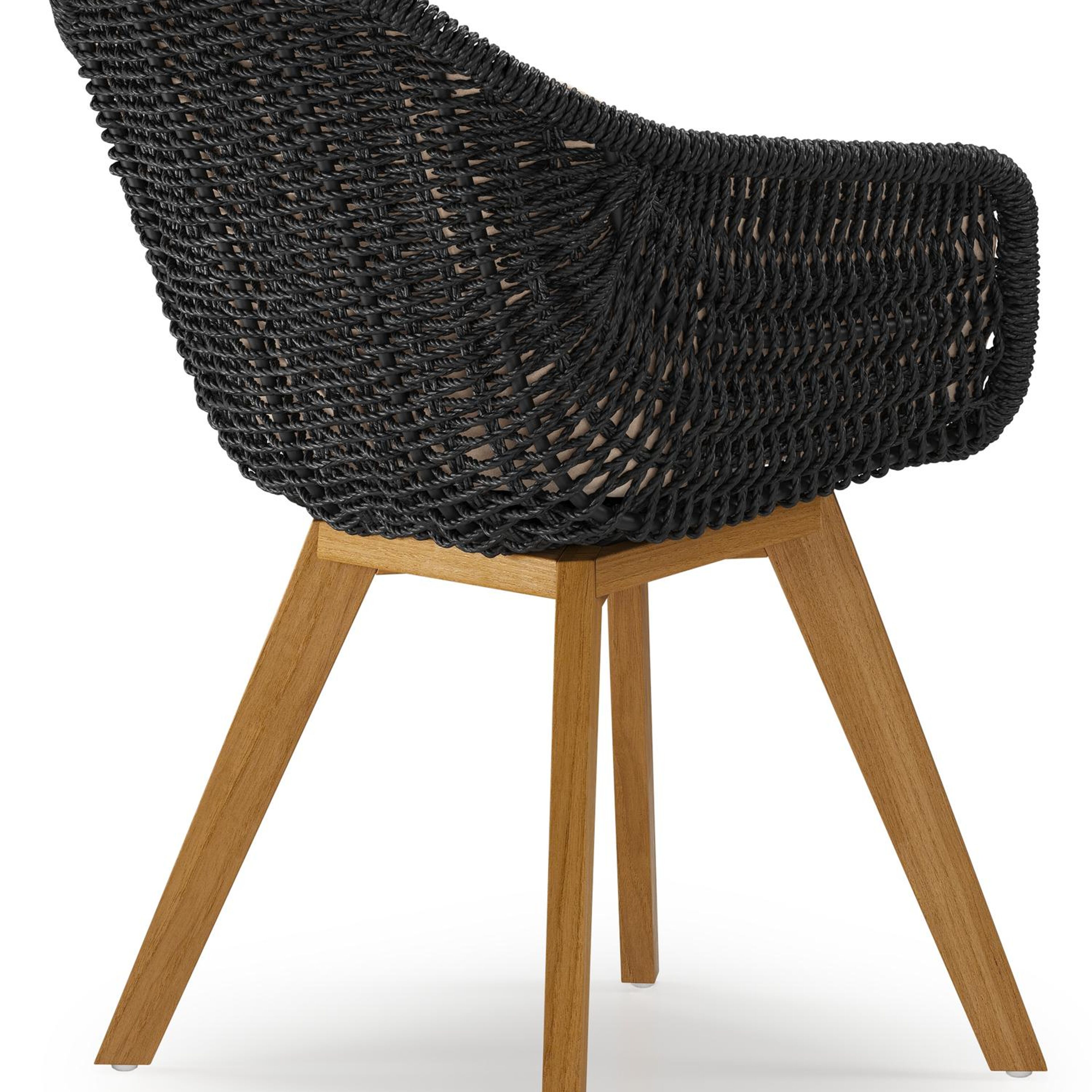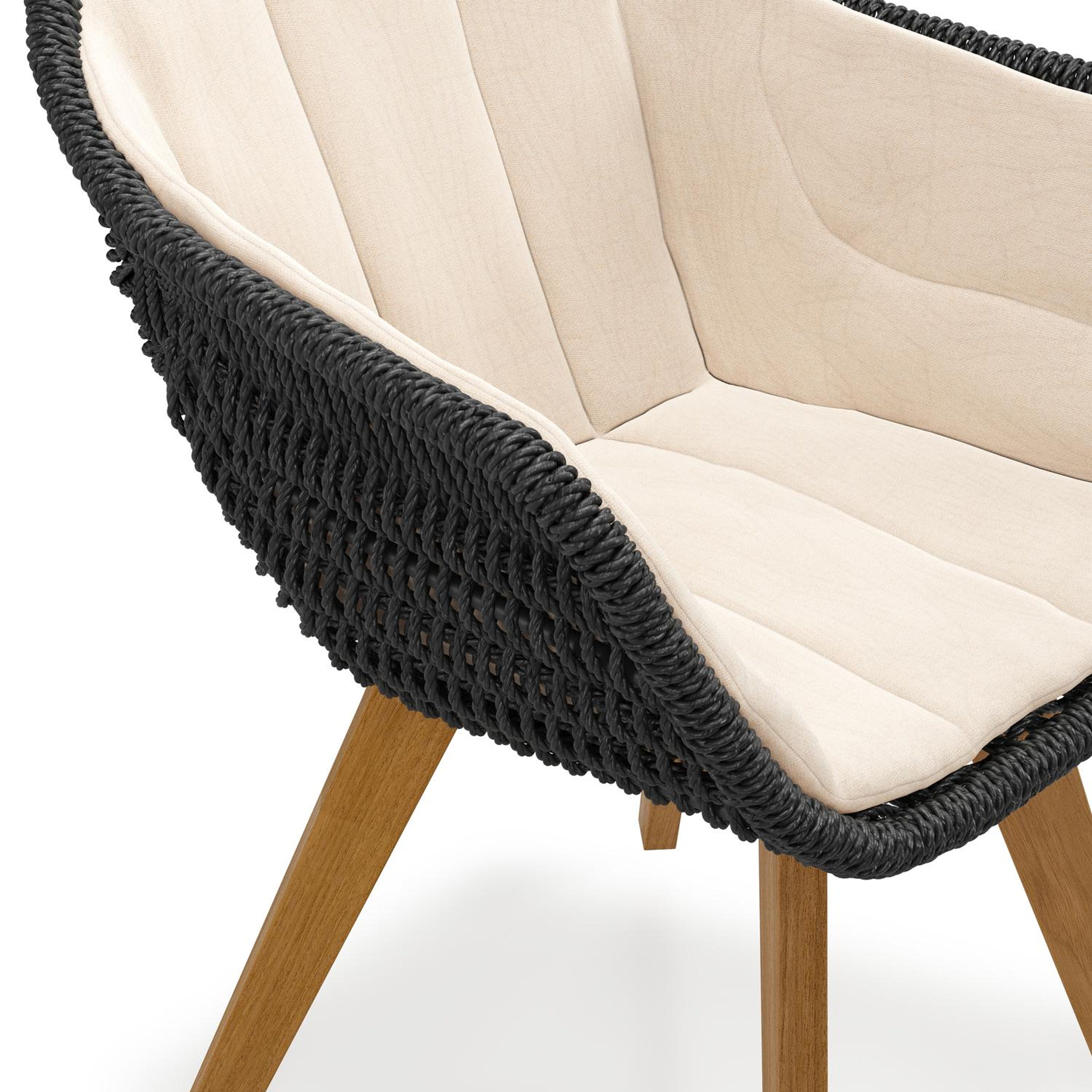 Pagino tuinstoel in teak en zwart ronde wicker met zitkussen in All Weather Sunbrella® Luxe Natte Linen Chalk | Exterioo tuinmeubelen