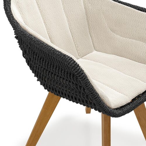 Pagino tuinstoel in teak en zwart ronde wicker met zitkussen in All Weather Sunbrella® Luxe Lopi Marble | Exterioo