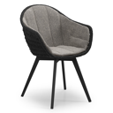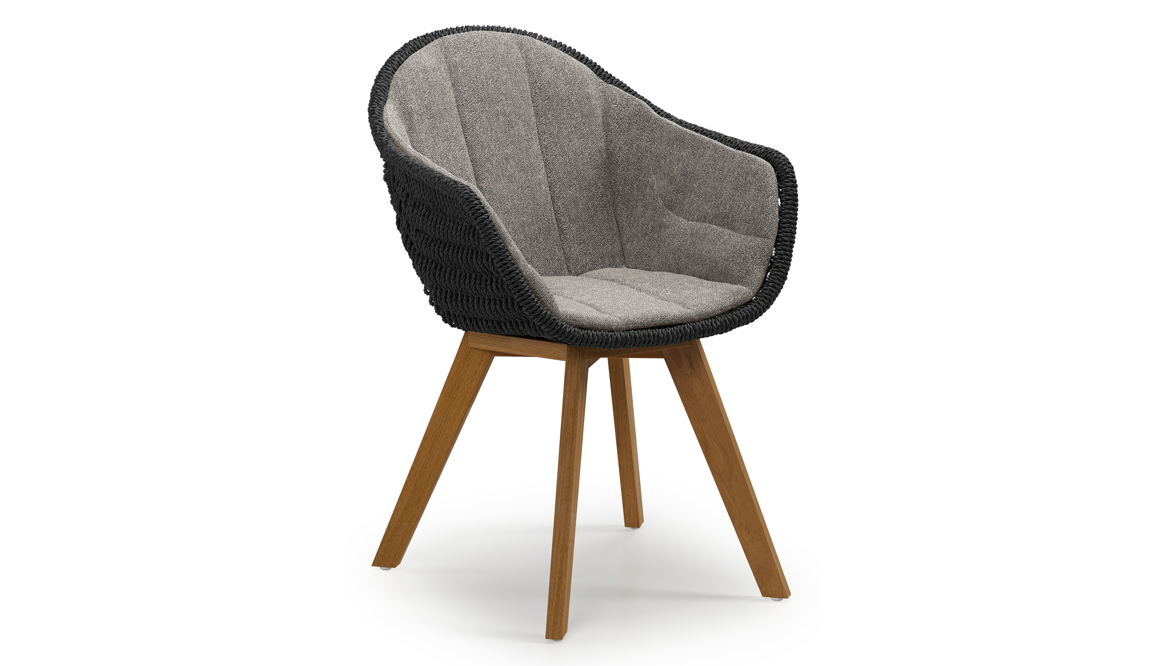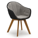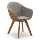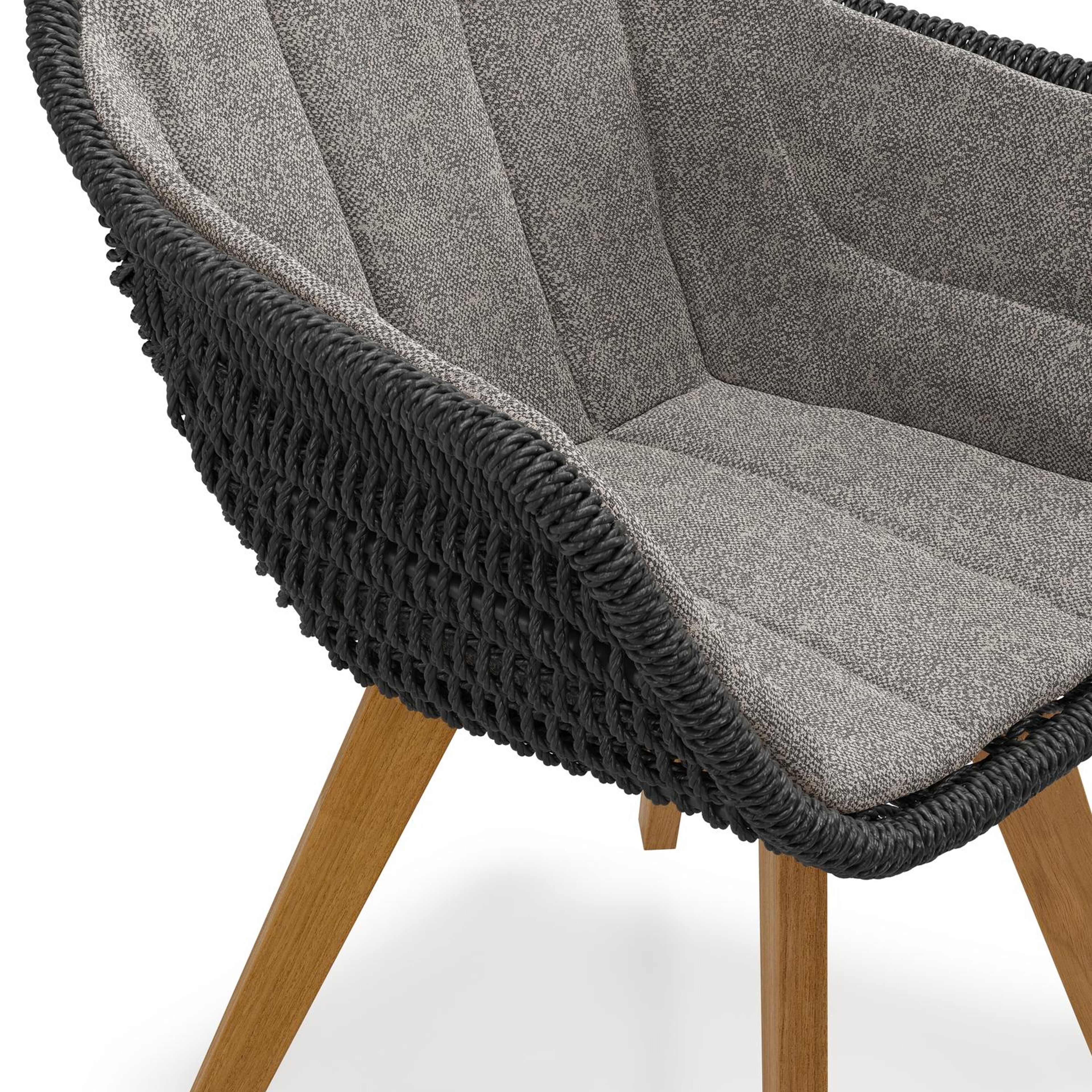Pagino tuinstoel in teak en zwart ronde wicker met zitkussen in All Weather Sunbrella® Luxe Chartres Drizzle | Exterioo tuinmeubelen