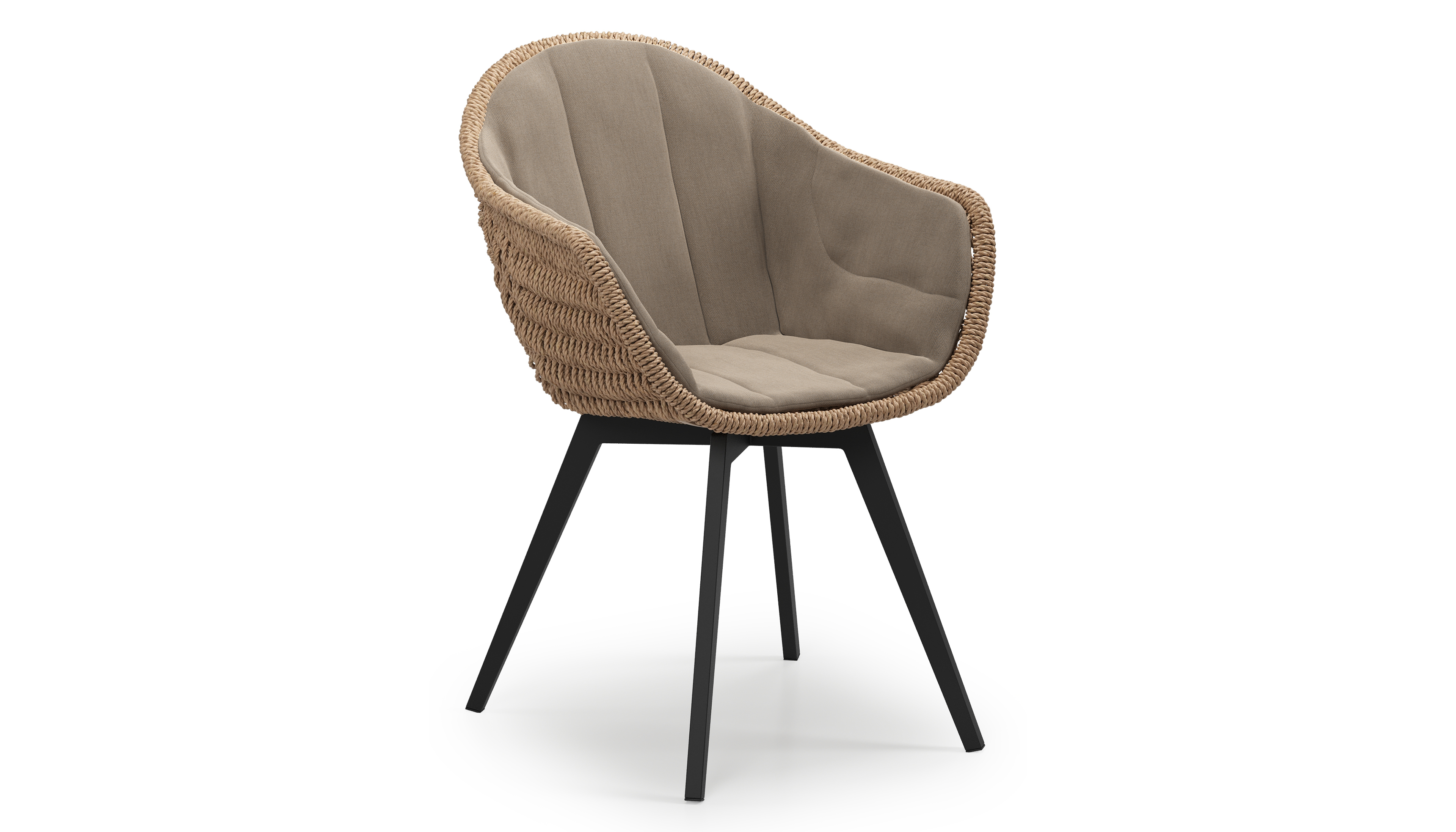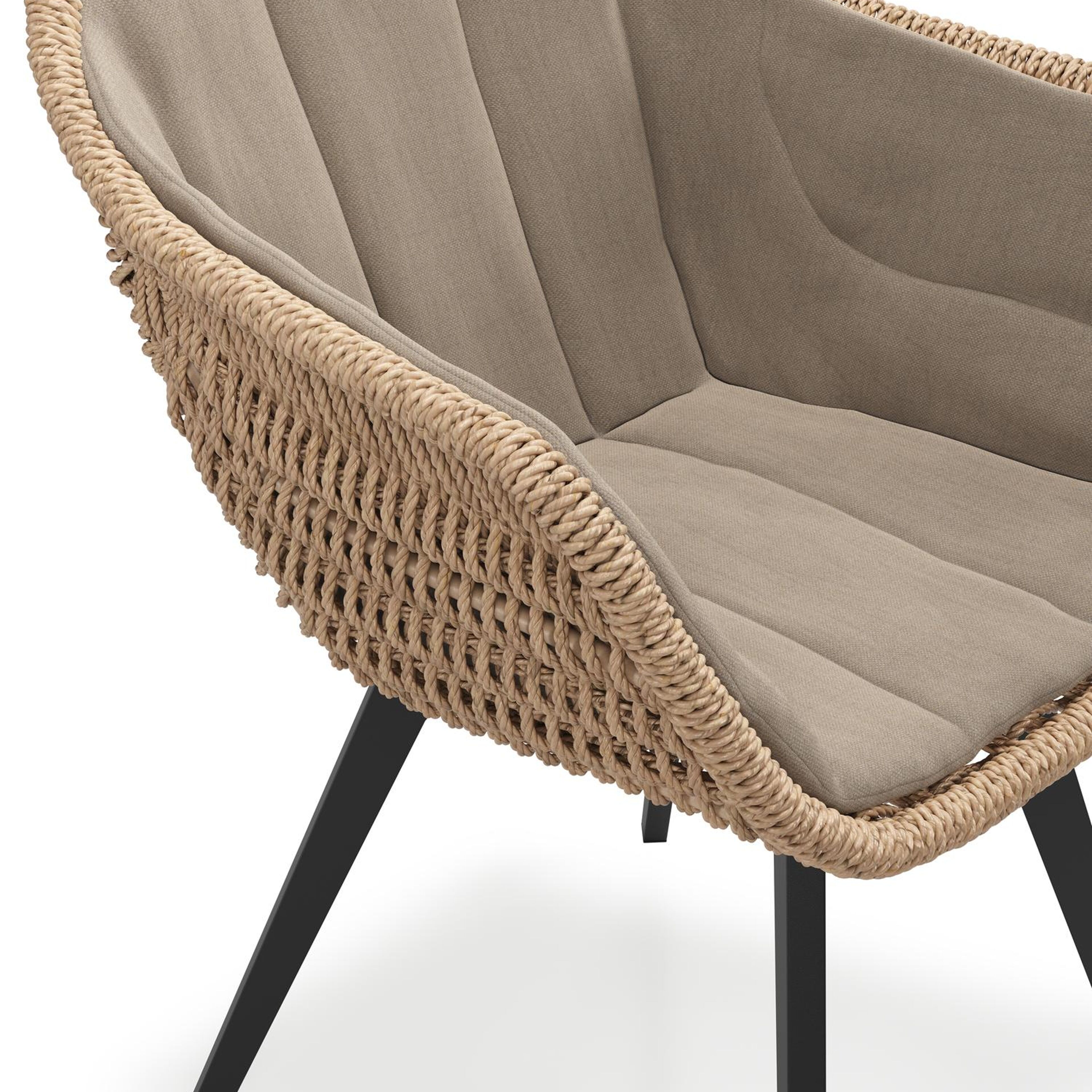Pagino tuinstoel in zwart aluminium en naturel ronde wicker met zitkussen in All Weather Sunbrella® Luxe Natte Heather Grey | Exterioo tuinmeubelen