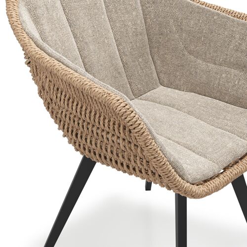 Pagino tuinstoel in zwart aluminium en naturel ronde wicker met zitkussen in All Weather Sunbrella® Luxe Chartres Pewter | Exterioo
