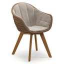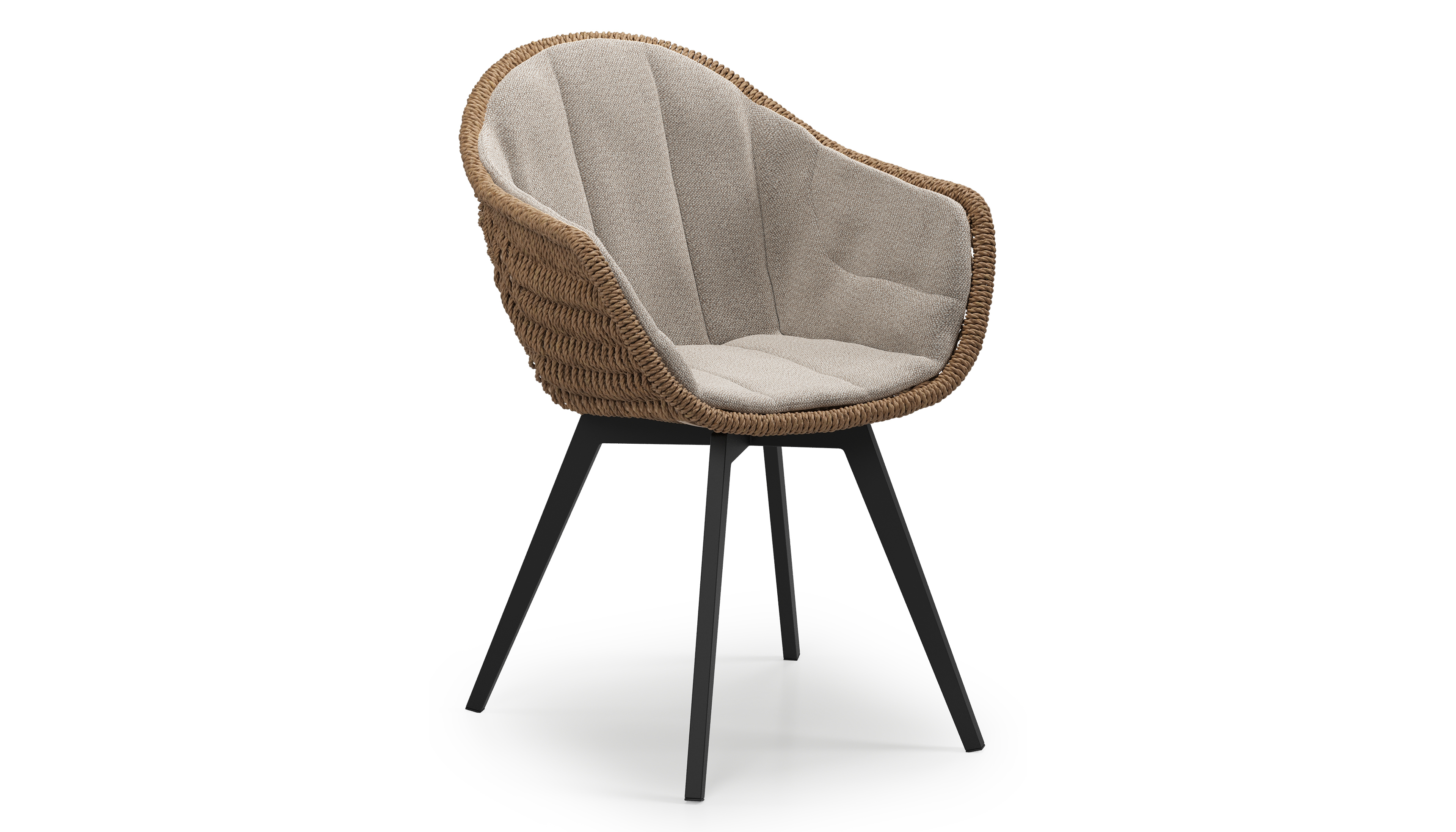 Pagino tuinstoel in zwart aluminium en bruin ronde wicker met zitkussen in All Weather Sunbrella® Luxe Savane Coconut | Exterioo tuinmeubelen