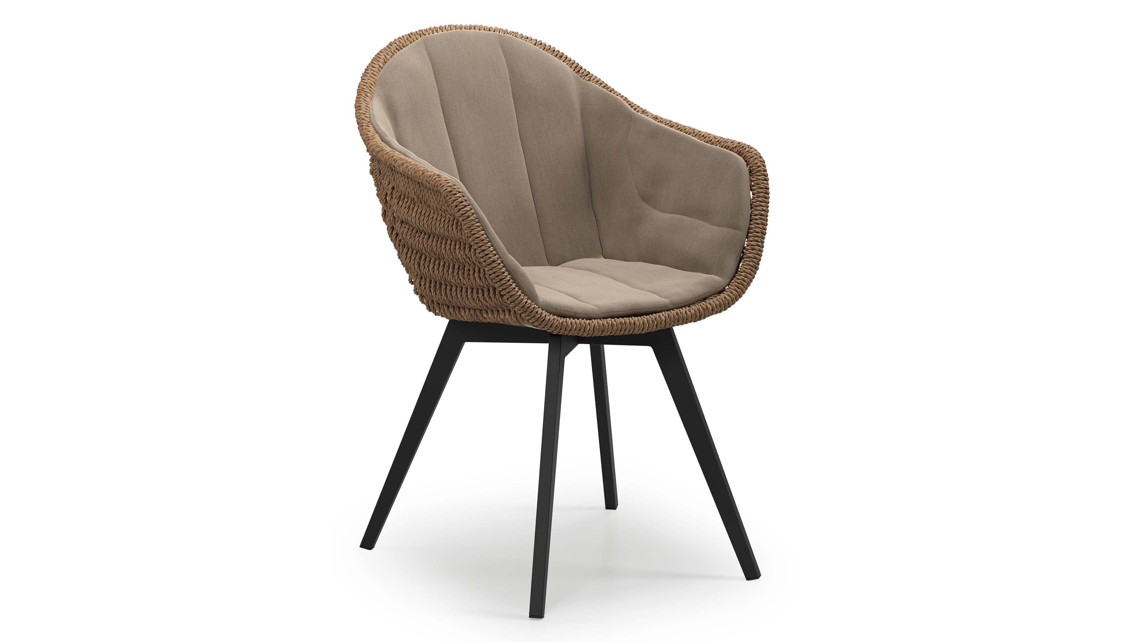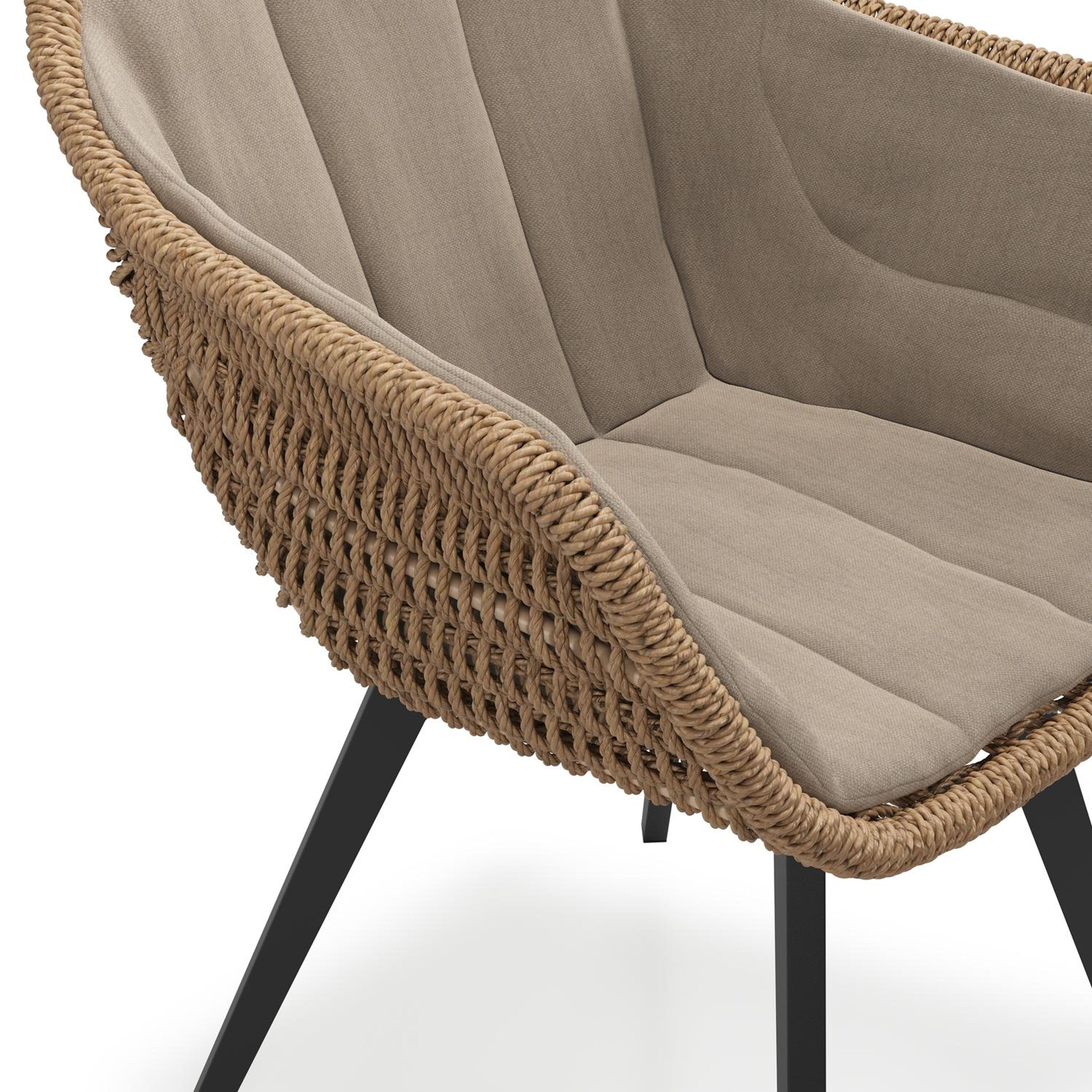 Pagino tuinstoel in zwart aluminium en bruin ronde wicker met zitkussen in All Weather Sunbrella® Luxe Natte Heather Grey | Exterioo tuinmeubelen