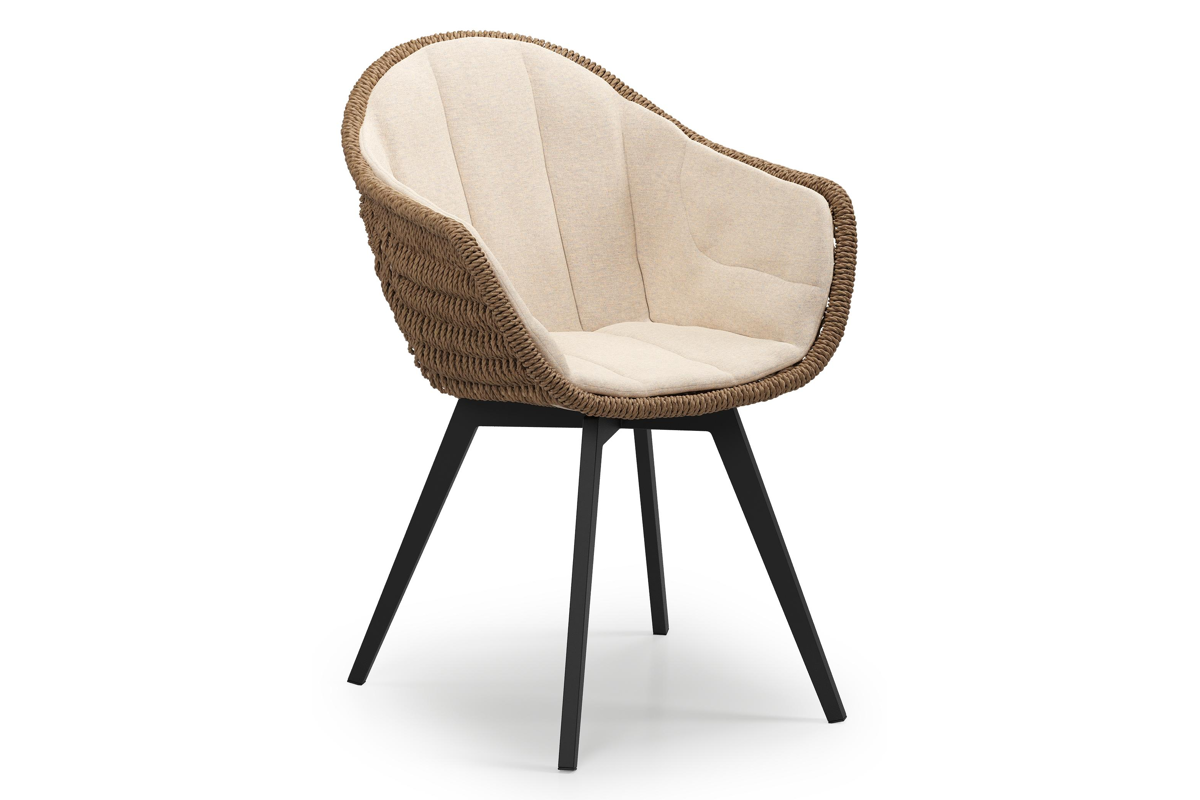 Pagino tuinstoel in zwart aluminium en bruin ronde wicker met zitkussen in All Weather Sunbrella® Luxe Heritage Papyrus | Exterioo