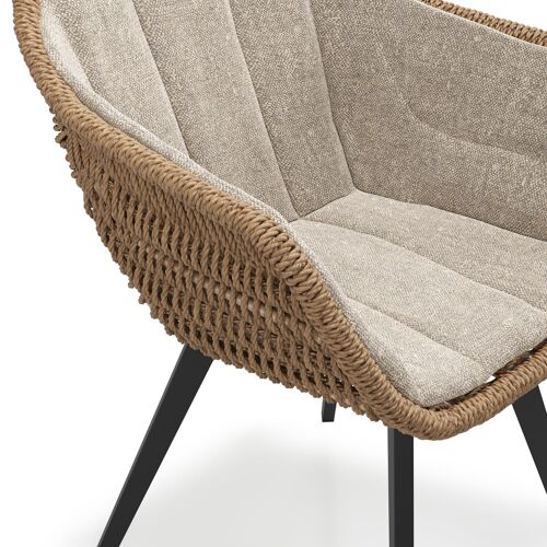 Pagino tuinstoel in zwart aluminium en bruin ronde wicker met zitkussen in All Weather Sunbrella® Luxe Chartres Pewter | Exterioo