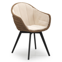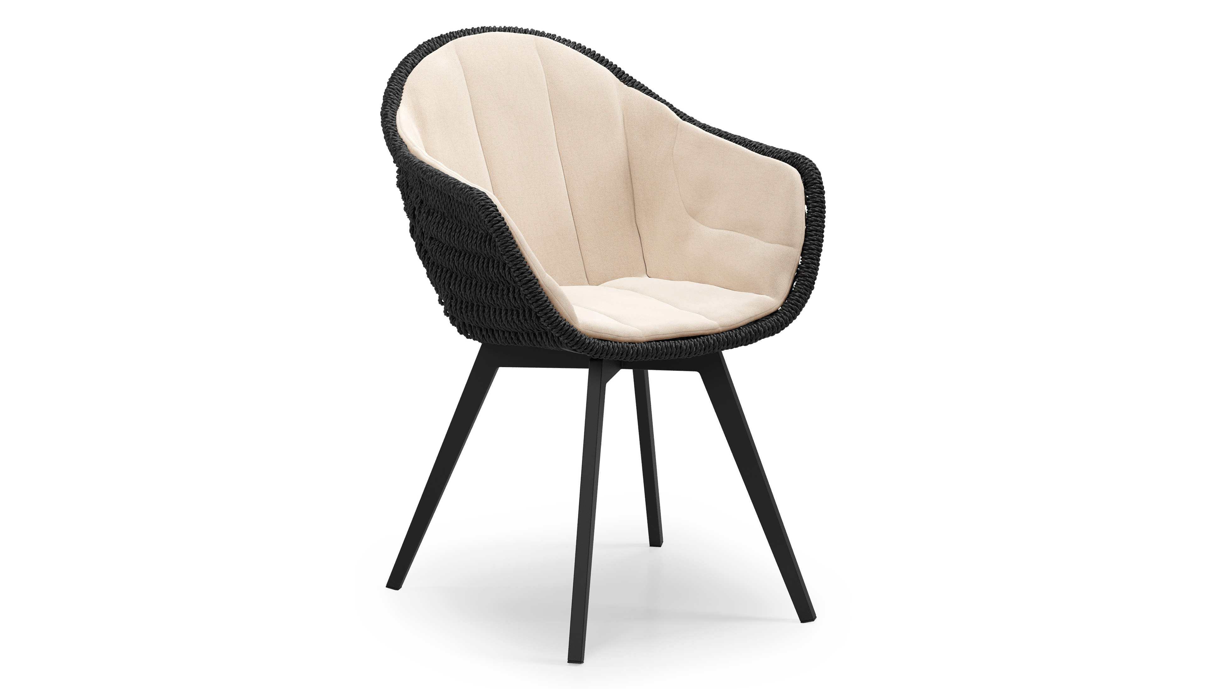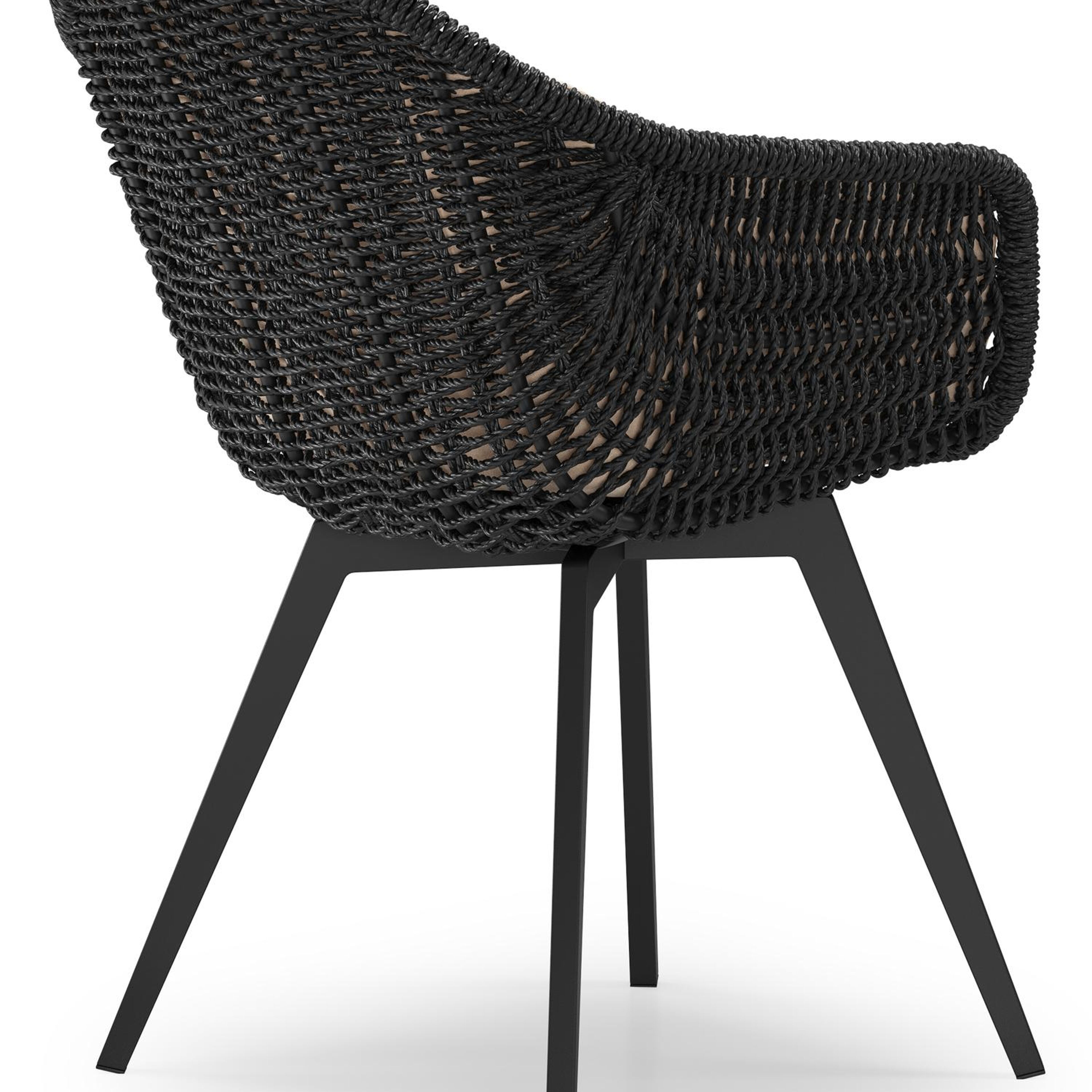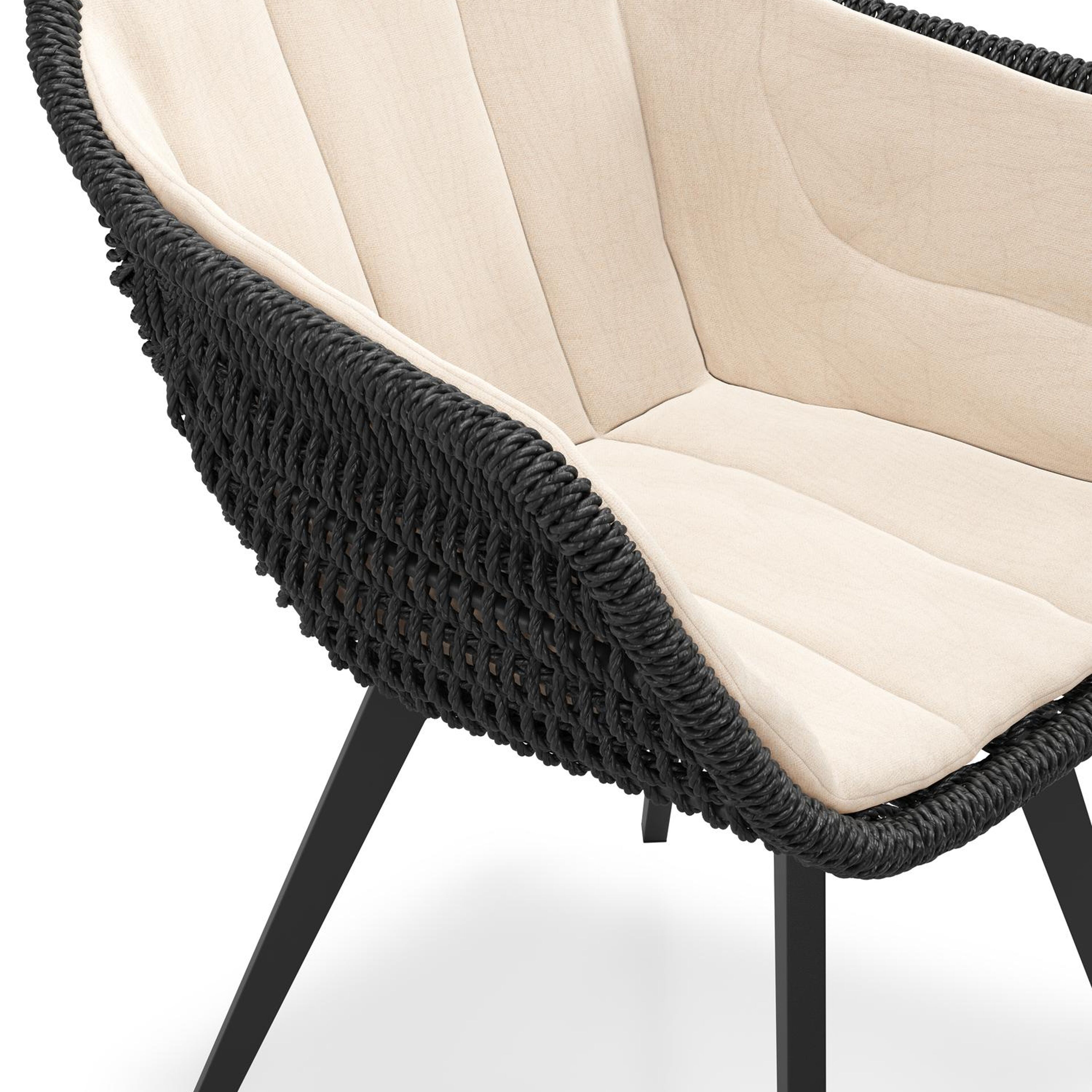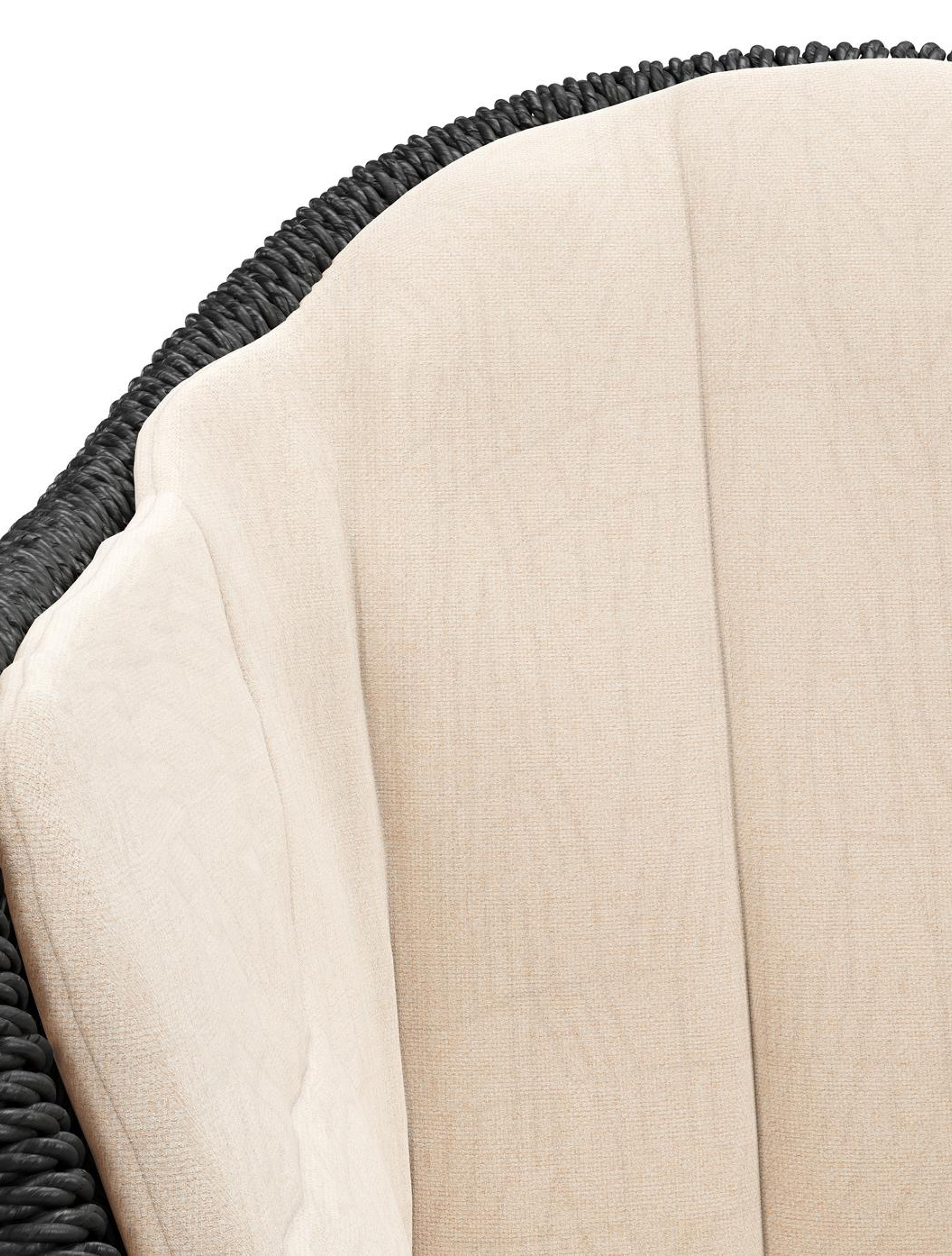 Pagino tuinstoel in zwart aluminium en zwart ronde wicker met zitkussen in All Weather Sunbrella® Luxe Natte Linen Chalk | Exterioo tuinmeubelen