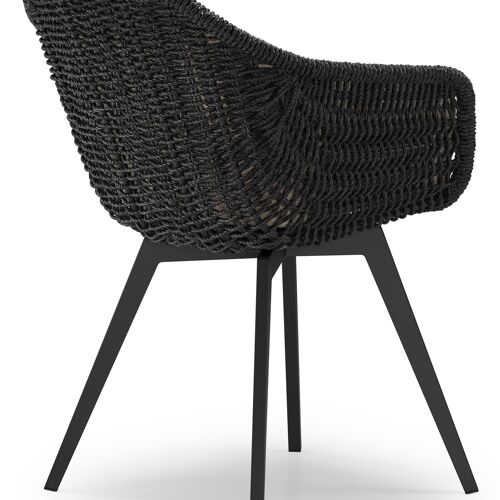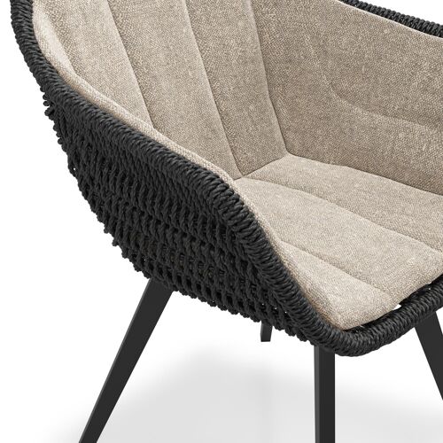 Pagino tuinstoel in zwart aluminium en zwart ronde wicker met zitkussen in All Weather Sunbrella® Luxe Chartres Pewter | Exterioo
