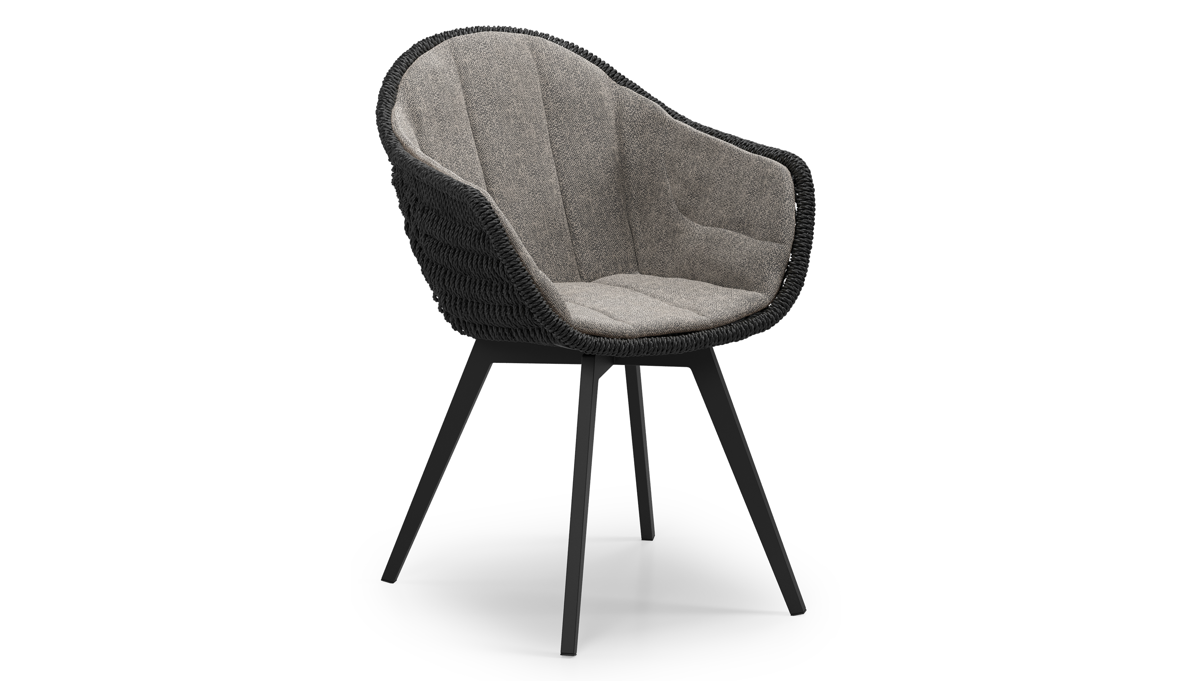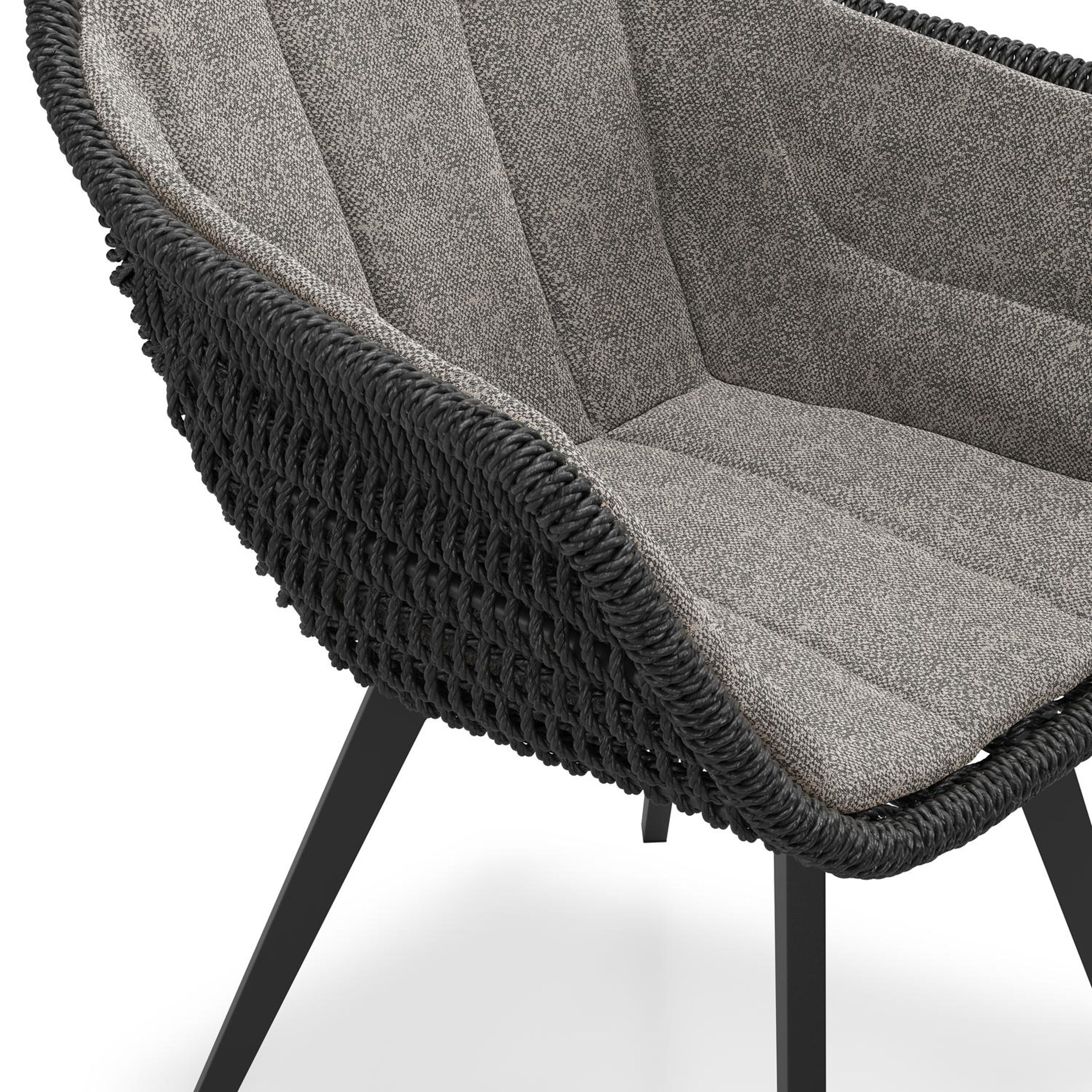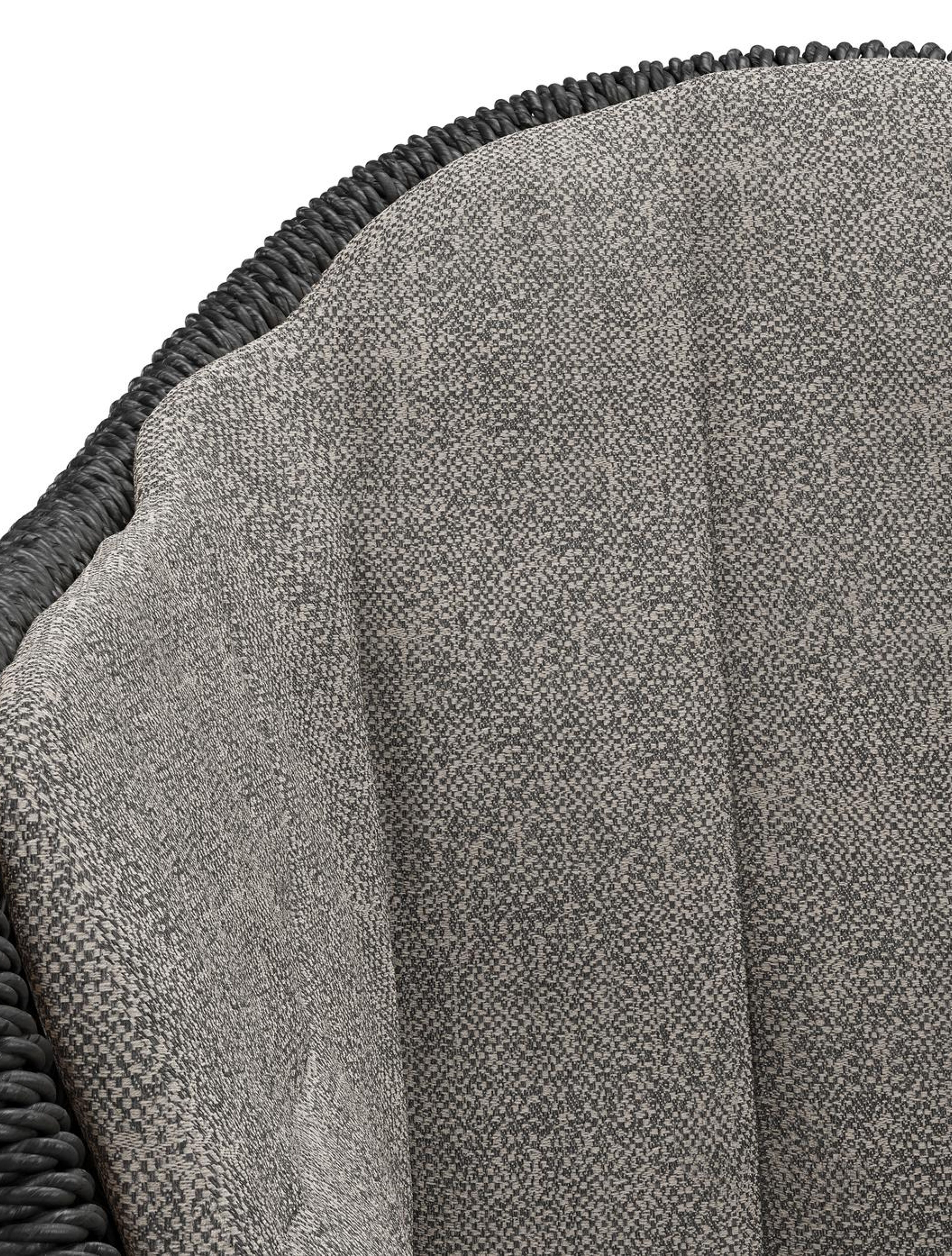 Pagino tuinstoel in zwart aluminium en zwart ronde wicker met zitkussen in All Weather Sunbrella® Luxe Chartres Drizzle | Exterioo tuinmeubelen