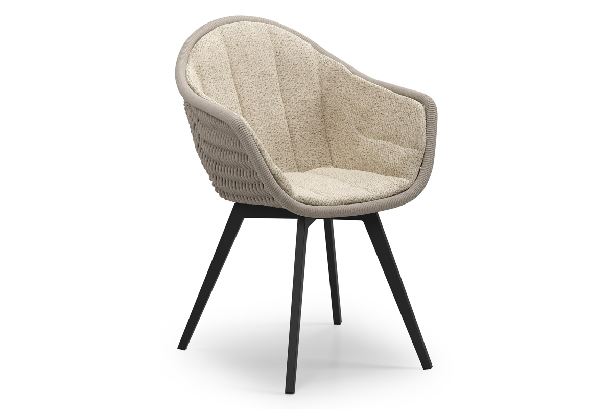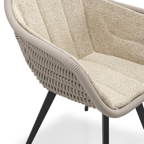 Pagino tuinstoel in zwart aluminium en beige verticaal geweven ronde rope met zitkussen in All Weather Cosytica Bora Forest | Exterioo