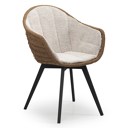 Pagino tuinstoel in zwart aluminium en beige verticaal geweven ronde rope met zitkussen in All Weather Sunbrella® Luxe Tundra Sand | Exterioo tuinmeubelen