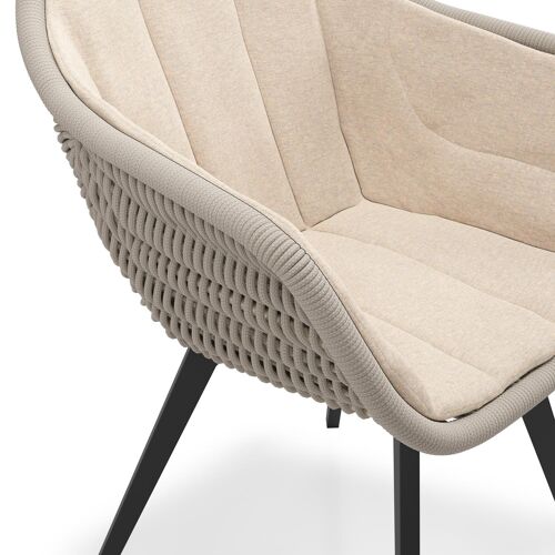 Pagino tuinstoel in zwart aluminium en beige verticaal geweven ronde rope met zitkussen in All Weather Sunbrella® Luxe Heritage Papyrus | Exterioo