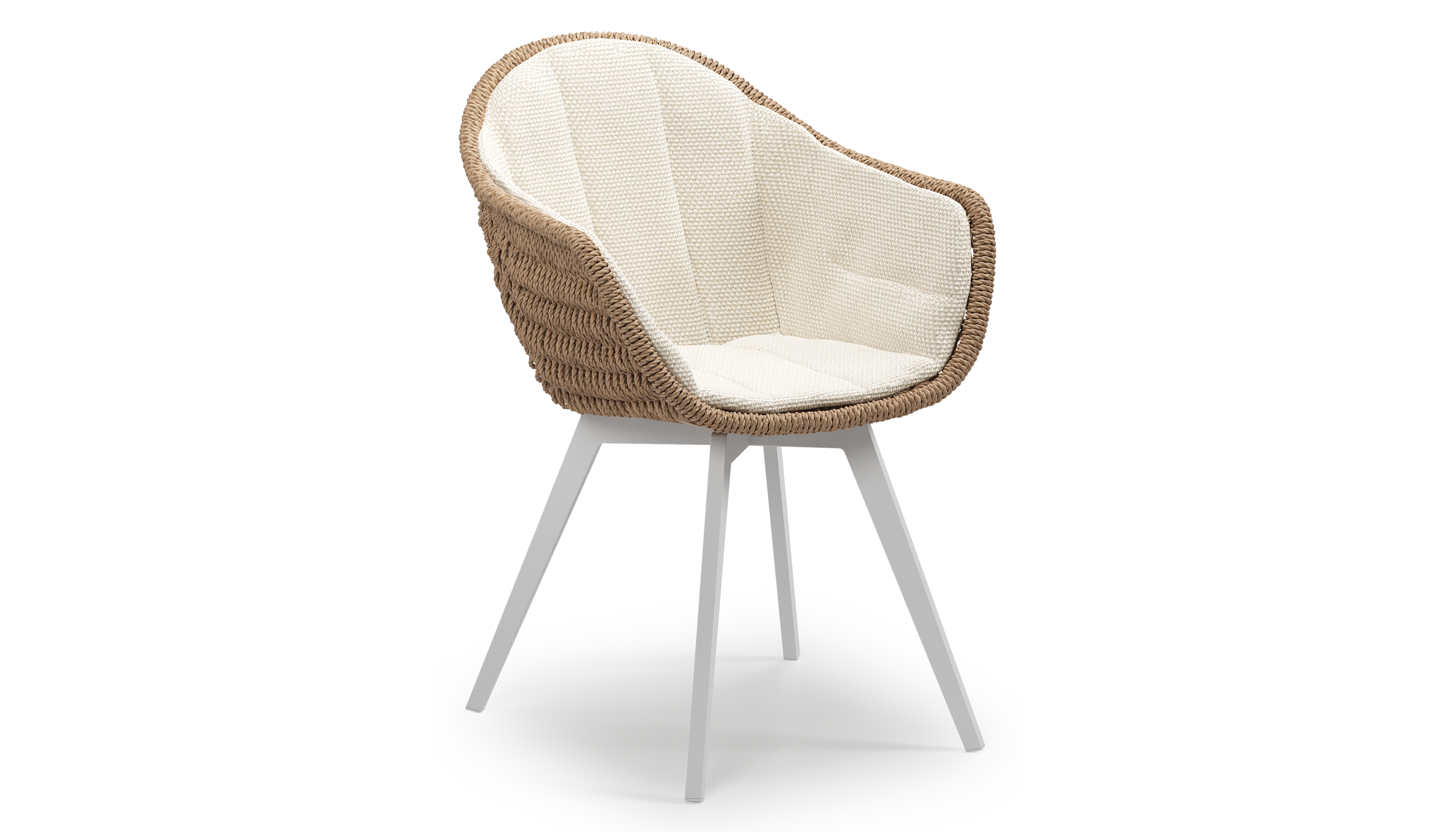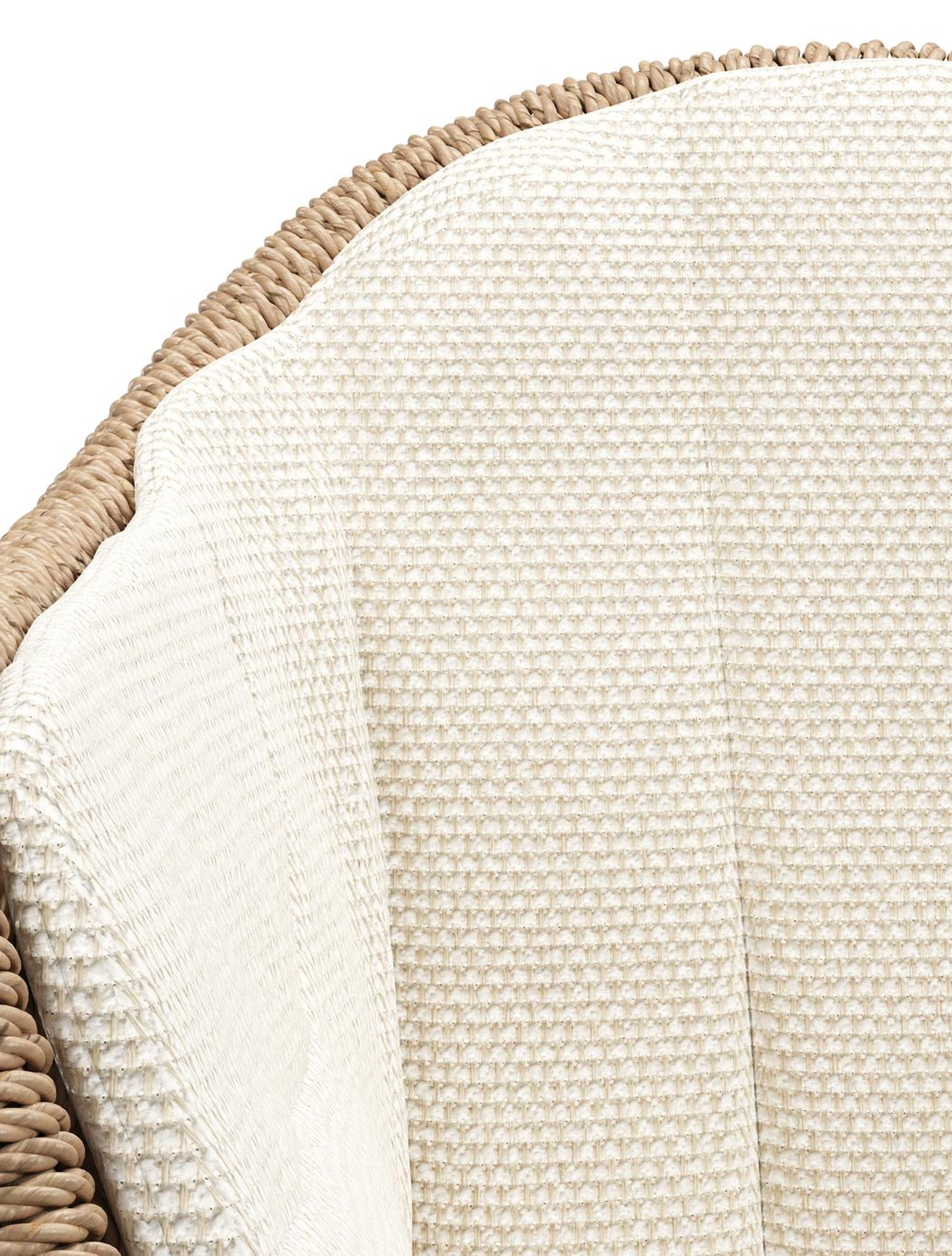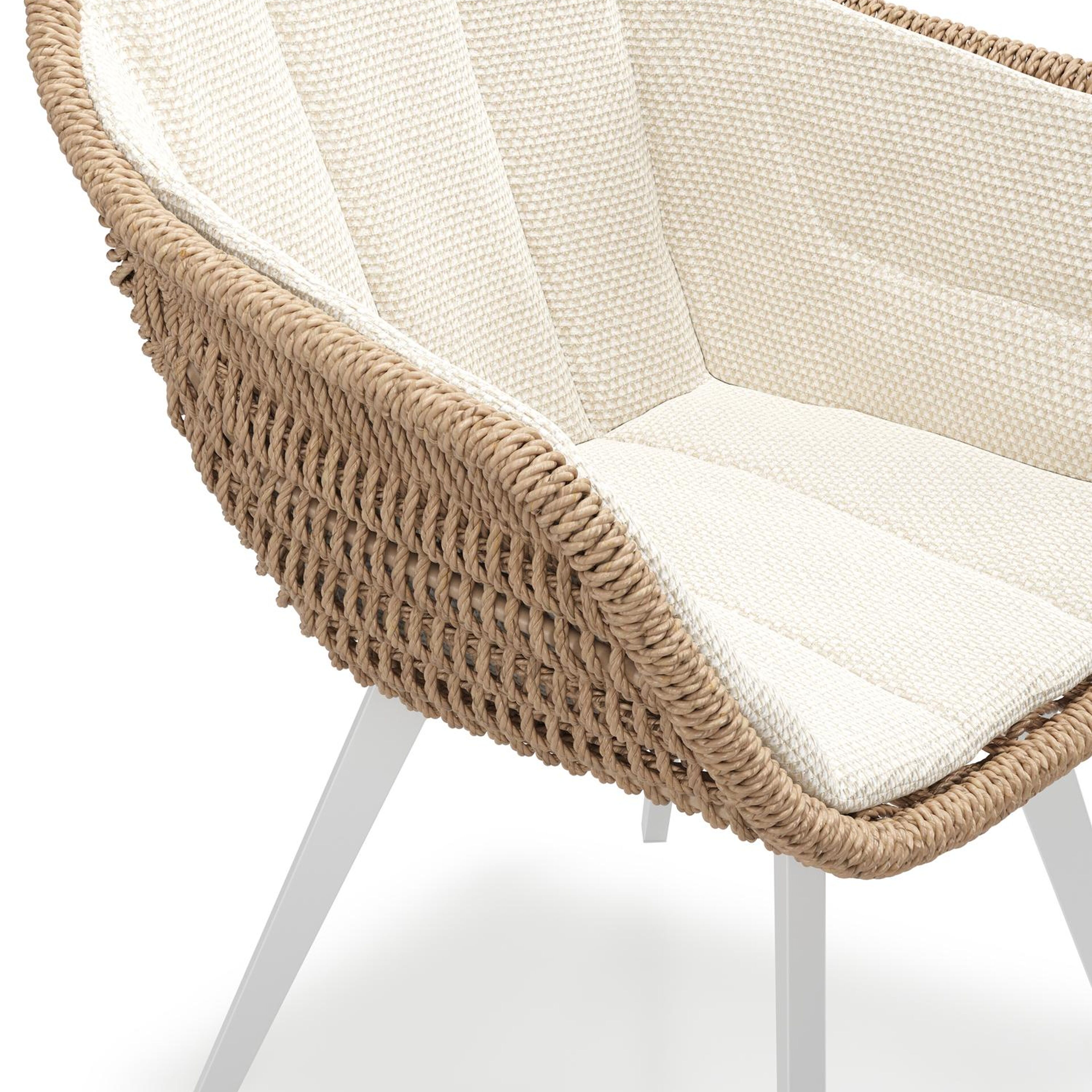 Pagino tuinstoel in wit aluminium en naturel ronde wicker met zitkussen in All Weather Cosytica Althea Off White | Exterioo tuinmeubelen