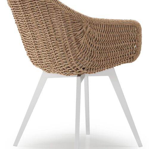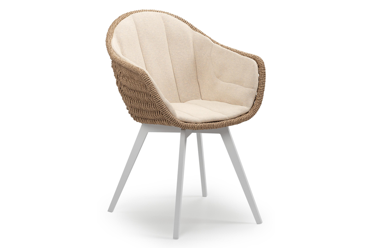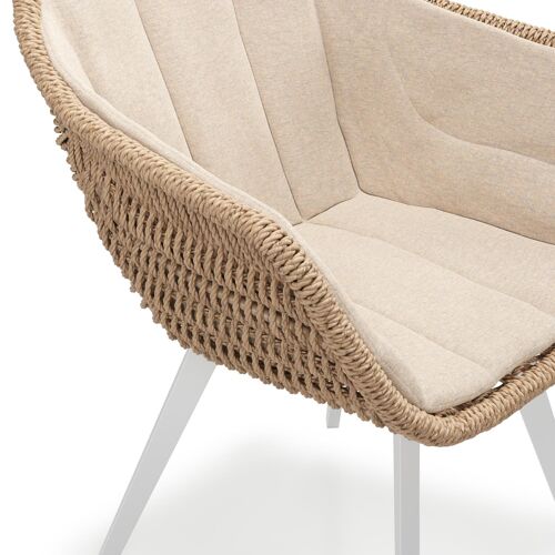 Pagino tuinstoel in wit aluminium en naturel ronde wicker met zitkussen in All Weather Sunbrella® Luxe Heritage Papyrus | Exterioo