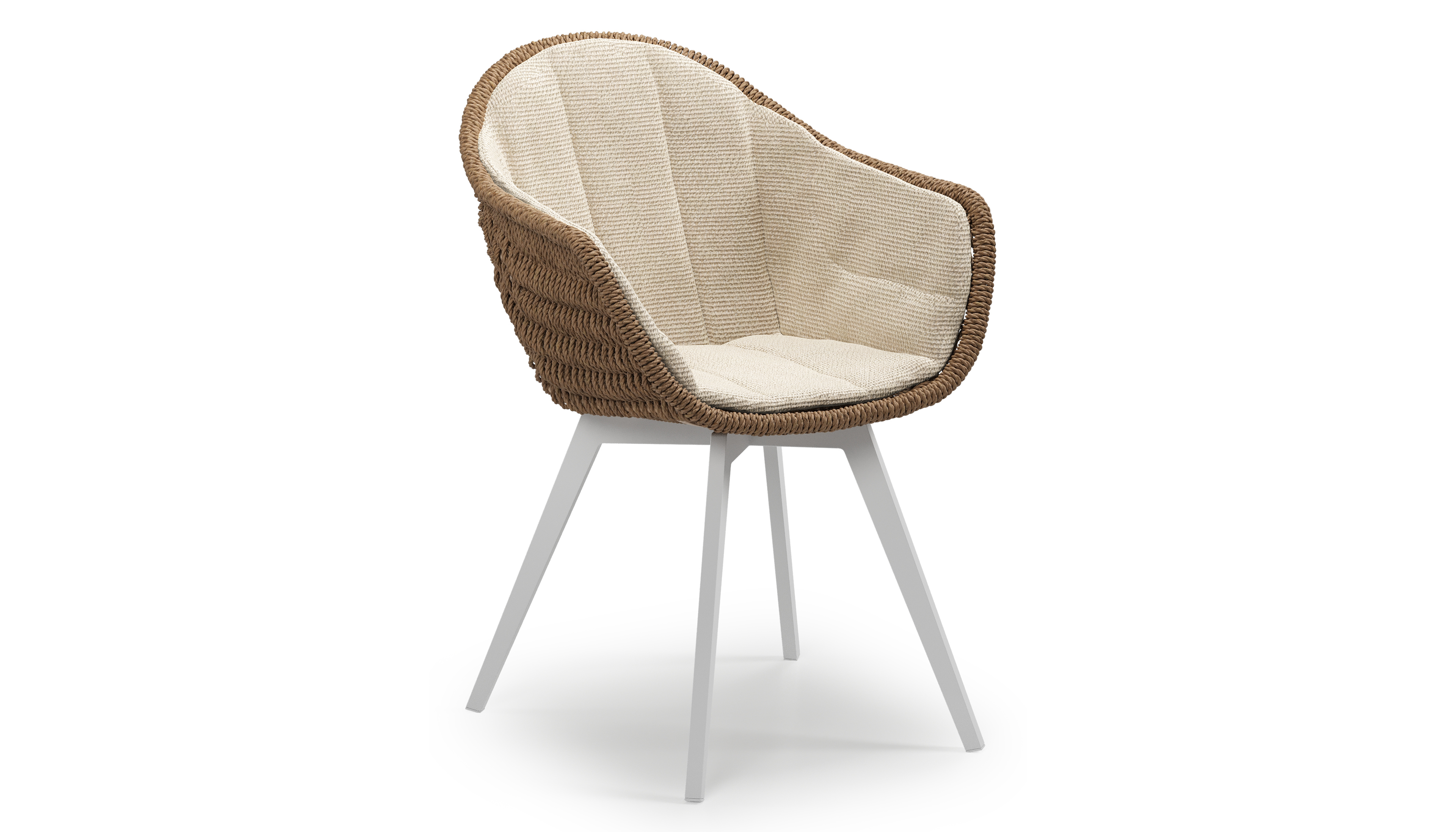 Pagino tuinstoel in wit aluminium en bruin ronde wicker met zitkussen in All Weather Cosytica Althea Chalk | Exterioo tuinmeubelen