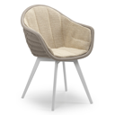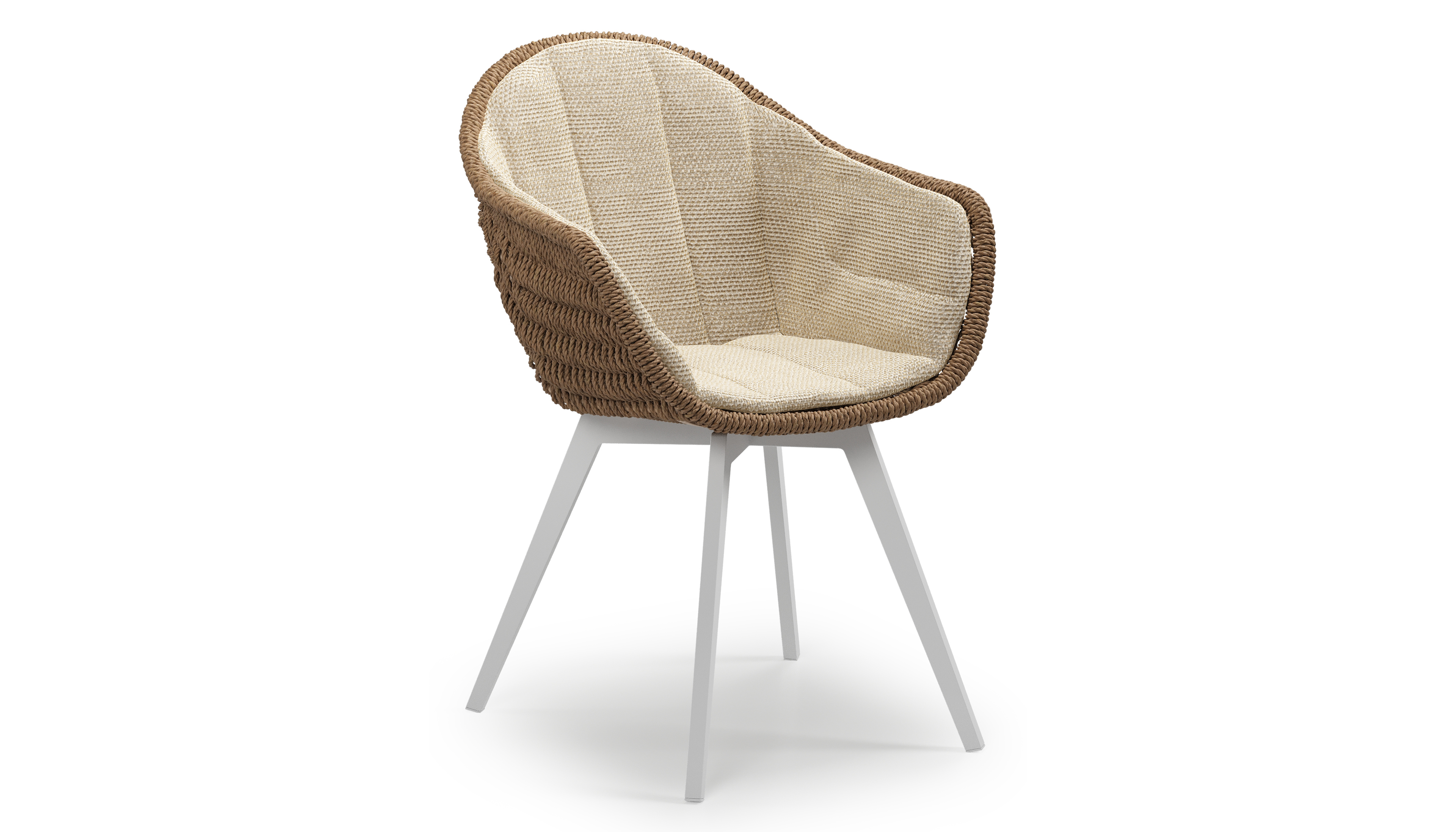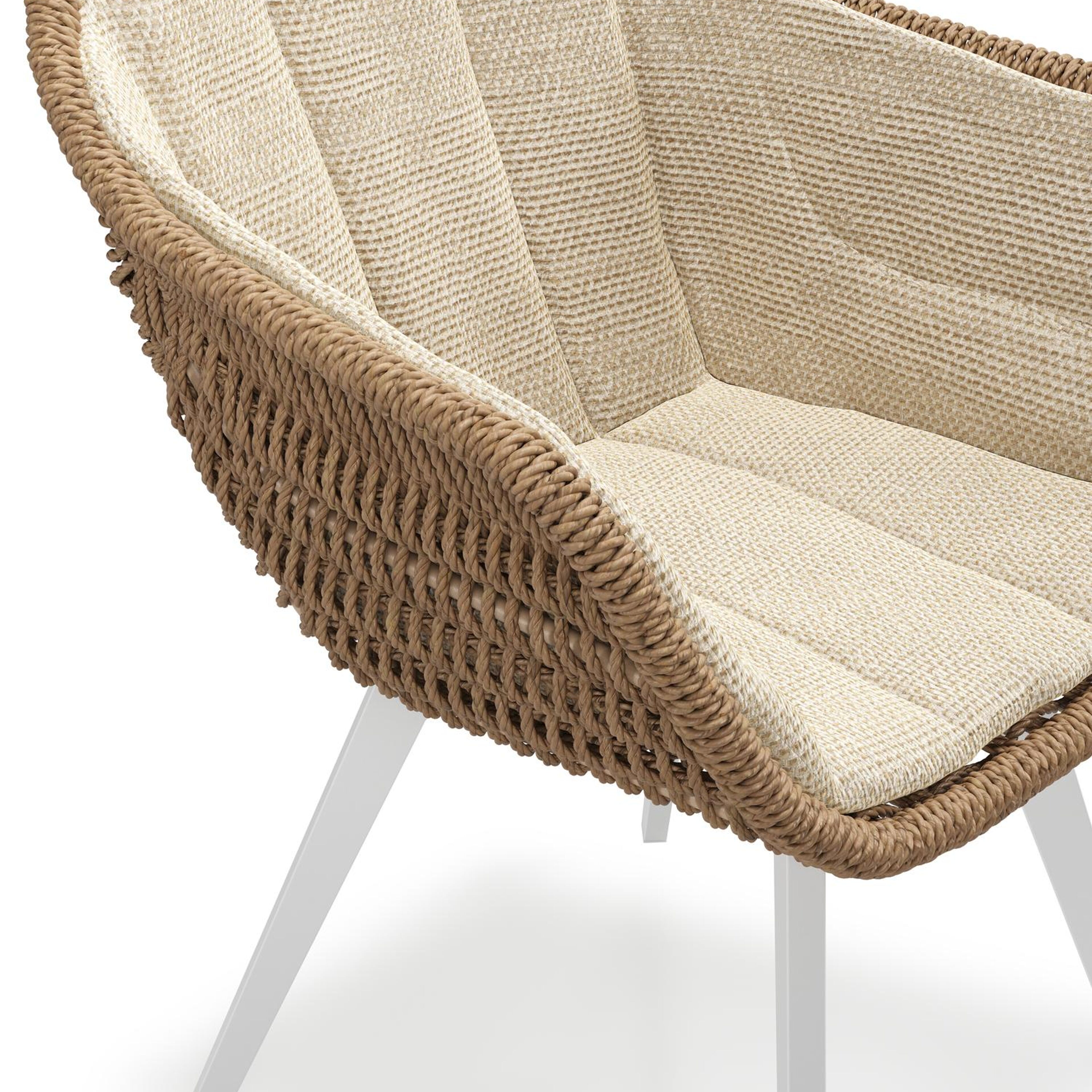 Pagino tuinstoel in wit aluminium en bruin ronde wicker met zitkussen in All Weather Cosytica Althea Camel | Exterioo tuinmeubelen